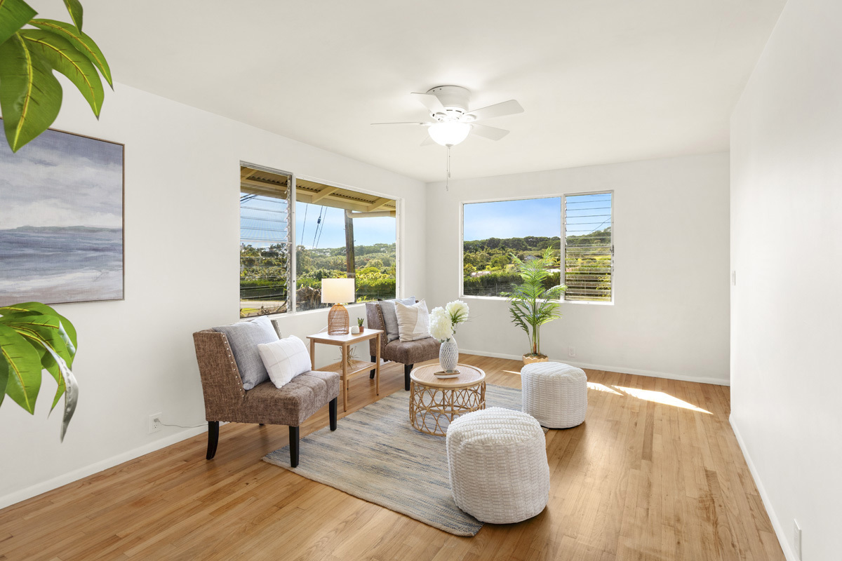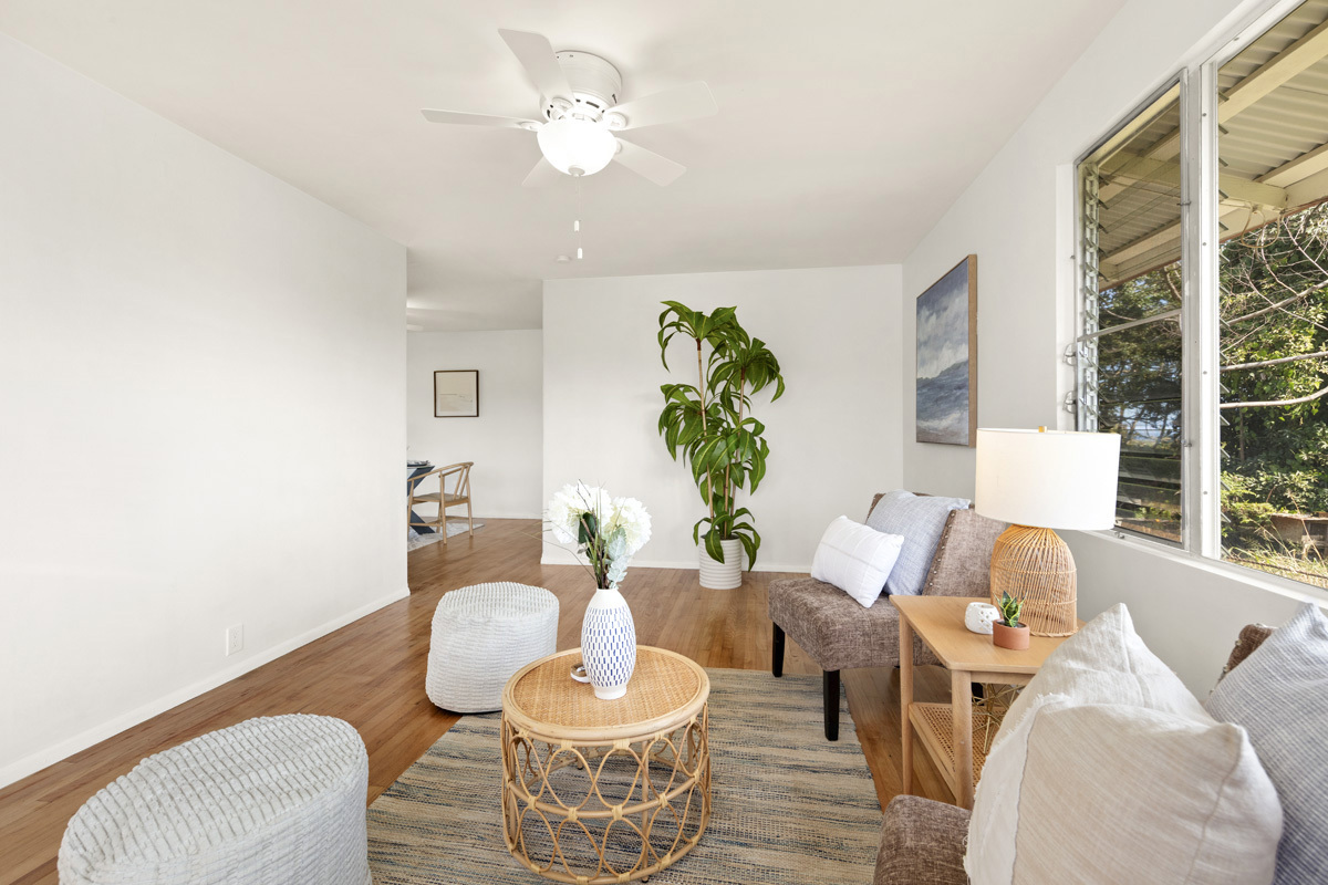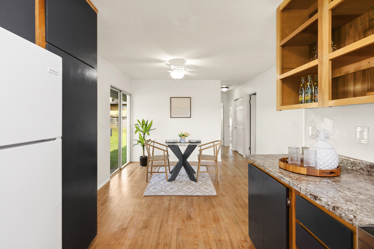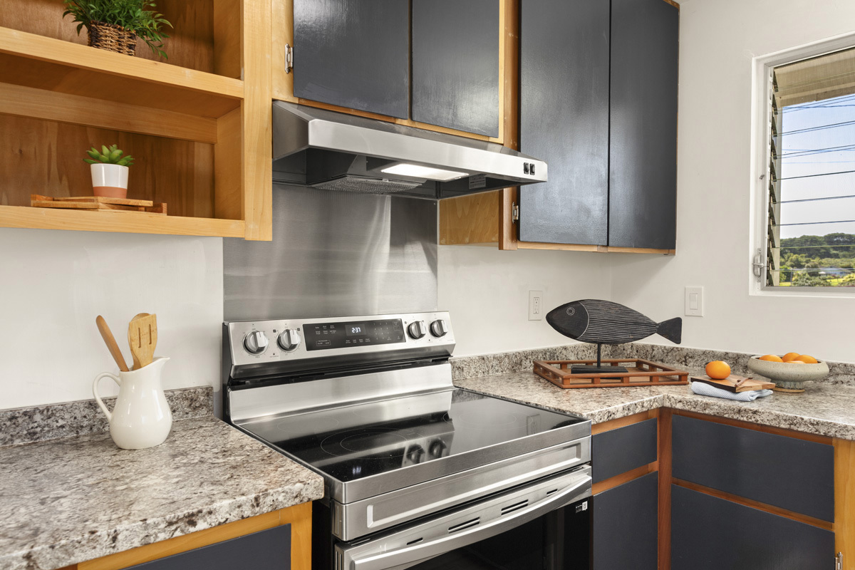 A sweet 3BR 1.5BA home on lower Kaiwiki Road in Hilo! Step into this bright home with refinished hardwood floors and an exhaust fan system for steady cooling all day. The kitchen boasts newly-installed wood cabinets, new stainless steel range/oven and hood, and laminate counter tops with a large stainless steel sink. Bathroom renovations include tiled walk-in shower, new toilets, vanity, and fixtures. The utility room updated with new water heater, tiled walk-in shower, new utility sink, and washer/dryer hookups for your convenience. The exterior has been well-maintained and painted throughout the years as well — an ideal opportunity to reside in the Haaheo Elementary School district! - Interior Living Area — 1,108 SF - Utility Room and Storage — 120 SF - Carport — 400 SF The land area is approximately 9,432 SF with a spacious yard offering room for gardening and outdoor activities. With recent refresh completed for you, this charming home is truly move-in ready!