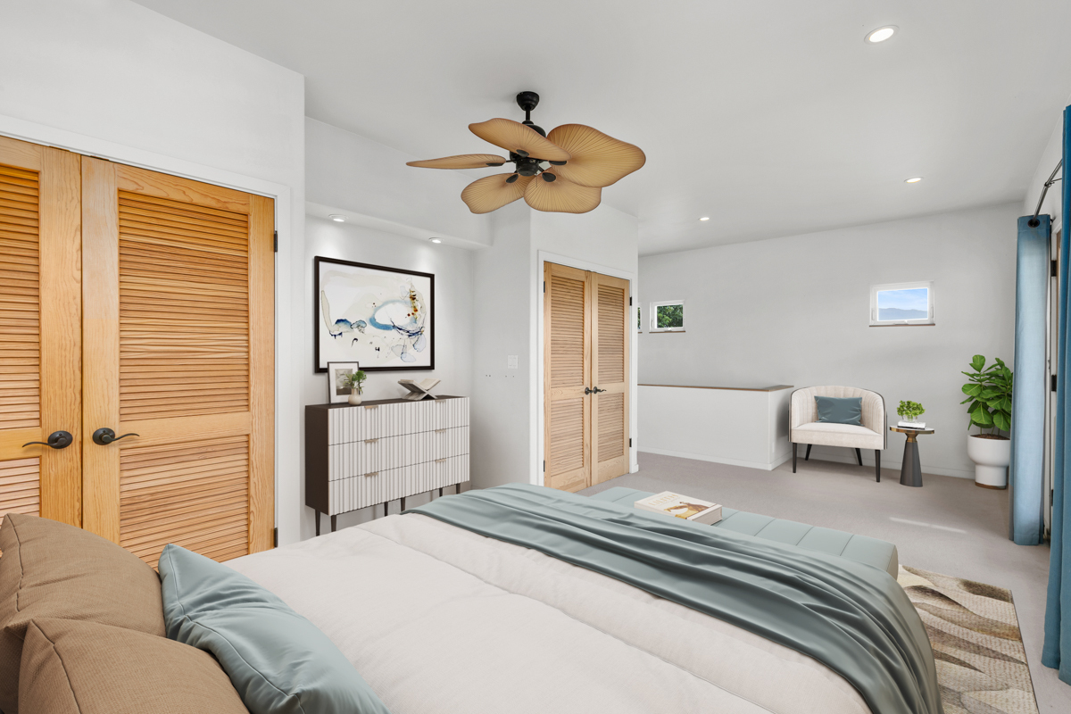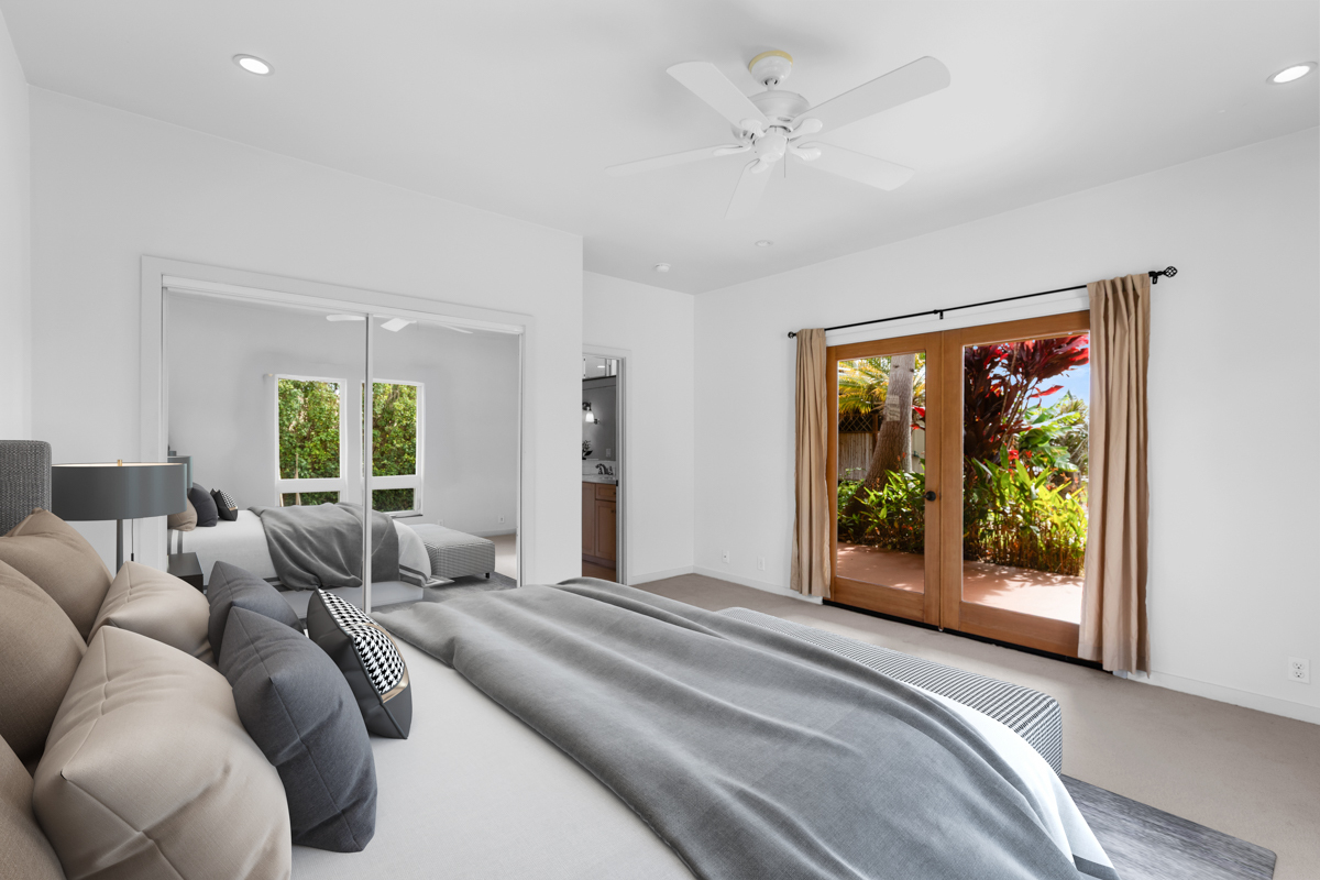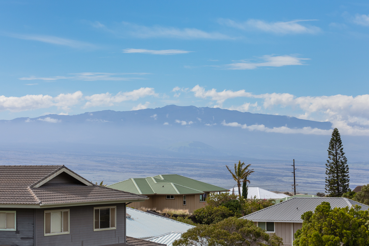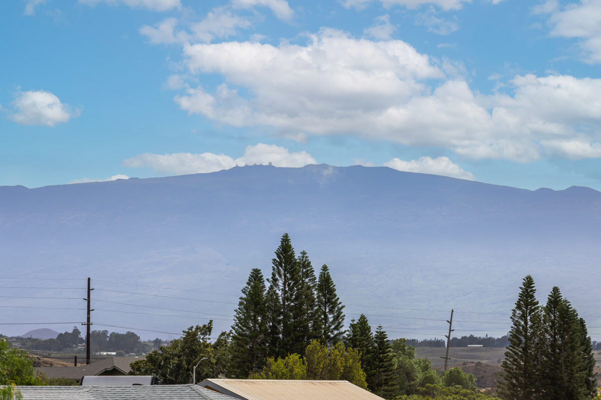 Rarely found home on the highly sought after back row of Kamuela View Estates! Currently set up as a 3 bedroom, 2 bath plus 1 bedroom 1 bath ohana off garage, with kitchenette. This well built home has a large outdoor covered lanai, sheltered from the wind and offers views of the open pasture behind, plus Mauna Loa, Hualalai and peekaboo ocean/sunset views from the upstairs primary suite. Perfect for family home or rent out part. Very private from the road. This one will not last!!
