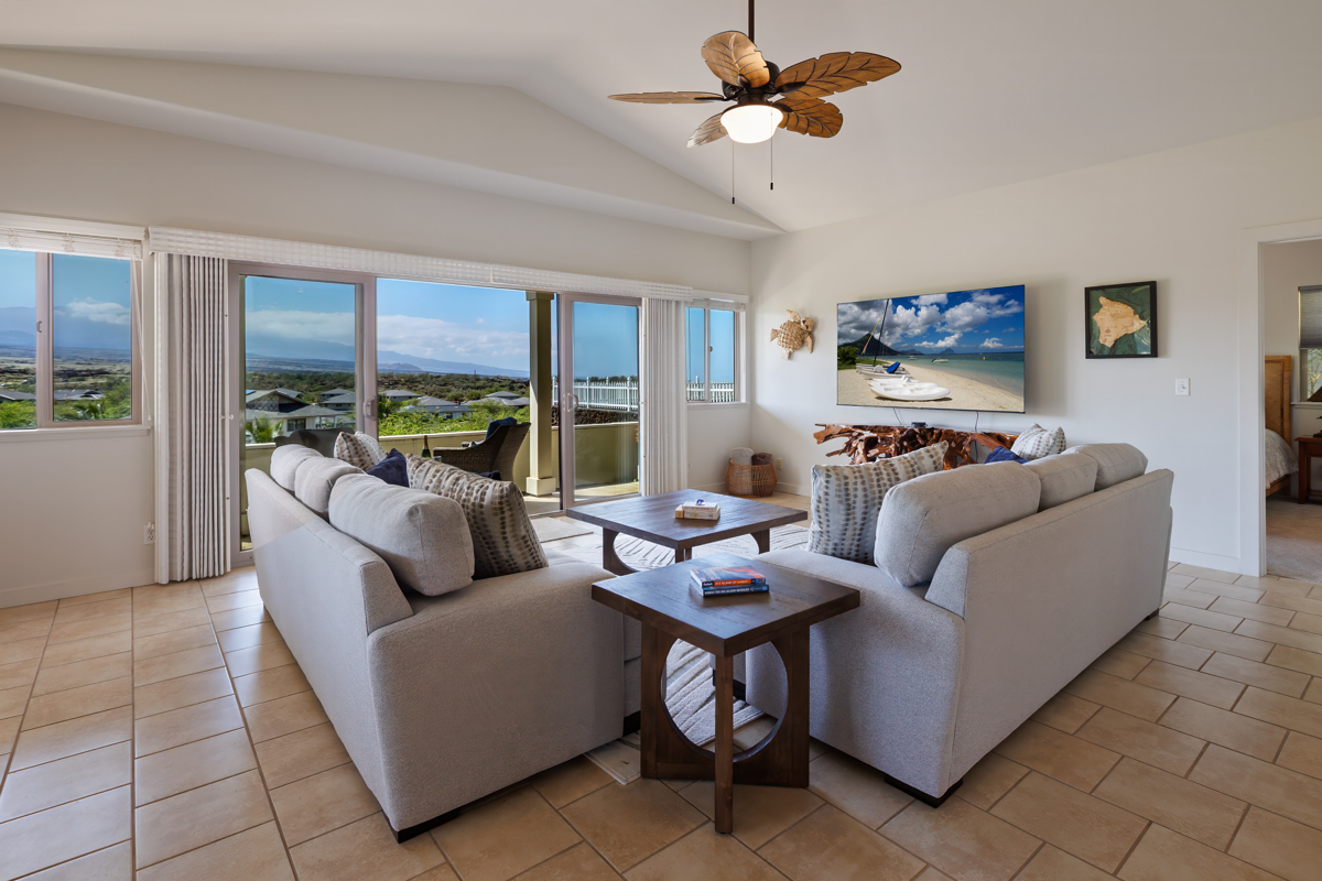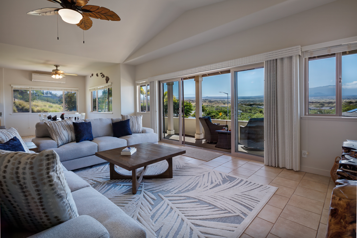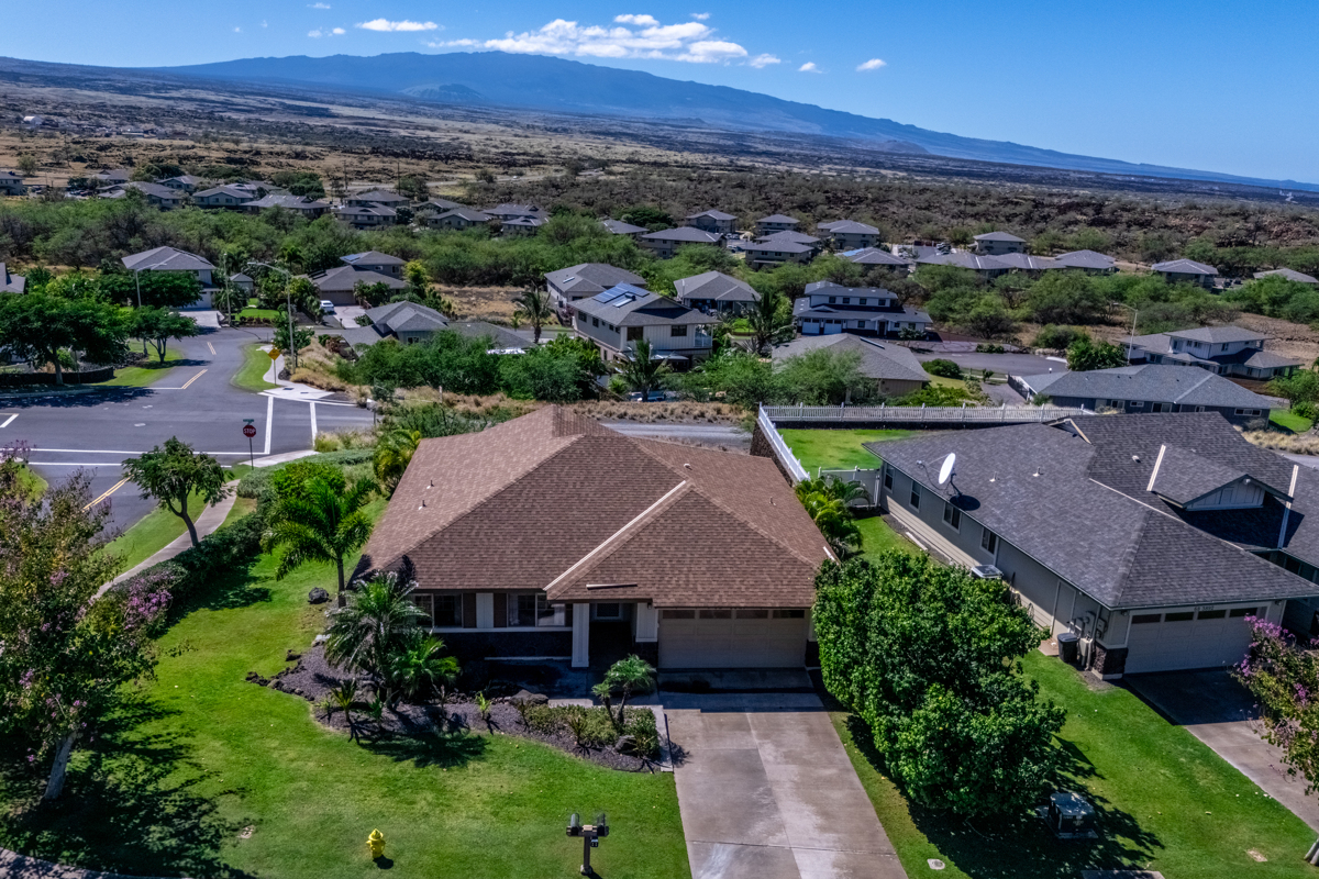 This well-maintained home located in the beautiful subdivision of Kikaha at Wehilani captures breathtaking surroundings. The home features spacious, well-proportioned living areas ideal for both entertaining and relaxed everyday living. With a coveted corner-lot position and sweeping mountain views of Mauna Kea, Mauna Loa and Hualalai as well as great ocean views, this exceptional 3-bedroom, 2-bath residence offers a rare balance of natural beauty, comfort, and walkable convenience. The home is thoughtfully designed to maximize space and scenery, featuring tile flooring throughout the main living area and 4 split AC systems. The primary suite serves as a private retreat, complete with a walk-in closet and an ensuite bath featuring dual sinks. The lanai creates an inviting space for outdoor living and relaxation and a generous two-car garage offers ample storage. Set within a neighborhood, the property is just a short walk to local shops, restaurants, a fitness center, grocery store, hardware store and a post office, offering the ease of coastal living. As part of the Waikoloa Village Association, residents enjoy a host of resort-style amenities, including, pickleball and tennis courts, a heated lap pool, children’s pool, golf, and an inviting clubhouse–offering the perfect blend of recreation, relaxation, and community. This property delivers an elevated lifestyle where scenic tranquility meets everyday ease and an opportunity to enjoy beautiful views, timeless appeal and an exceptional lifestyle. Come home to a lifestyle you deserve with expansive vistas providing a stunning backdrop by day, while star-filled nights create a truly special atmosphere after sunset. Highlights: 4 Split AC system /Updated kitchen stainless-steel appliances/washer and dryer, window shades/carpet in the bedrooms/Interior has recently been painted as well as exterior trim and shutters/Irrigation has been updated/Modern furnishings included.