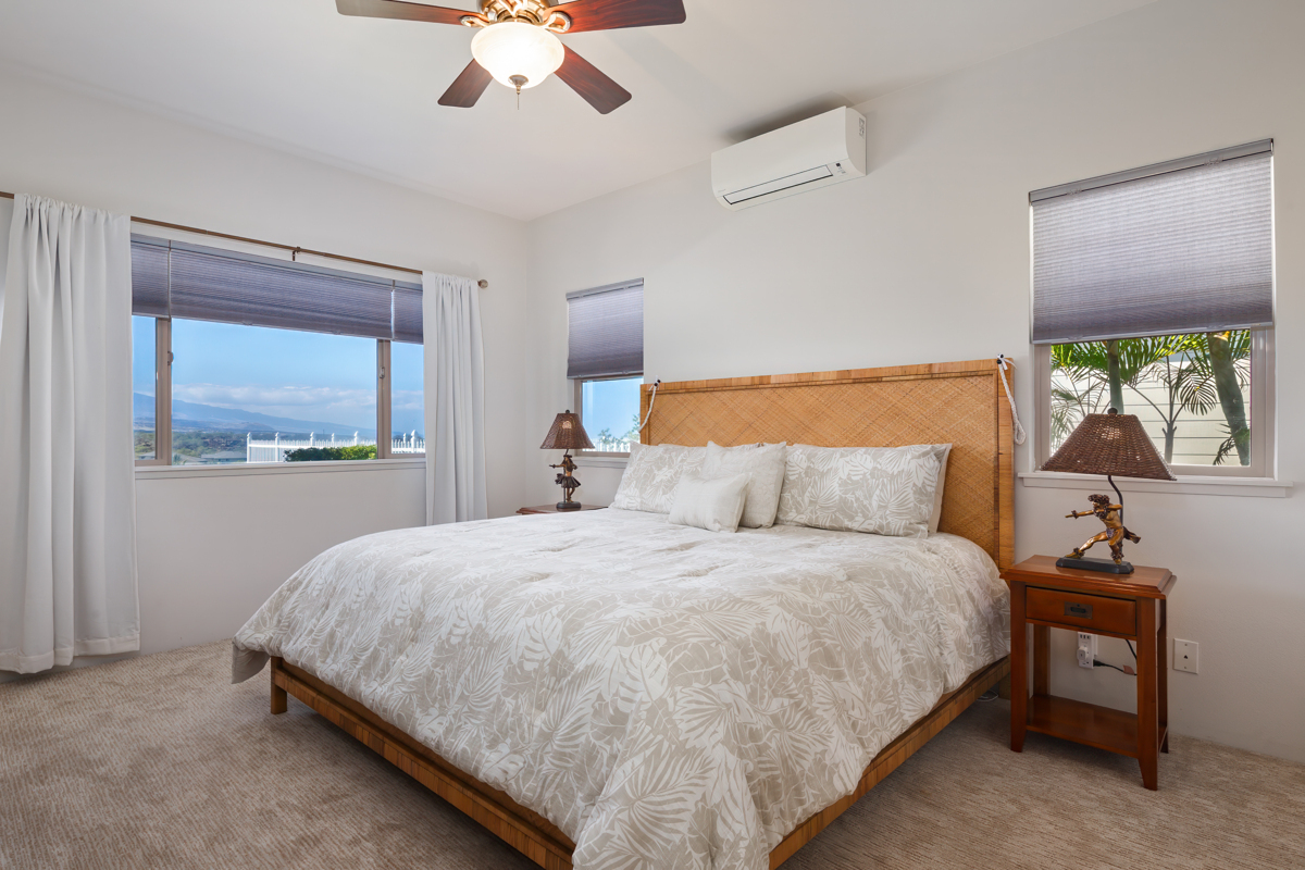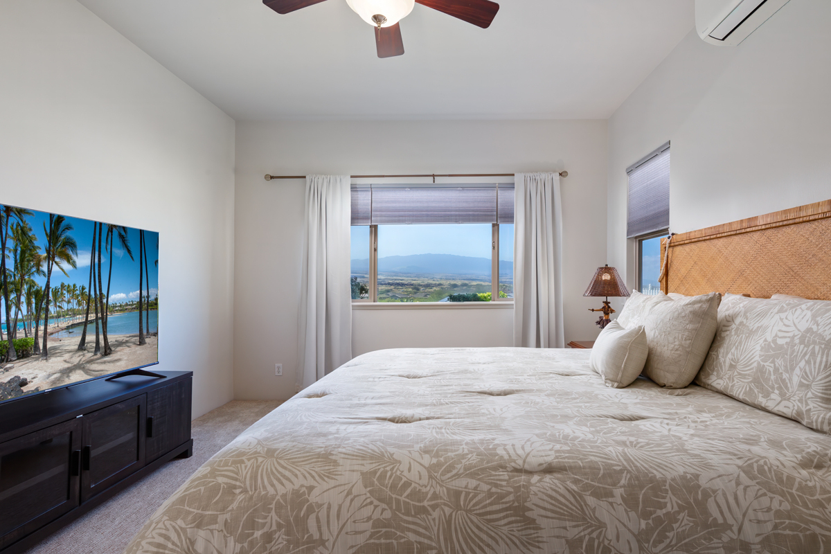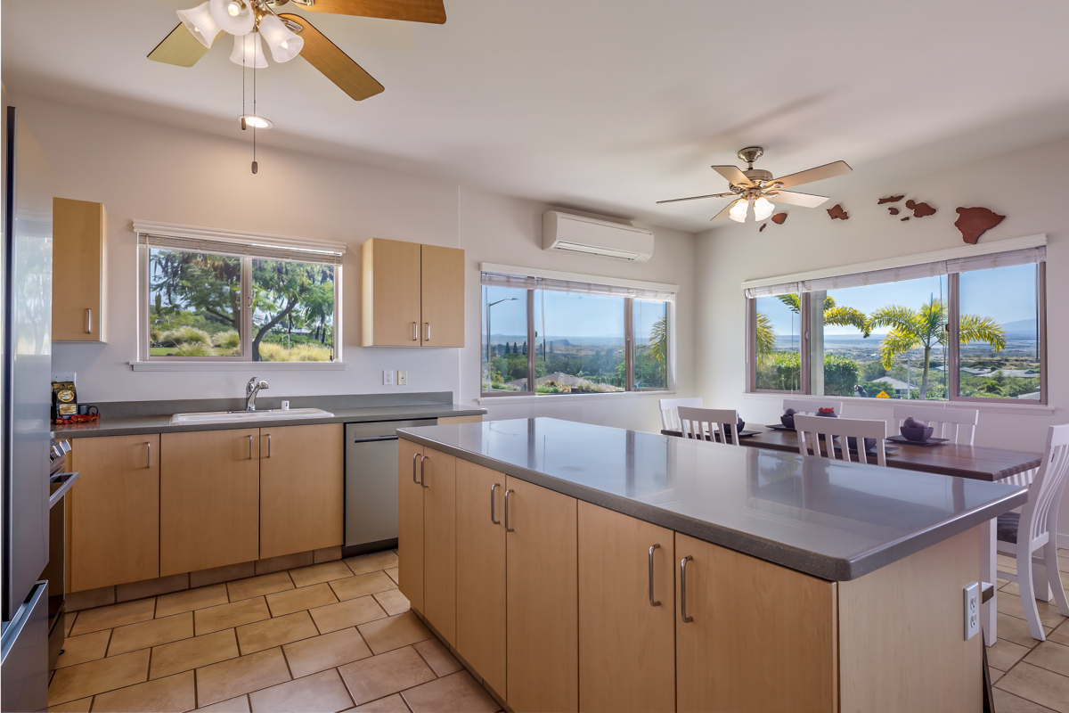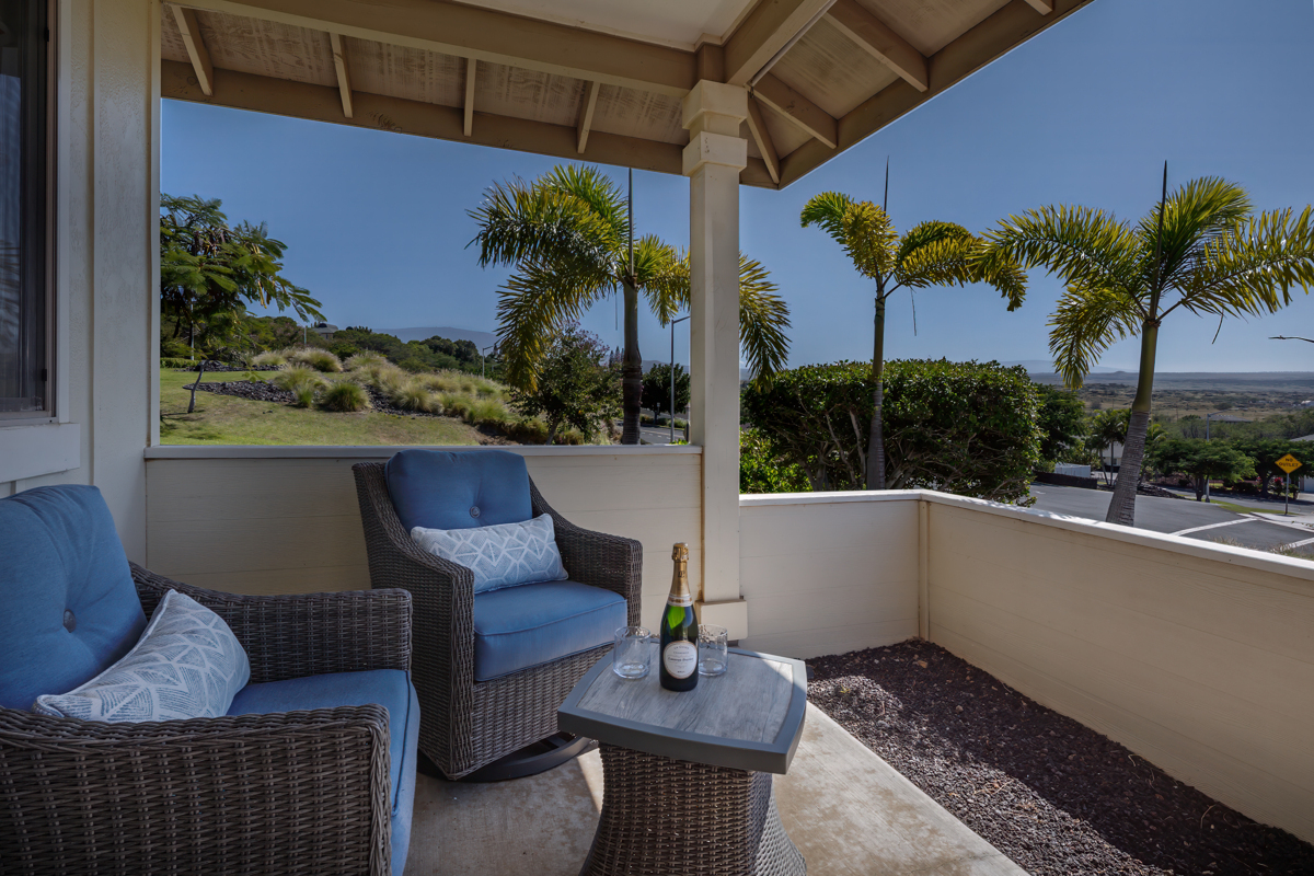 This well-maintained home located in the beautiful subdivision of Kikaha at Wehilani captures breathtaking surroundings. The home features spacious, well-proportioned living areas ideal for both entertaining and relaxed everyday living. With a coveted corner-lot position and sweeping mountain views of Mauna Kea, Mauna Loa and Hualalai as well as great ocean views, this exceptional 3-bedroom, 2-bath residence offers a rare balance of natural beauty, comfort, and walkable convenience. The home is thoughtfully designed to maximize space and scenery, featuring tile flooring throughout the main living area and 4 split AC systems. The primary suite serves as a private retreat, complete with a walk-in closet and an ensuite bath featuring dual sinks. The lanai creates an inviting space for outdoor living and relaxation and a generous two-car garage offers ample storage. Set within a neighborhood, the property is just a short walk to local shops, restaurants, a fitness center, grocery store, hardware store and a post office, offering the ease of coastal living. As part of the Waikoloa Village Association, residents enjoy a host of resort-style amenities, including, pickleball and tennis courts, a heated lap pool, children’s pool, golf, and an inviting clubhouse–offering the perfect blend of recreation, relaxation, and community. This property delivers an elevated lifestyle where scenic tranquility meets everyday ease and an opportunity to enjoy beautiful views, timeless appeal and an exceptional lifestyle. Come home to a lifestyle you deserve with expansive vistas providing a stunning backdrop by day, while star-filled nights create a truly special atmosphere after sunset. Highlights: 4 Split AC system /Updated kitchen stainless-steel appliances/washer and dryer, window shades/carpet in the bedrooms/Interior has recently been painted as well as exterior trim and shutters/Irrigation has been updated/Modern furnishings included.