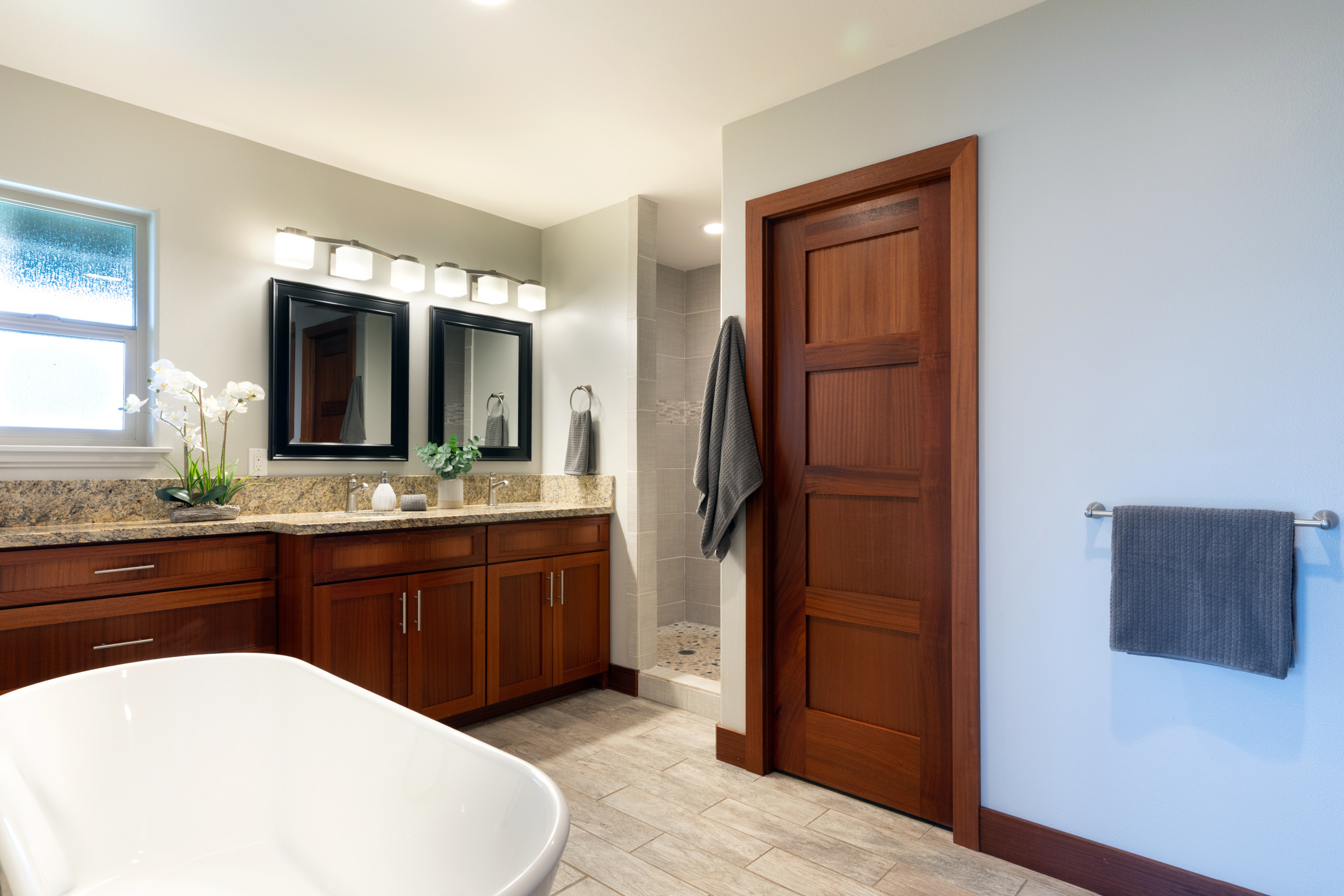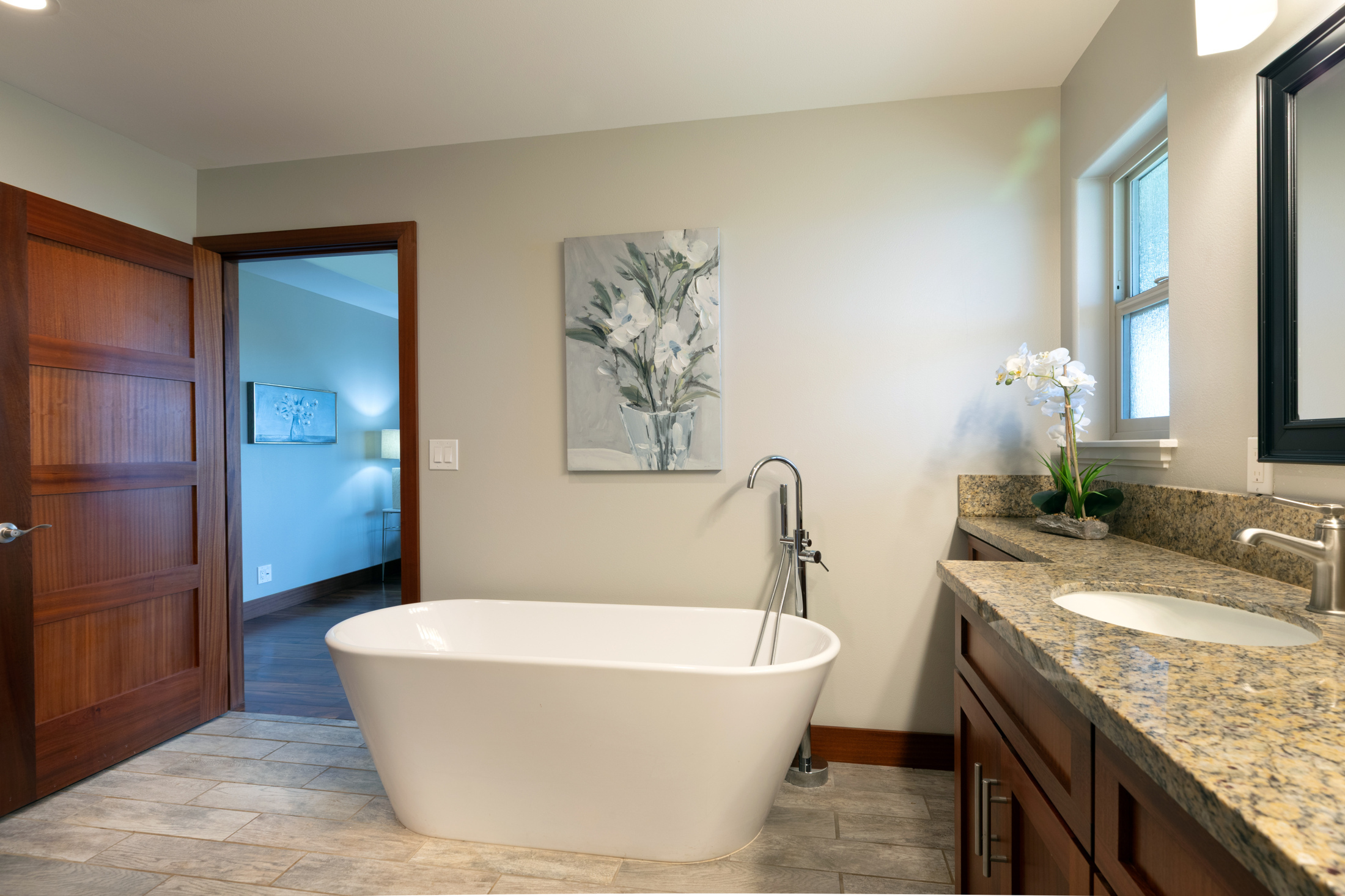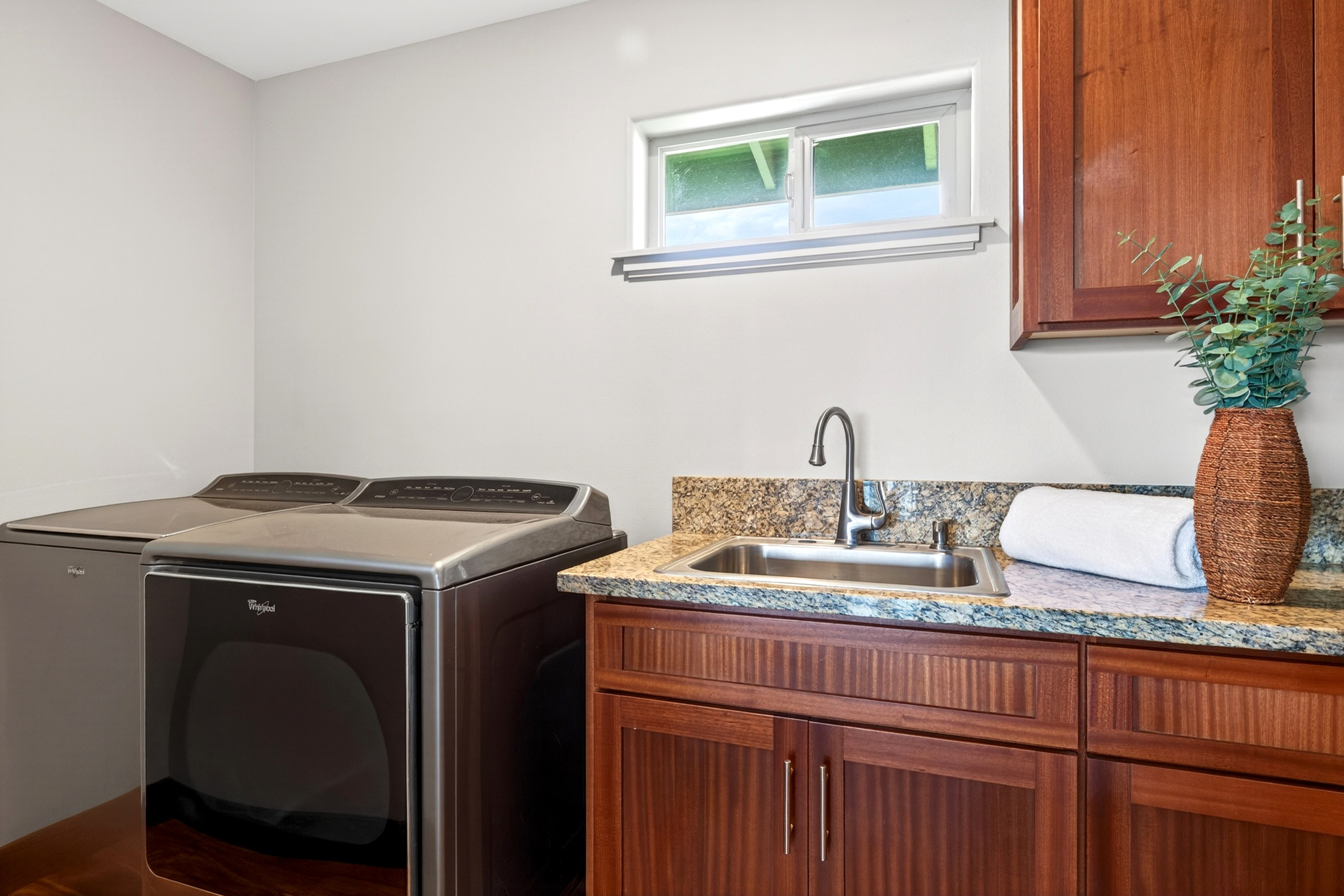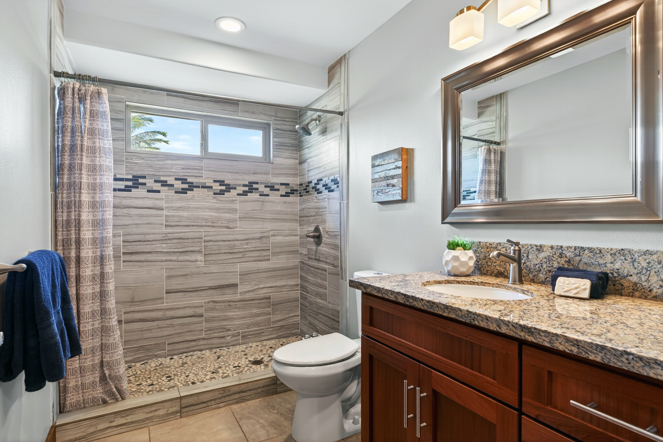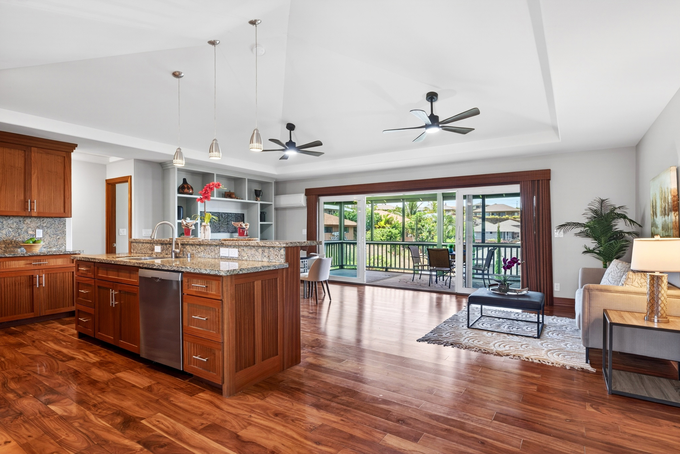 Exceptional quality, pristine condition, and island living at its finest. This beautifully crafted 3-bedroom, 2-bath home, built in 2016, offers 1,580 sq ft of thoughtfully designed living space on a 10,169 sq ft lot, capturing stunning views in every direction–including Kohala Mountain views from the front and ocean views from the back. The open-concept floor plan is enhanced by a wraparound lanai, creating seamless indoor-outdoor living ideal for relaxing or entertaining. The kitchen features granite countertops, custom mahogany cabinetry, stainless steel appliances, and generous workspace. A spacious combination pantry and laundry room adds exceptional functionality with ample storage and convenience. Rich Tigerwood flooring runs throughout the home, complemented by custom mahogany doors and detailed trim work that highlight the craftsmanship and elevate the overall aesthetic. Large windows and sliding doors invite in natural light while framing the surrounding views. Enjoy year-round comfort with split air conditioning in every room, allowing for personalized climate control throughout the home. The expansive 738 sq ft fully screened-in lanai is perfect for dining, lounging, and taking in the ocean views and island breezes. The primary suite offers a private retreat with ocean views from the bedroom and a spa-like en suite bathroom featuring a soaking tub. Exceptionally maintained and in pristine condition, this home delivers the perfect blend of quality construction, comfort, and the Hawaii lifestyle.