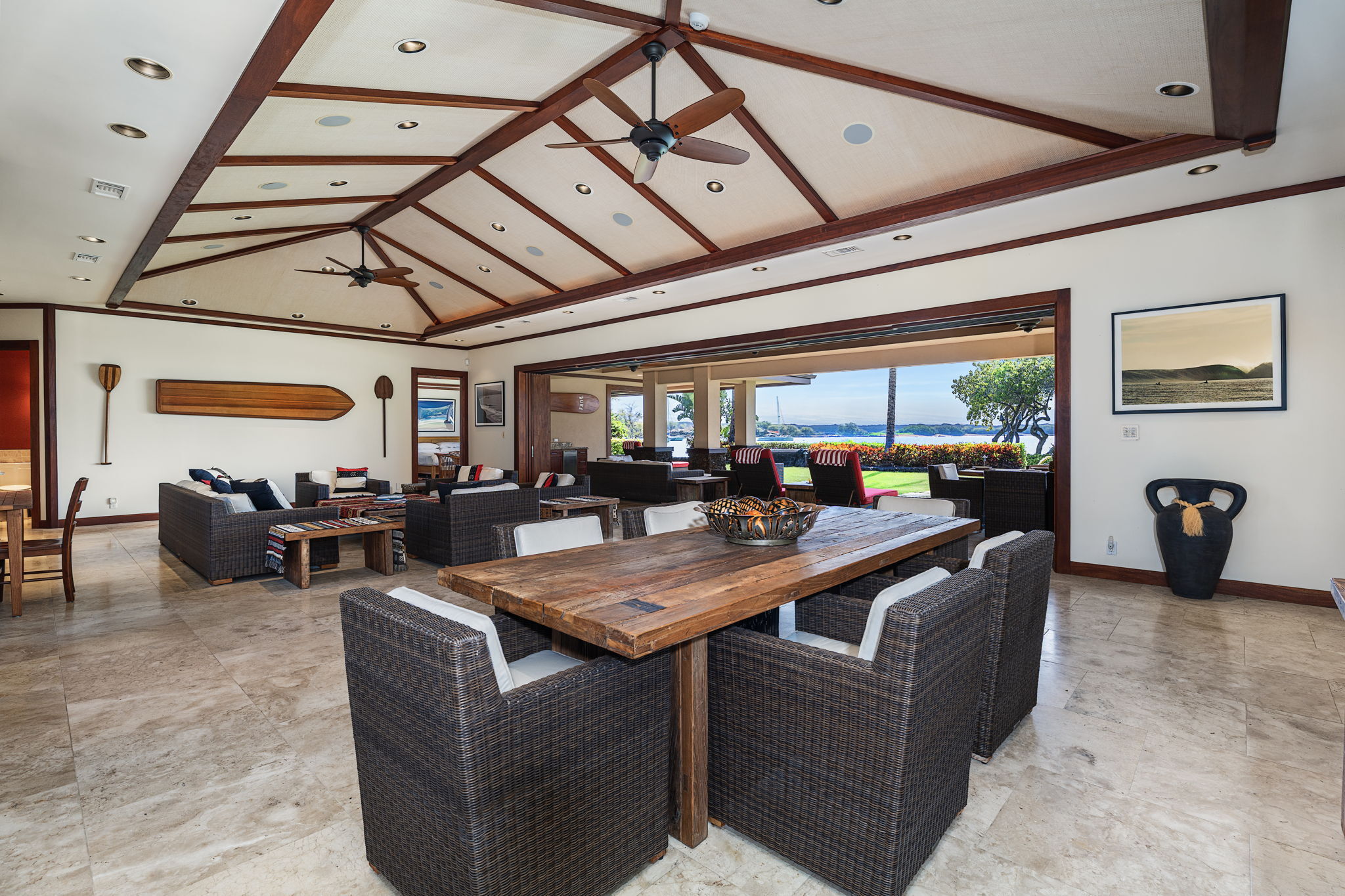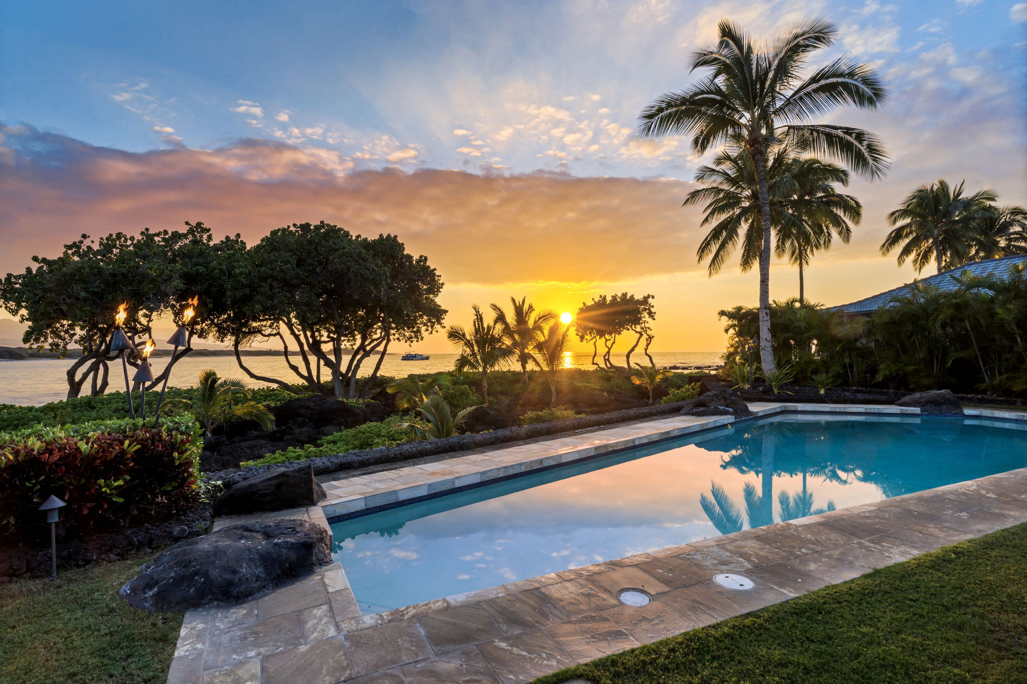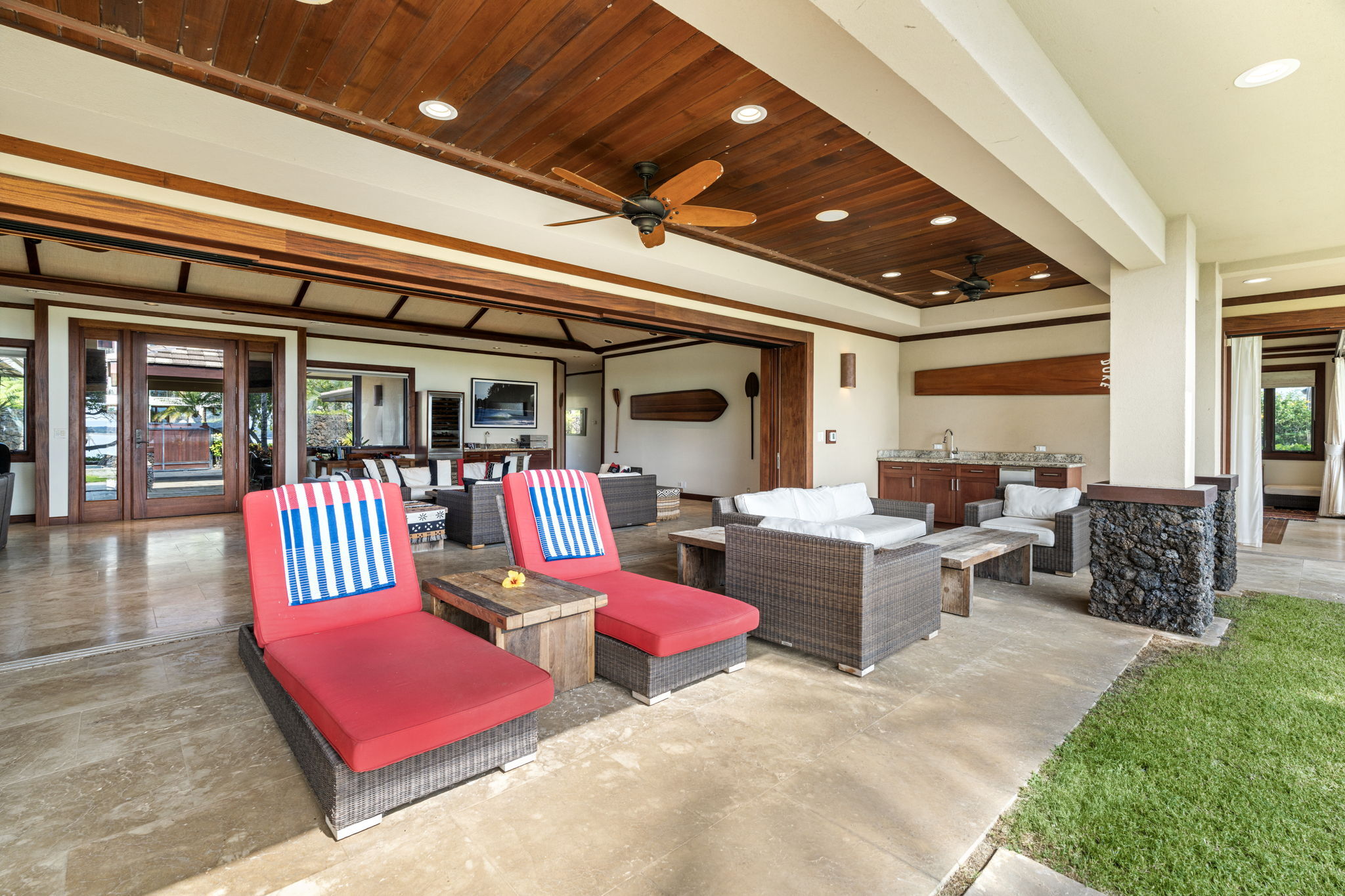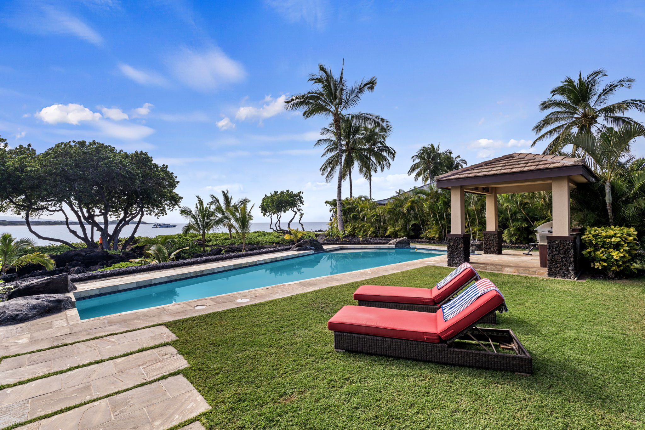 Experience the pinnacle of oceanfront luxury in House 7, an exceptional resort residence in Kolea at Waikoloa Beach Resort. Perfectly positioned with over 150 feet of direct ocean frontage, this home offers sweeping, unobstructed views of the Pacific and front-row seats to some of the most breathtaking sunsets on the Kohala Coast. Designed for seamless indoor-outdoor living, the large open floor plan is framed by vaulted ceilings and walls of mahogany pocket doors that disappear to reveal expansive lanais and endless ocean vistas. Rich mahogany finishes throughout the home add warmth and timeless elegance, complementing the refined island architecture. The residence features four spacious bedroom suites, each with a private ensuite bath and both indoor and outdoor showers, creating a true spa-like retreat for owners and guests alike. An additional media room provides flexible space for movie nights or quiet relaxation. In total, the home offers 4 bedrooms, 4.5 bathrooms, and exceptional livability. Outdoors, the home truly shines. An oceanfront swimming pool and hot tub sit just steps from the shoreline, while the outdoor kitchen–paired with Wolf and Sub-Zero appliances inside–makes entertaining effortless, whether hosting intimate gatherings or sunset soirées. With its expansive views, dramatic ocean frontage, refined finishes, and rare resort-front setting, House 7 at Kolea represents a once-in-a-generation opportunity to own a premier oceanfront estate in one of Waikoloa’s most coveted luxury communities.