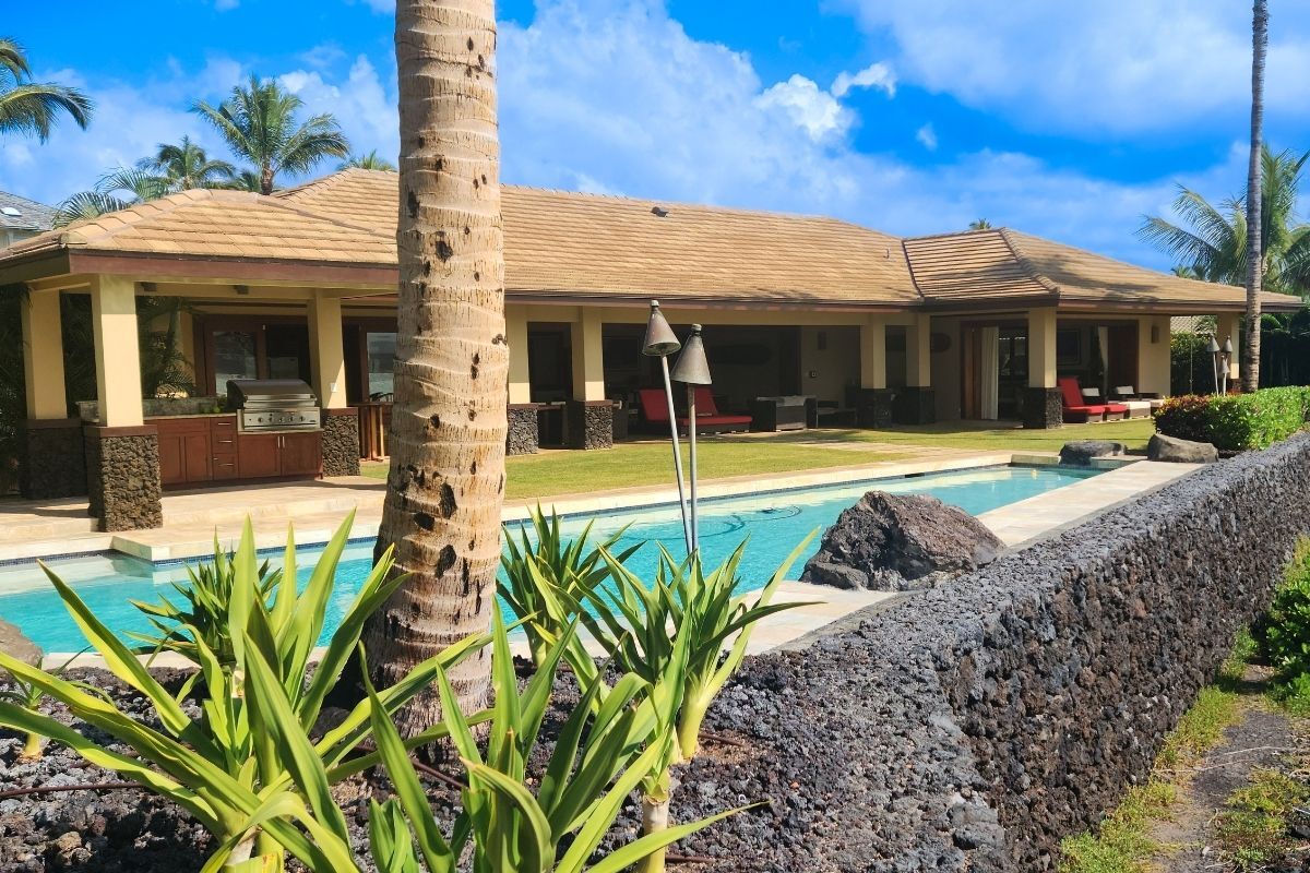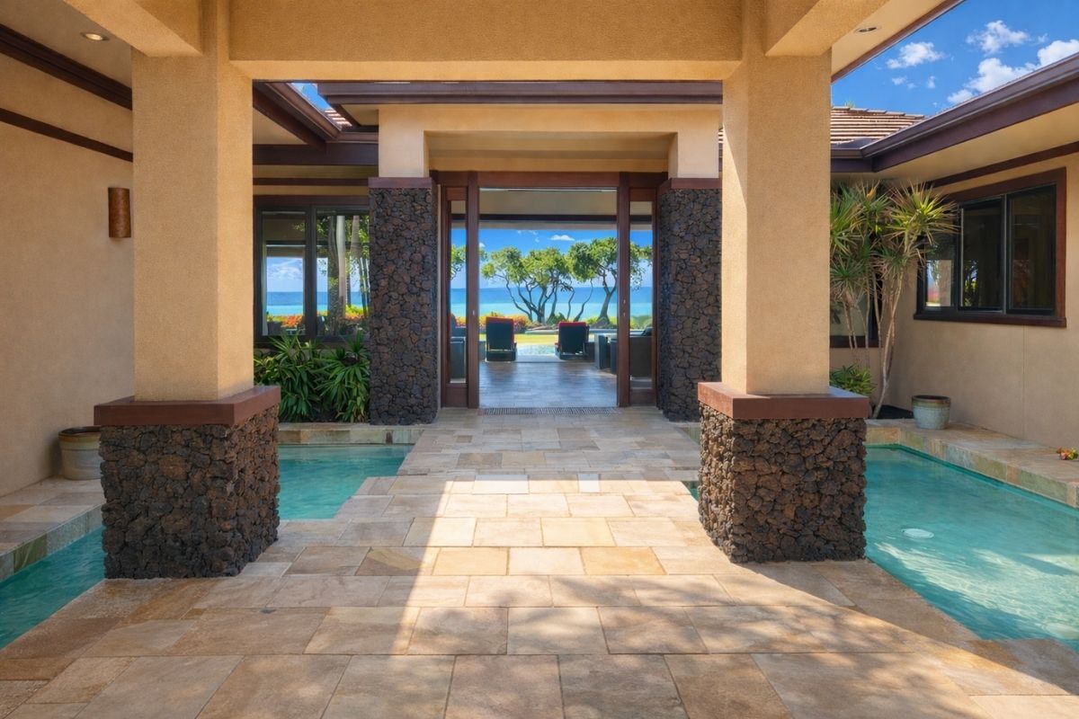Experience the pinnacle of oceanfront luxury in House 7, an exceptional resort residence in Kolea at Waikoloa Beach Resort. Perfectly positioned with over 150 feet of direct ocean frontage, this home offers sweeping, unobstructed views of the Pacific and front-row seats to some of the most breathtaking sunsets on the Kohala Coast. Designed for seamless indoor-outdoor living, the large open floor plan is framed by vaulted ceilings and walls of mahogany pocket doors that disappear to reveal expansive lanais and endless ocean vistas. Rich mahogany finishes throughout the home add warmth and timeless elegance, complementing the refined island architecture. The residence features four spacious bedroom suites, each with a private ensuite bath and both indoor and outdoor showers, creating a true spa-like retreat for owners and guests alike. An additional media room provides flexible space for movie nights or quiet relaxation. In total, the home offers 4 bedrooms, 4.5 bathrooms, and exceptional livability. Outdoors, the home truly shines. An oceanfront swimming pool and hot tub sit just steps from the shoreline, while the outdoor kitchen–paired with Wolf and Sub-Zero appliances inside–makes entertaining effortless, whether hosting intimate gatherings or sunset soirées. With its expansive views, dramatic ocean frontage, refined finishes, and rare resort-front setting, House 7 at Kolea represents a once-in-a-generation opportunity to own a premier oceanfront estate in one of Waikoloa’s most coveted luxury communities.