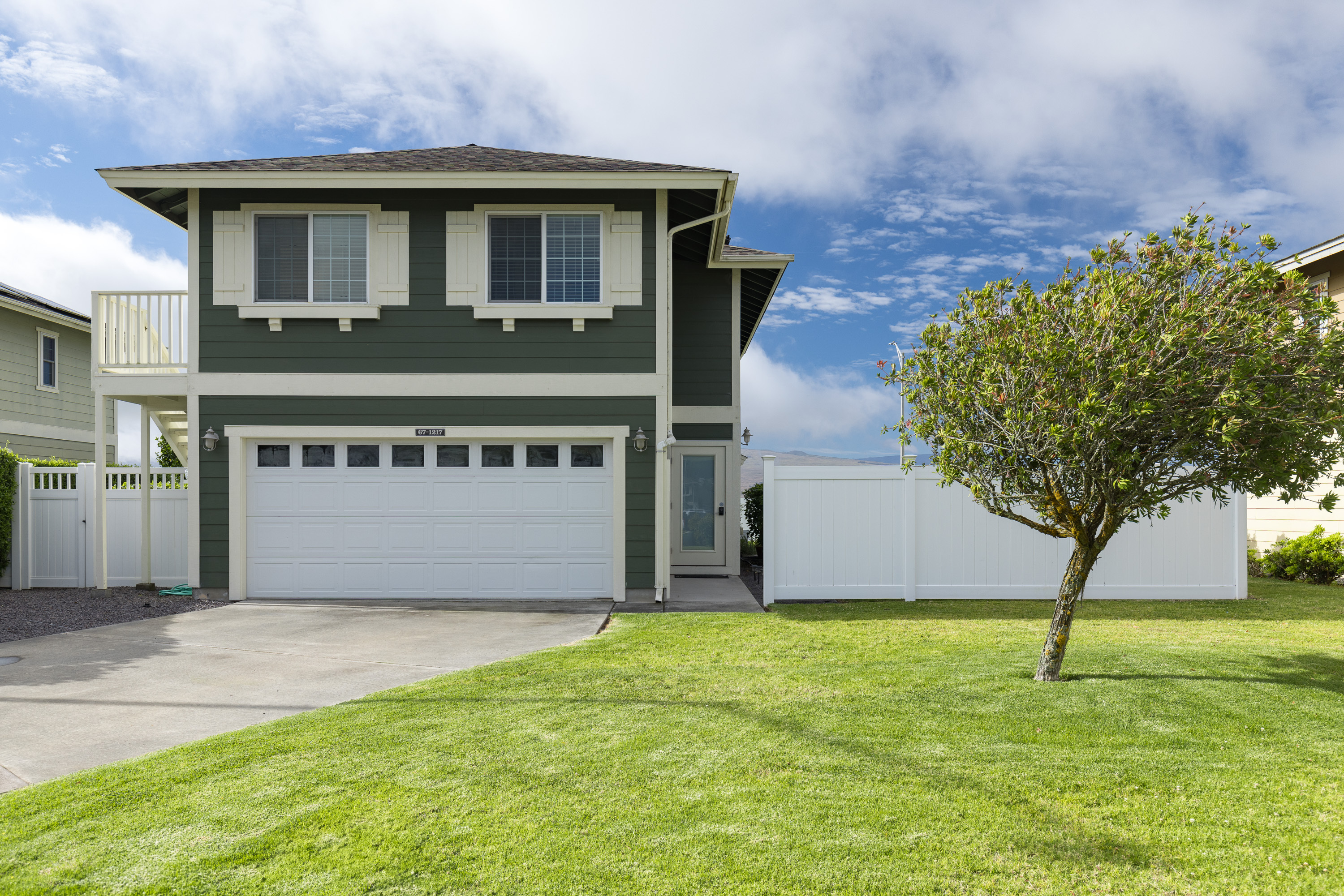 This beautifully updated 4-bedroom, 3.5-bath home was a former model home and sits at the end of a quiet cul-de-sac and boasts sweeping views of Mauna Kea, Mauna Loa, and Hualalai. Enjoy breathtaking sunrises and moonrises from your fully landscaped and completely fenced yard–ideal for both children and pets.