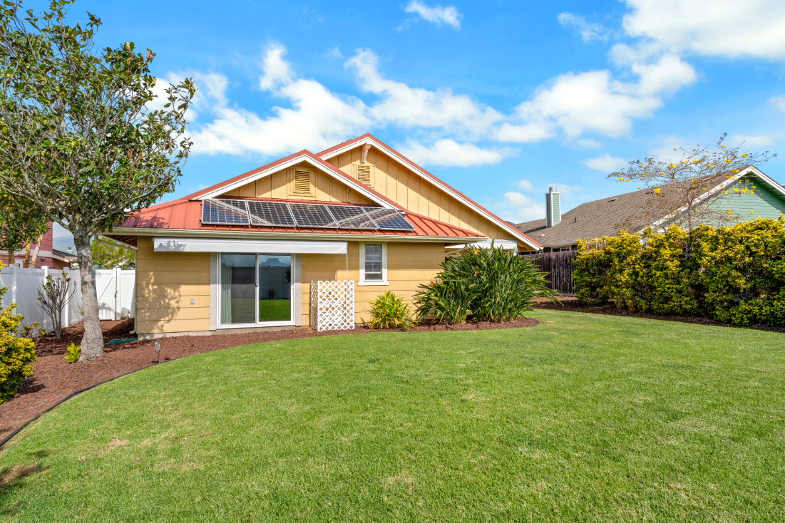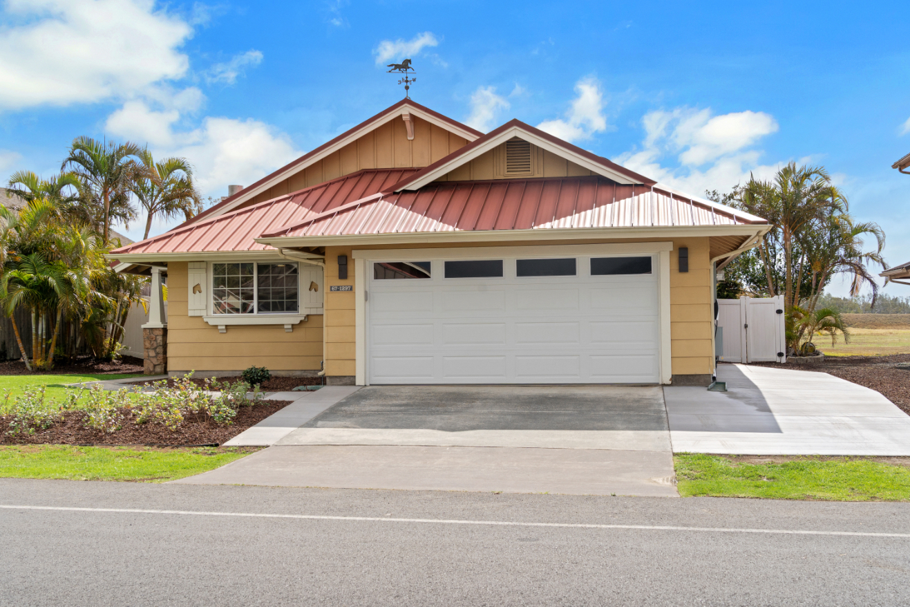 Nestled in the premier community of Luala’i at Parker Ranch, this 3-bedroom, 2-bath "Ohu" model home offers a rare combination of breathtaking views and walk-to-everything convenience. The heart of the home features soaring vaulted ceilings, now seamlessly connected to the outdoors via newly installed sliding glass doors that frame an iconic, unobstructed view of Mauna Kea. While the interior boasts a new modern walk-in shower in the primary bedroom and a renovated guest bathroom, the hidden upgrades elevate this property to a category of its own. Future-proofed for the modern owner, the home features a 200-amp electrical upgrade and a dedicated Tesla car charger, powered by an owned 12-panel photovoltaic system. Efficiency is further maximized by a newly installed solar hot water system with an oversized 80-gallon storage tank, significantly reducing monthly utility costs. Storage is redefined by professional California Closets installations throughout all bedrooms and the garage, including a custom built-in dresser in the primary suite. Parking is also upgraded with additional skirts added to the existing driveway, while a new irrigation system keeps the professional landscaping lush and green throughout the year. Whether you’re enjoying the views from the garden or walking to the local farmers' market, this home offers an Upcountry lifestyle with the efficiency of tomorrow.