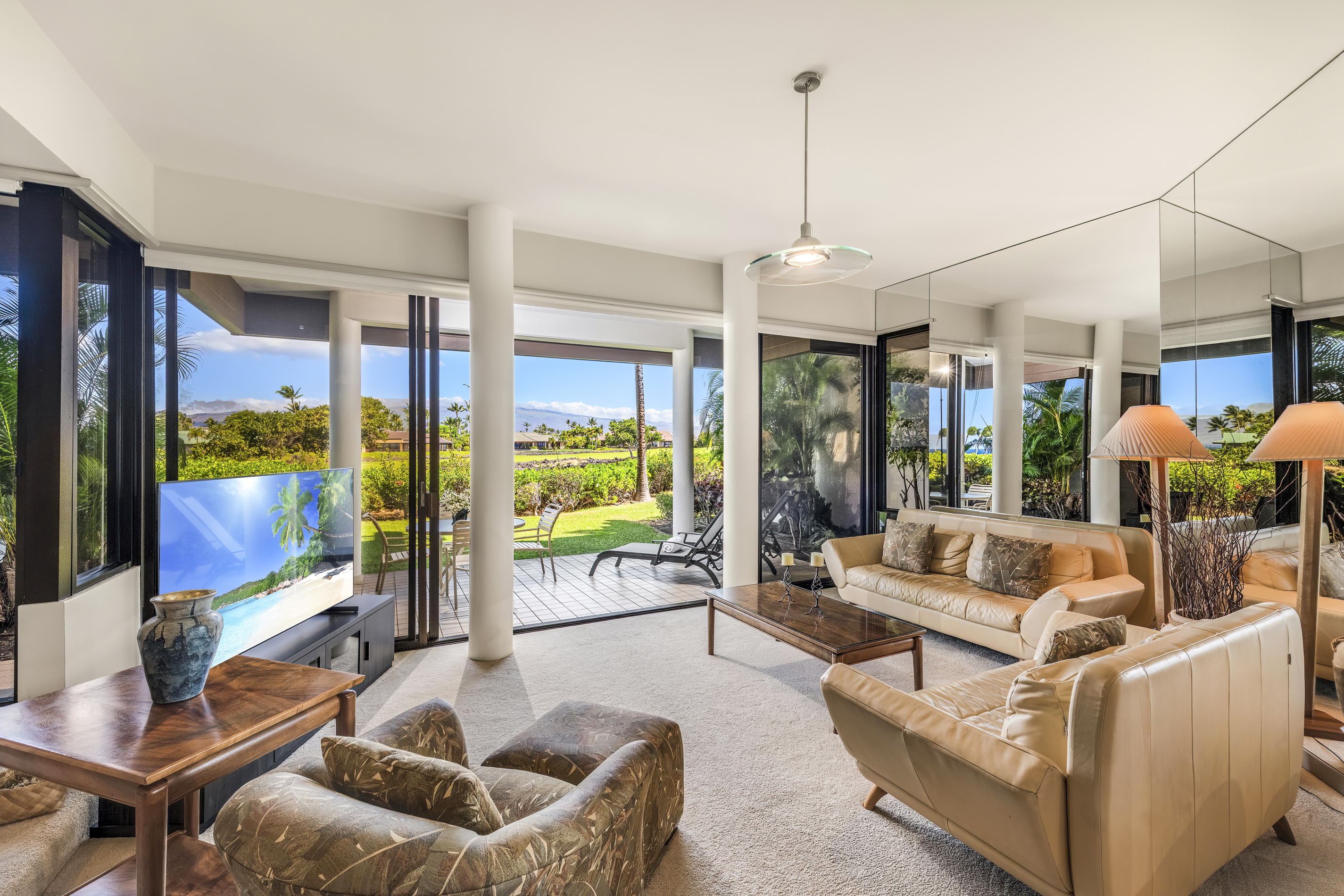 Mauna Lani Point B102 is a desirable ground-floor one-bedroom, one-and-a-half-bath golf-front residence offering lovely ocean views along with vistas of Maui and the Kohala Mountains. Lovingly enjoyed by the current owner for many years, this unit presents an excellent opportunity for a new owner to personalize and renovate to their own taste, unlocking its full potential. Mauna Lani Point is a gated community featuring an inviting amenity center with a resort-style swimming pool highlighted by a cascading waterfall. The adjacent pavilion includes barbecues, a kitchen, and dining areas, and may be reserved for private gatherings. Residents also enjoy exclusive access to the private Mauna Lani Beach Club, located just a 12-minute walk or a 2-minute drive away. Relax with a glass of chilled wine at the beachfront restaurant while taking in sweeping views of the Big Island’s dramatic coastline. The protected white-sand beach and historic Hawaiian fish ponds create a setting of rare beauty and tranquility. Optional annual memberships are available, including golf, golf-sport-tennis combinations, sports club and tennis garden access, as well as the players program.