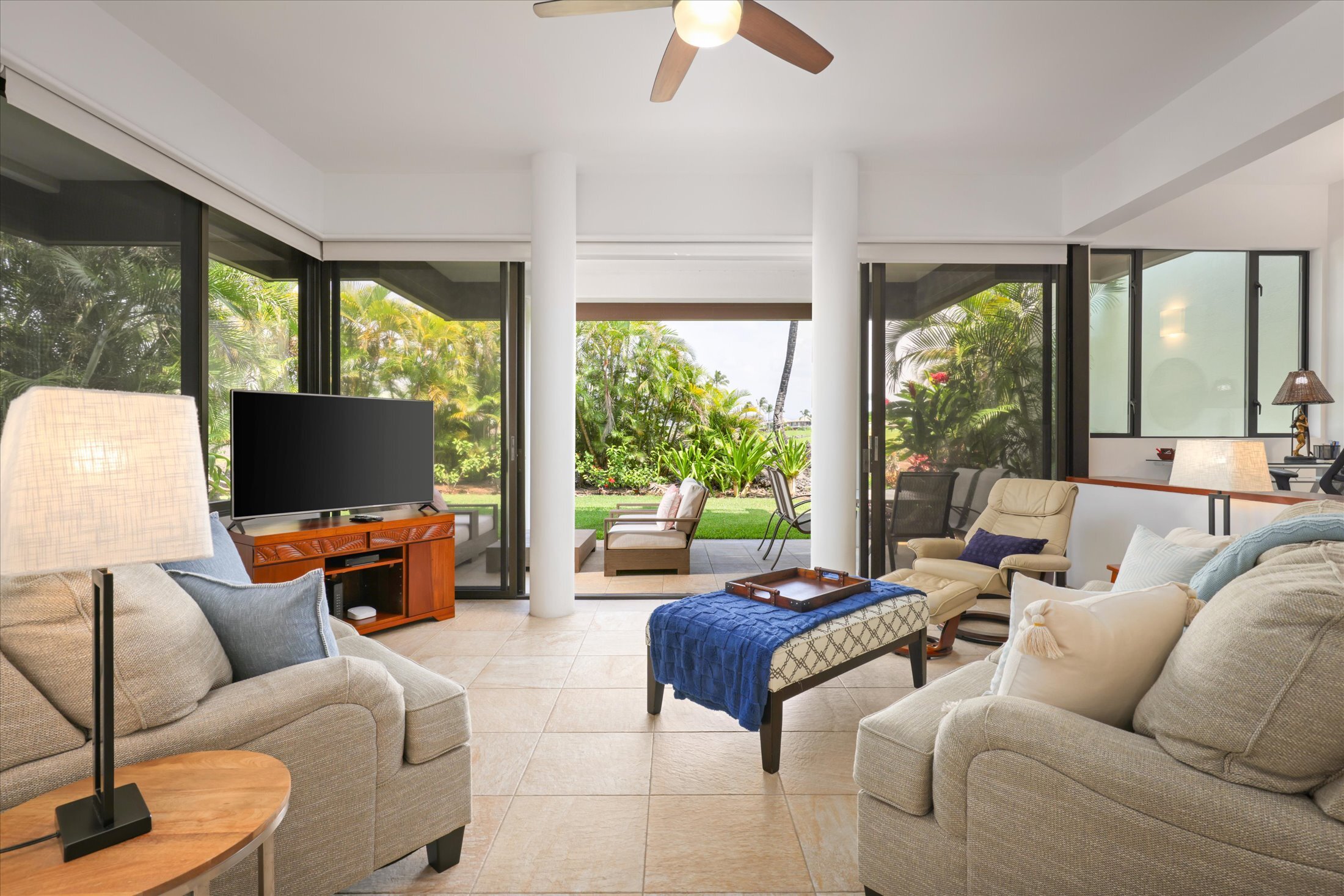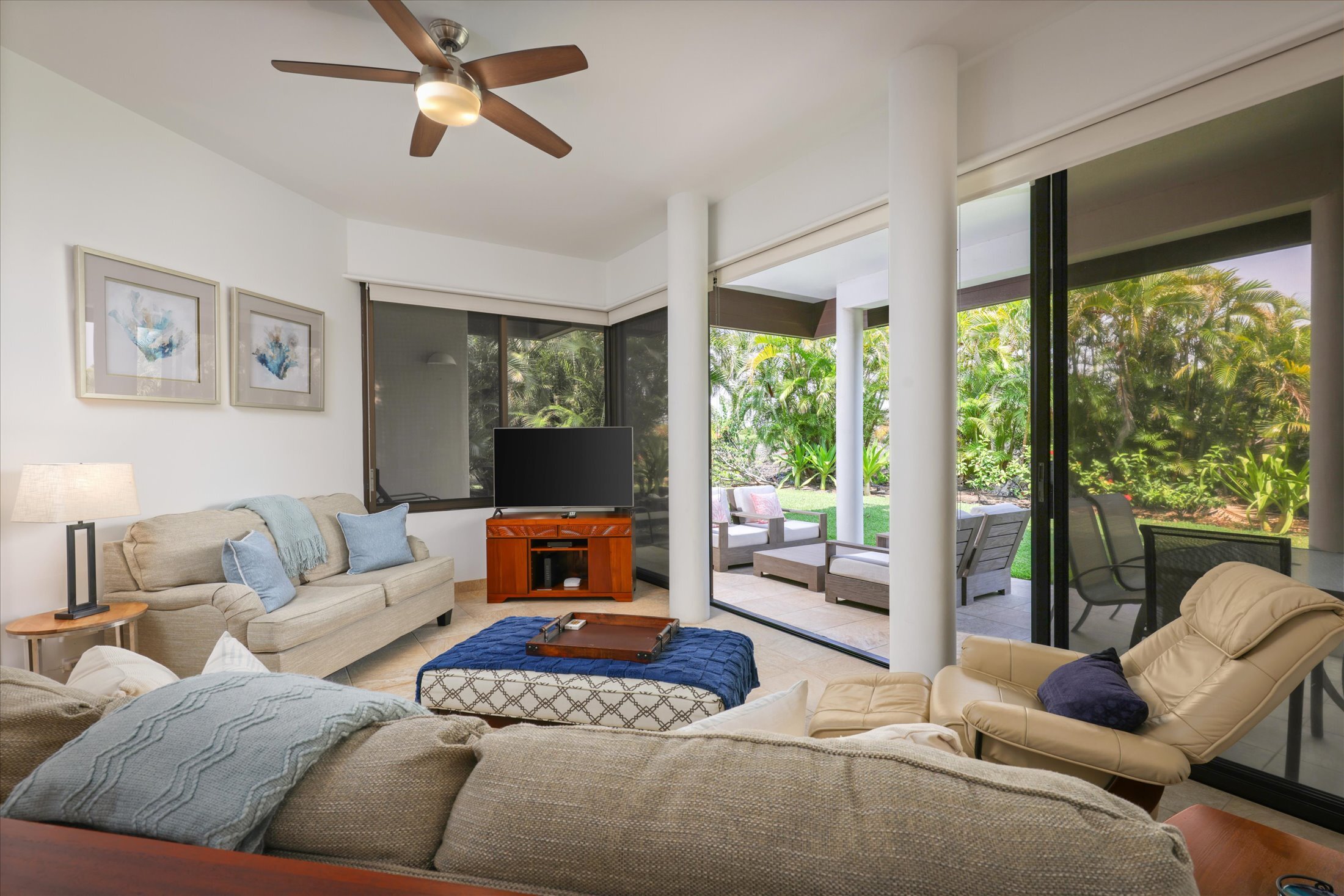 Welcome to Unit J107 at Mauna Lani Point, a newly refreshed end unit 2 bedroom 2.5 bath condominium located within the oceanfront community of Mauna Lani Point, one of the Big Island’s most prestigious resort enclaves. This desirable residence offers scenic views of Mauna Kea, the golf course, and lush tropical landscaping, with enhanced privacy and natural light unique to an end unit location. The open concept floor plan is designed for comfort and effortless indoor outdoor living, featuring central air conditioning, ceiling fans throughout, and tasteful island inspired finishes. The newly refreshed interior includes updated kitchen and bathrooms, complemented by professional tile cleaning throughout for a bright, move in ready presentation. The spacious living area opens to an expansive lanai, ideal for dining, relaxing, and enjoying the surrounding island beauty. The primary suite features an en suite bath with dual vanities and a walk in shower. The guest bedroom includes its own bathroom and generous closet space. A convenient half bath and an in unit washer and dryer complete the interior. Mauna Lani Point offers oceanfront amenities, including a private pool and spa, scenic coastal walking paths, and access to the exclusive Mauna Lani Beach Club. Championship golf courses, shopping, dining, and resort services are all nearby within Mauna Lani Resort. Currently operating as a successful short term vacation rental, this property is ready for new owners to take over, offering an excellent opportunity for investment, second home ownership, or full time resort living.