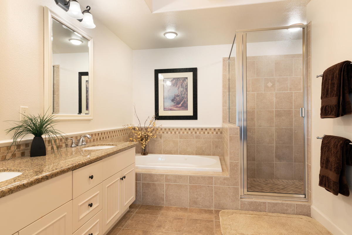 On the second floor you'll discover two generously sized bedrooms. The primary bedroom exudes comfort and functionality, featuring a versatile den area ideal for a home office or additional sleeping space. A private lanai provides a secluded spot for unwinding and soaking in the serene views. The primary ensuite offers a luxurious retreat with a jacuzzi tub, walk-in shower, and double vanity, ensuring a spa-like experience within the comforts of home.