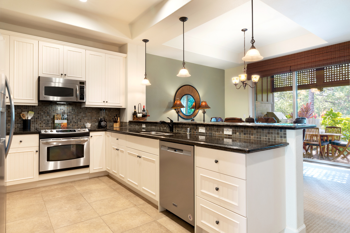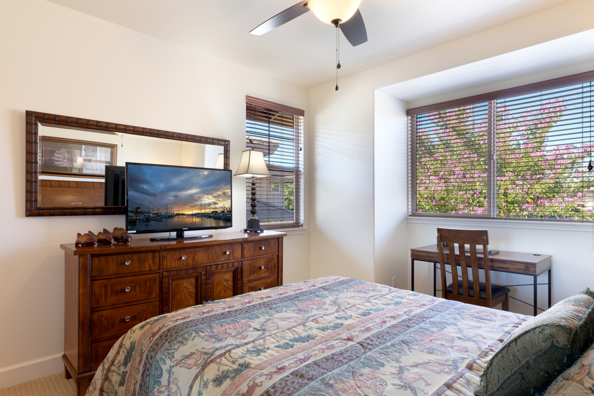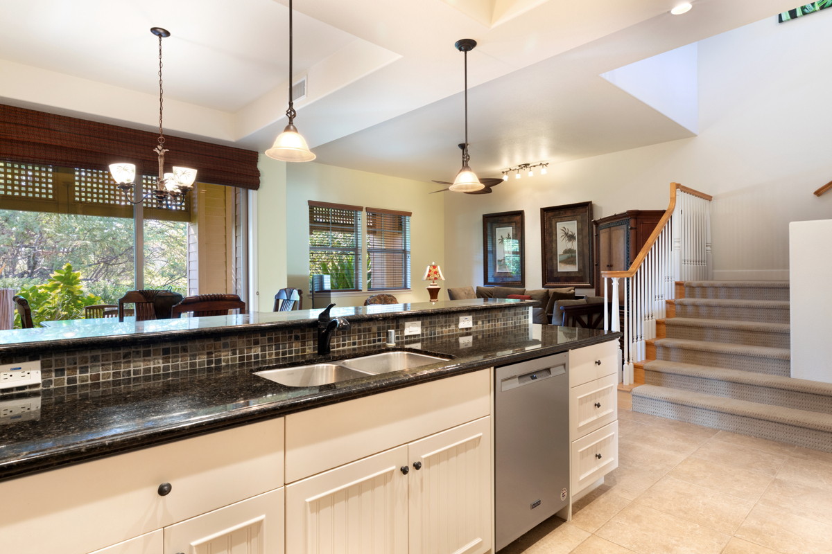 Situated in a location that is bordered by lush landscaping along the 5th hole of the Mauna Lani North course, this townhome provides a peaceful ambiance.