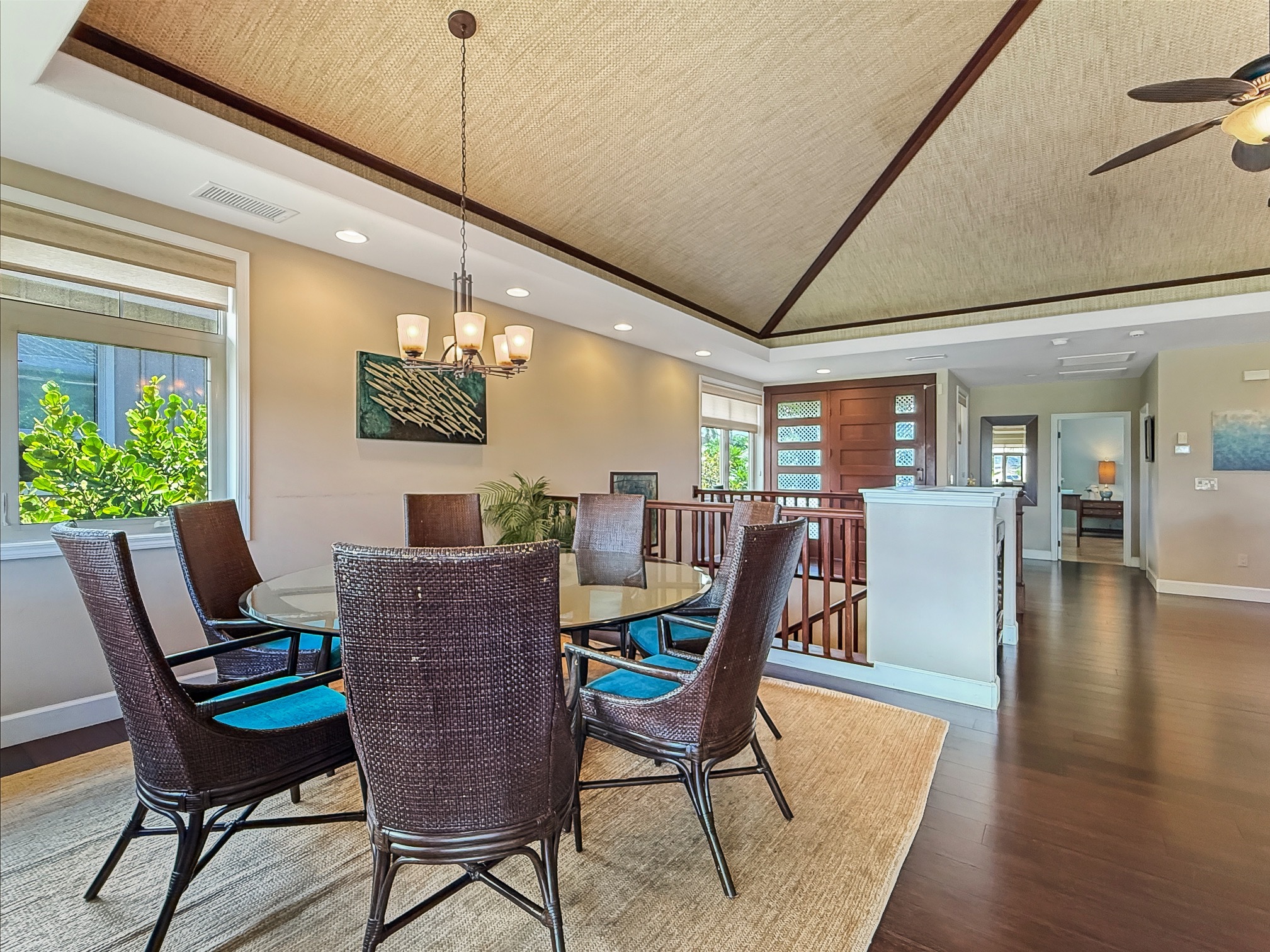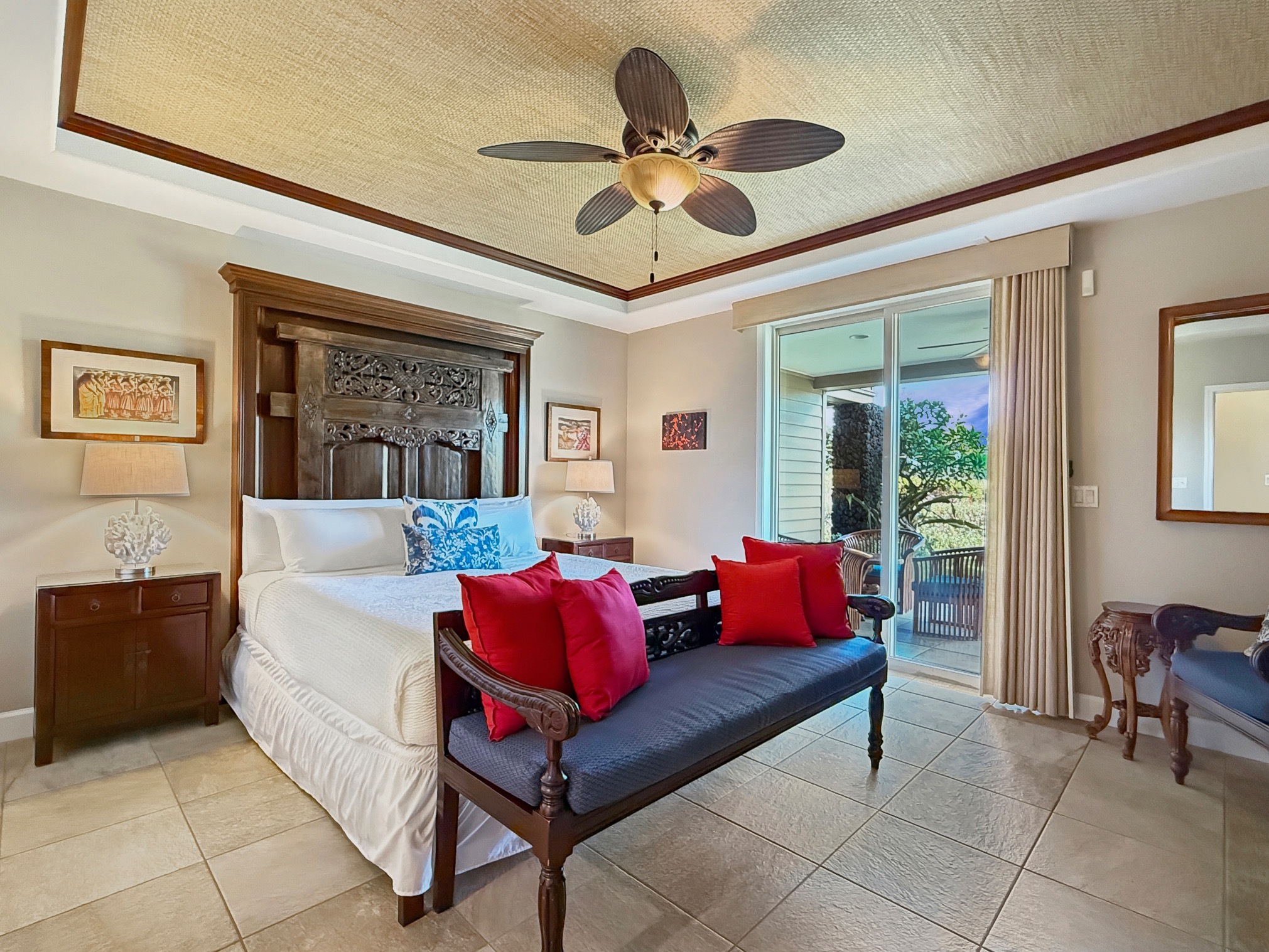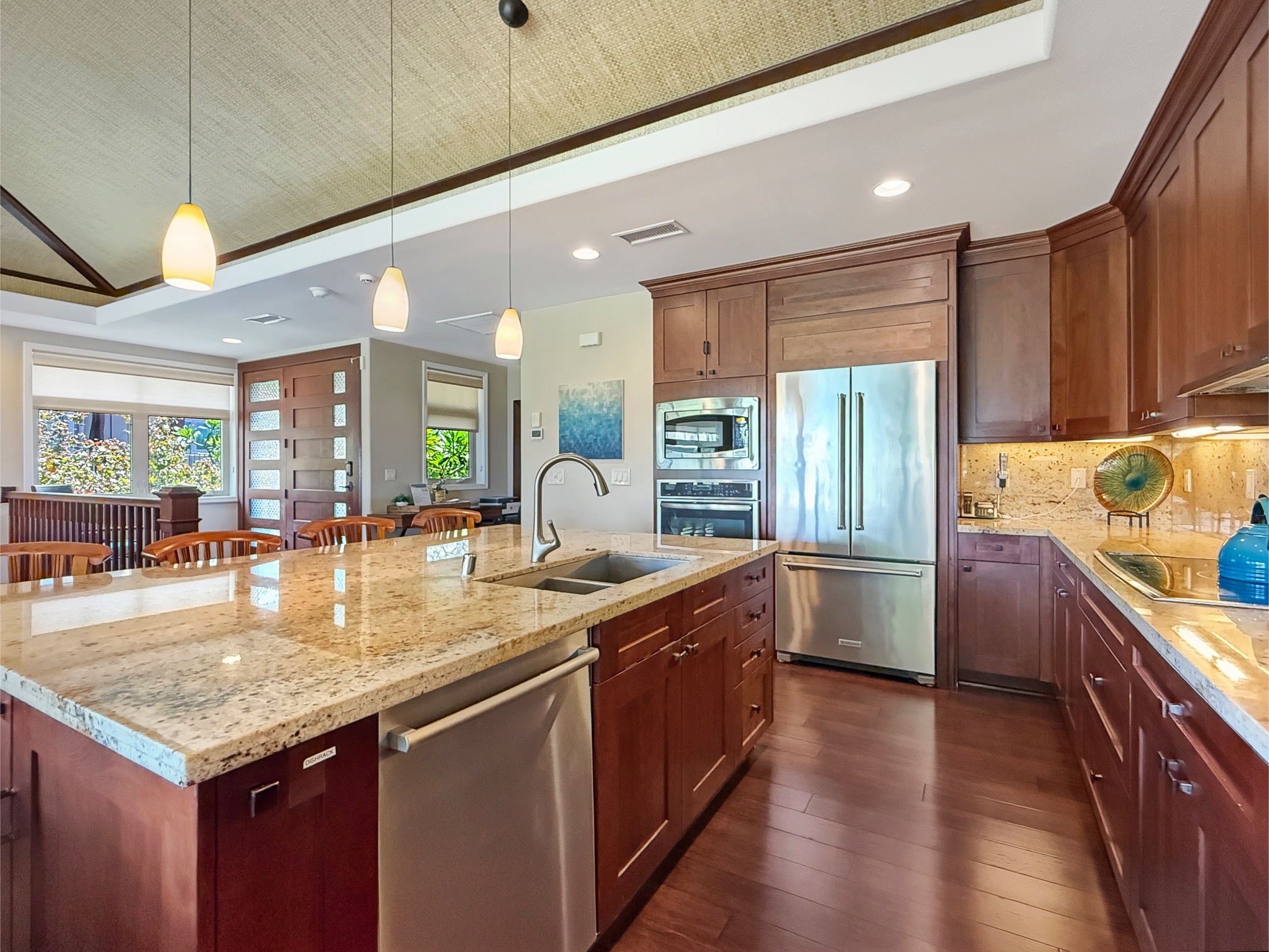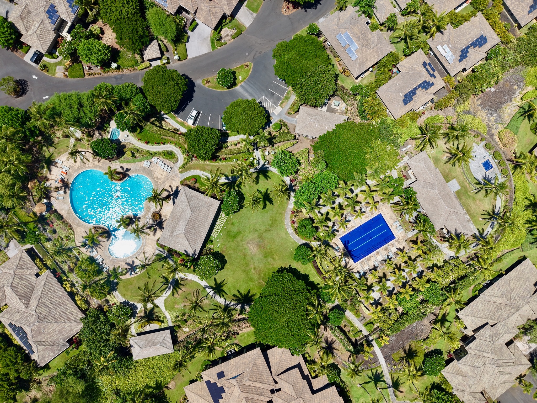 This 4 bedroom, 3-1/2 bathroom two-story townhome is an entertainer's delight with over 3,700 SF of interior and exterior space to gather with family and friends. The open floor plan features pocket doors that open to seamlessly connect the great room with a large lanai. Perched above a lush green space, it is the perfect spot for evening grilling and dining, or morning coffee as you watch the sunrise over Mauna Kea and view the peaceful Kohala Mountains.