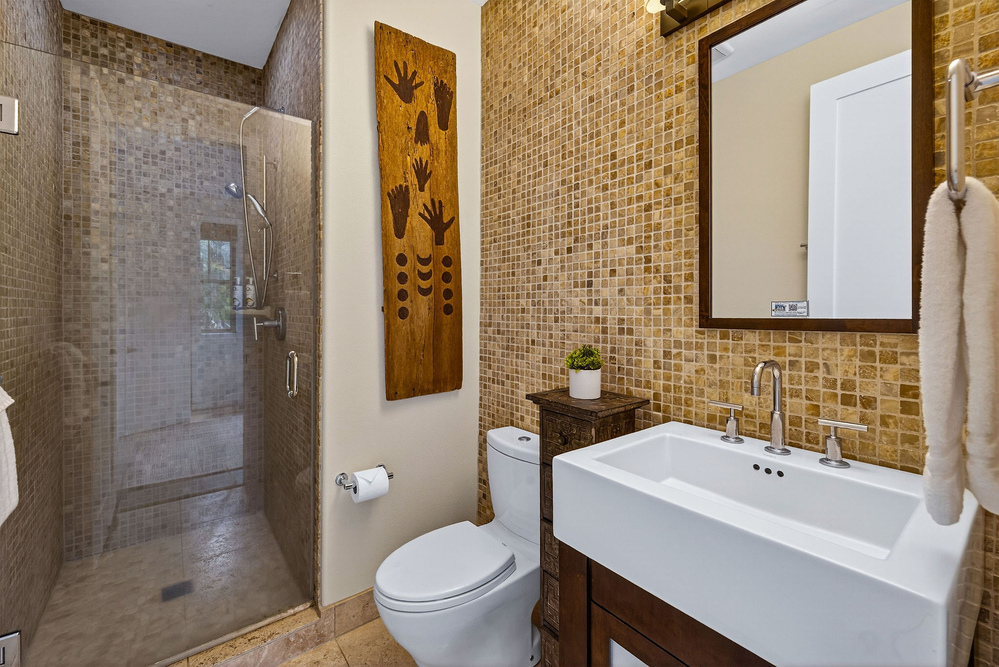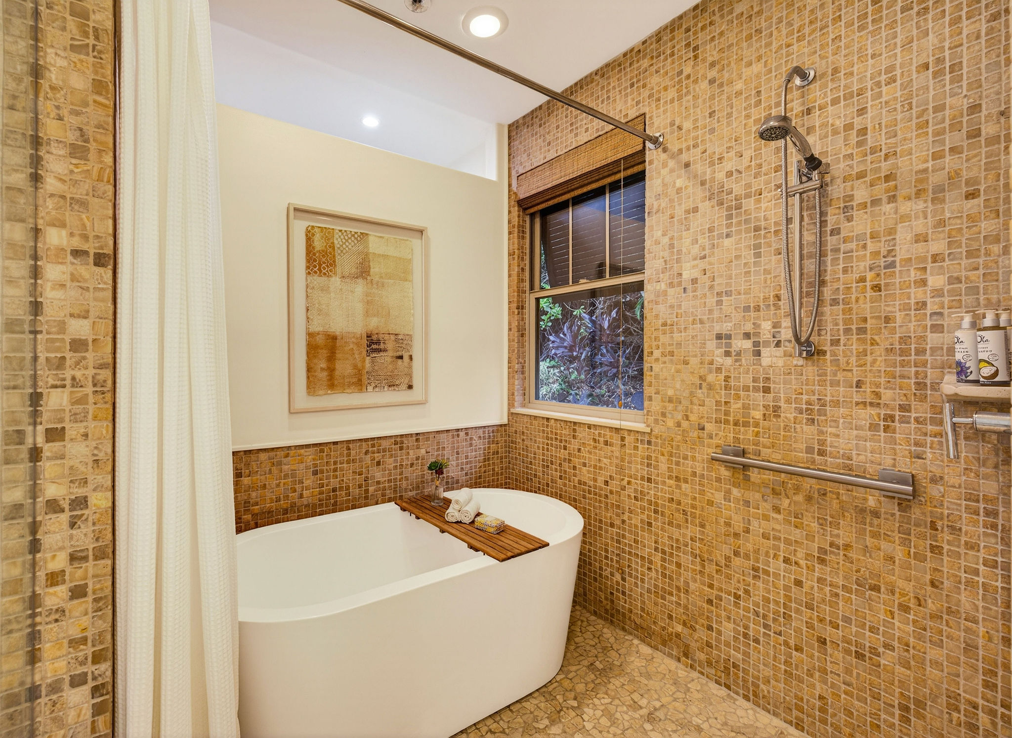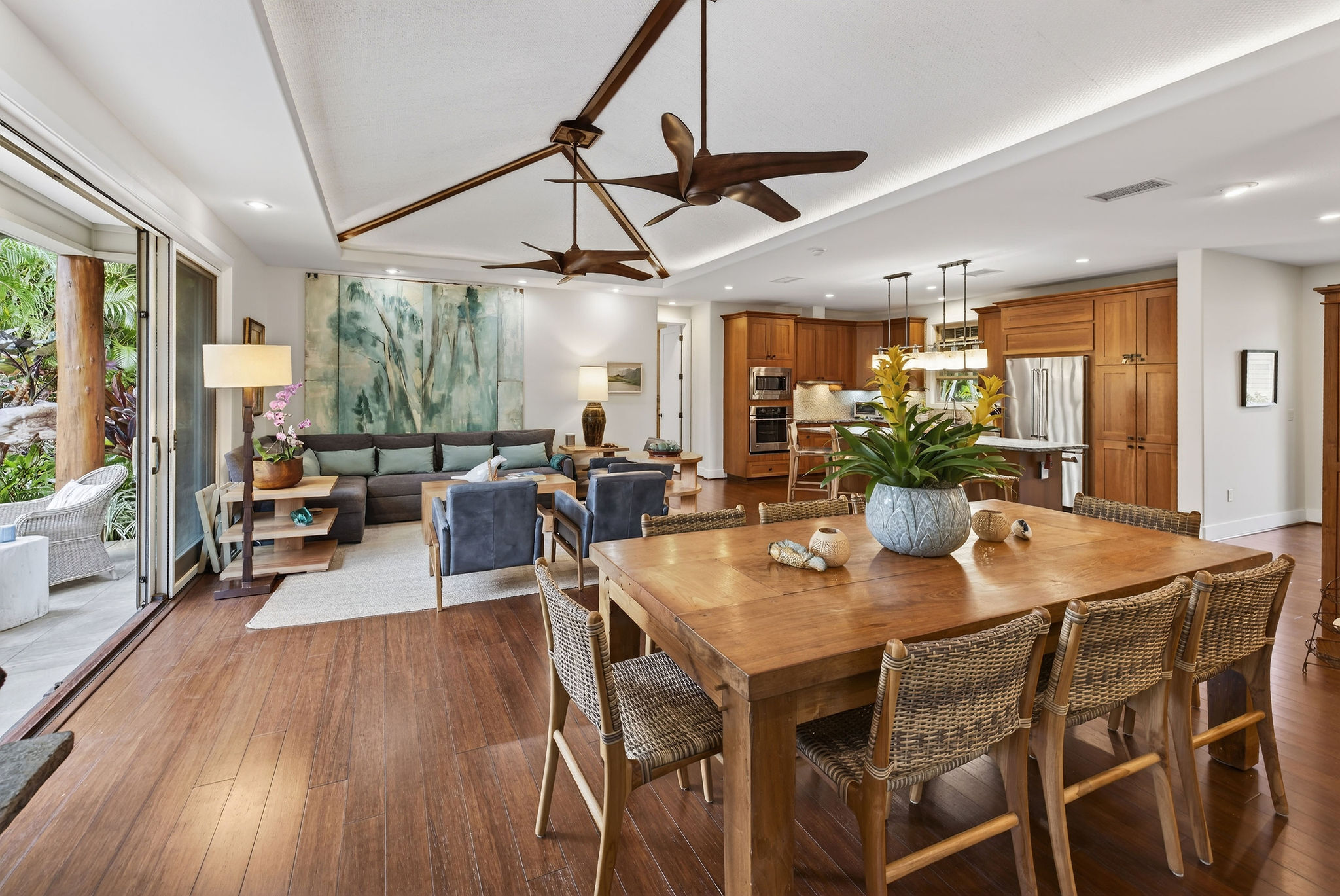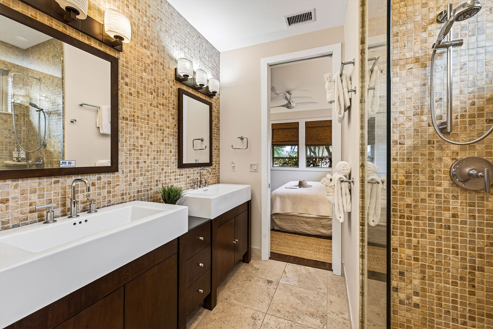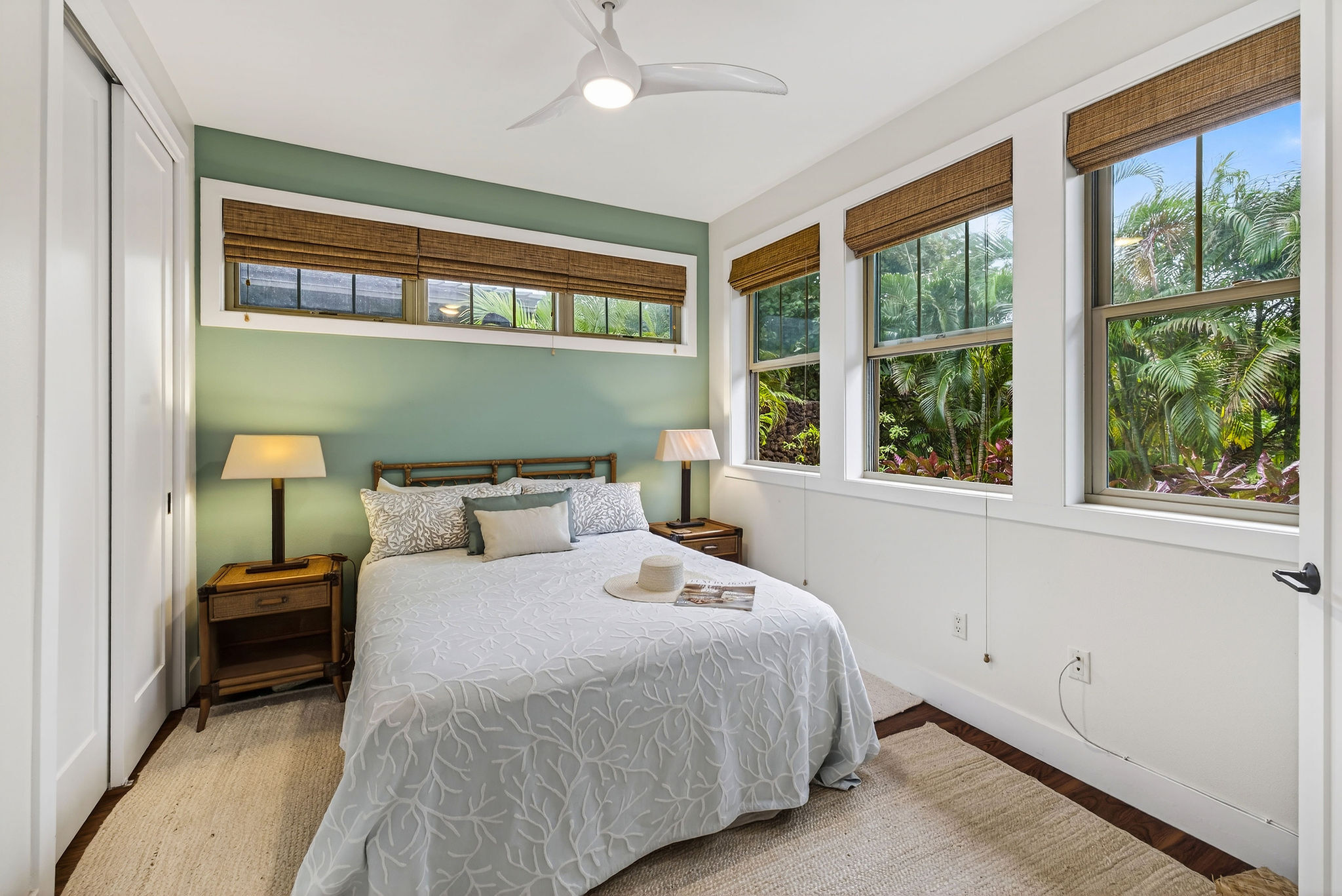 Welcome to KaMilo Cottage 404, a rare detached, single-level residence offering the privacy and comfort of a single-family home with the ease of low-maintenance condo living. Beautifully furnished and move-in ready, this highly desirable 3-bedroom, 3-bath home is one of only six Keanu A floorplans ever built in the KaMilo community and is rarely available. Thoughtfully designed for privacy and comfort, the home features two primary suites, each with spa-inspired bathrooms, double vanities, and floor-to-ceiling tile. The primary bath showcases a spa-style wet room with a freestanding soaking tub and walk-in shower. The open-concept great room is enhanced by beautiful wood flooring throughout, 9-foot ceilings, and a signature grass-cloth ceiling treatment, creating a refined island aesthetic. The contemporary kitchen is ideal for entertaining, featuring granite countertops, a large center island, and stainless steel appliances. Large sliding doors open to a private lanai surrounded by lush tropical landscaping, seamlessly blending indoor and outdoor living–perfect for morning coffee or evening gatherings under the stars. Additional highlights include acacia cabinetry, custom tile work, a leased photovoltaic system, a one-car garage, and extra storage for beach gear. Currently operating as an active vacation rental, this versatile residence is equally well suited as a primary home, second home, or investment property, offering exceptional flexibility within one of Mauna Lani’s most desirable communities. KaMilo’s 2-acre amenity center, just steps away, features a resort-style family pool, adult lap pool, 2 spas, fitness center, and gathering hale. Ownership also includes access to the Mauna Lani Owners Beach Club, with nearby beaches, golf, dining, shopping, and resort amenities. Rarely available and impeccably maintained, this turnkey residence presents a unique opportunity in one of Mauna Lani’s most sought-after communities