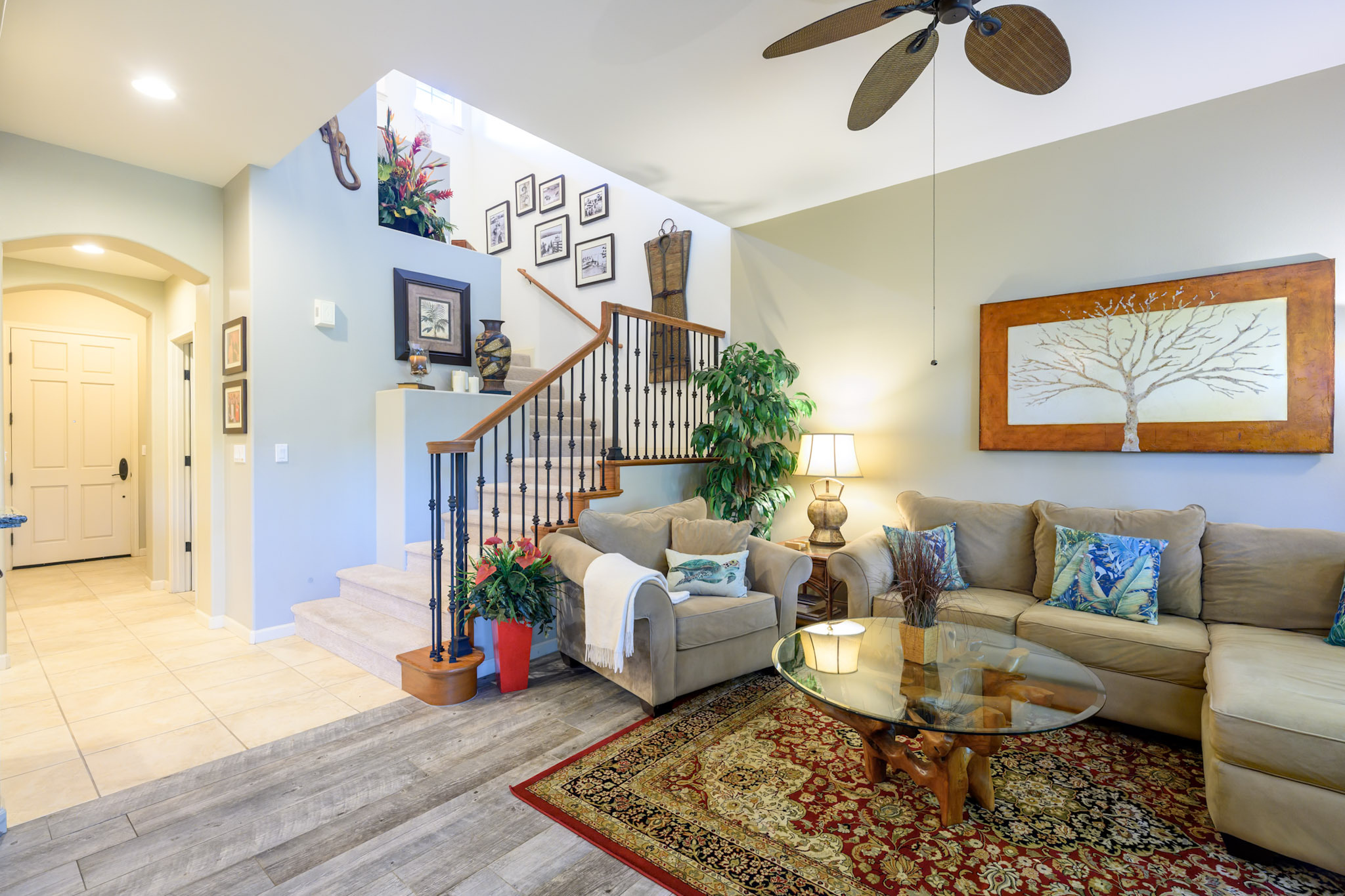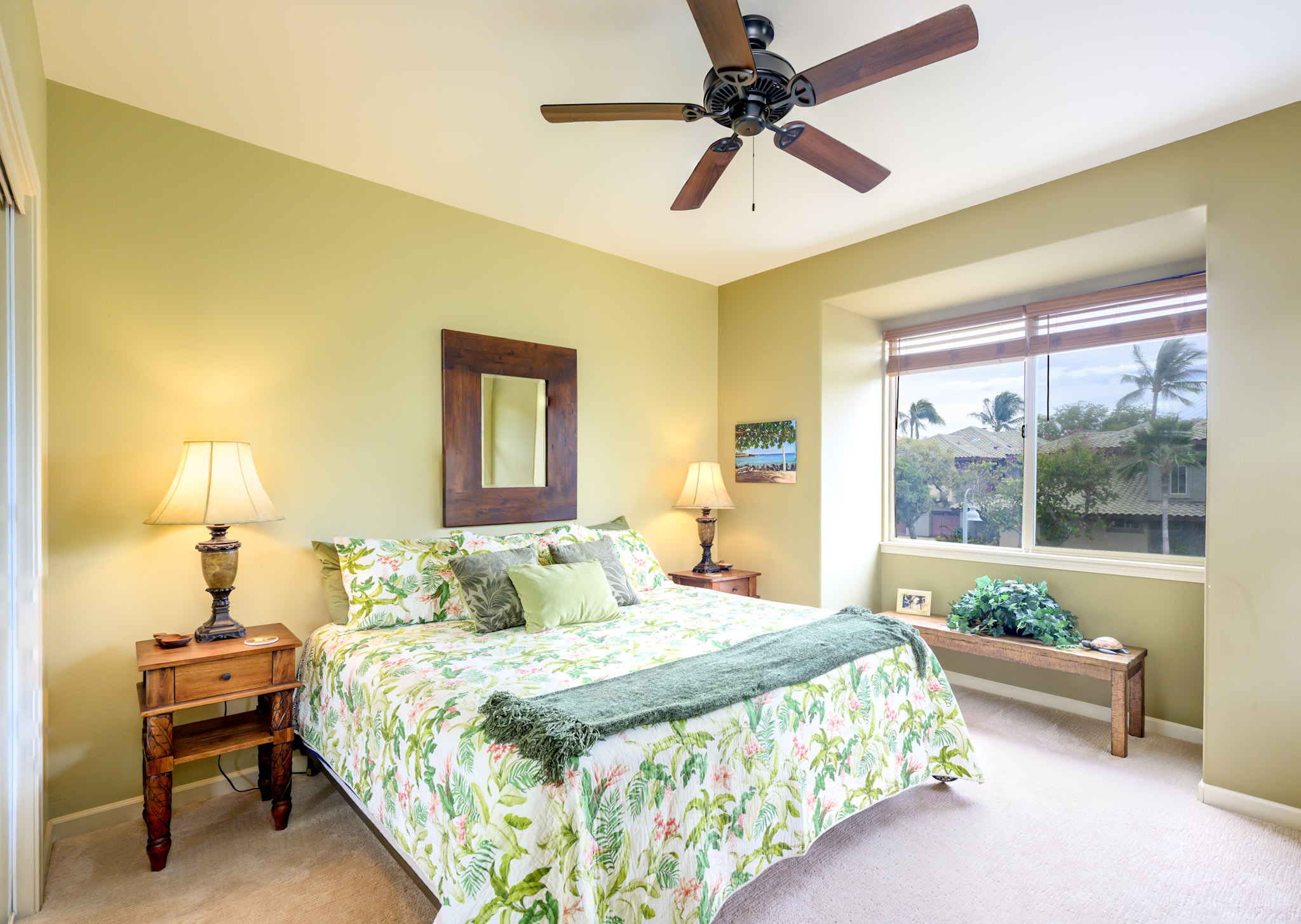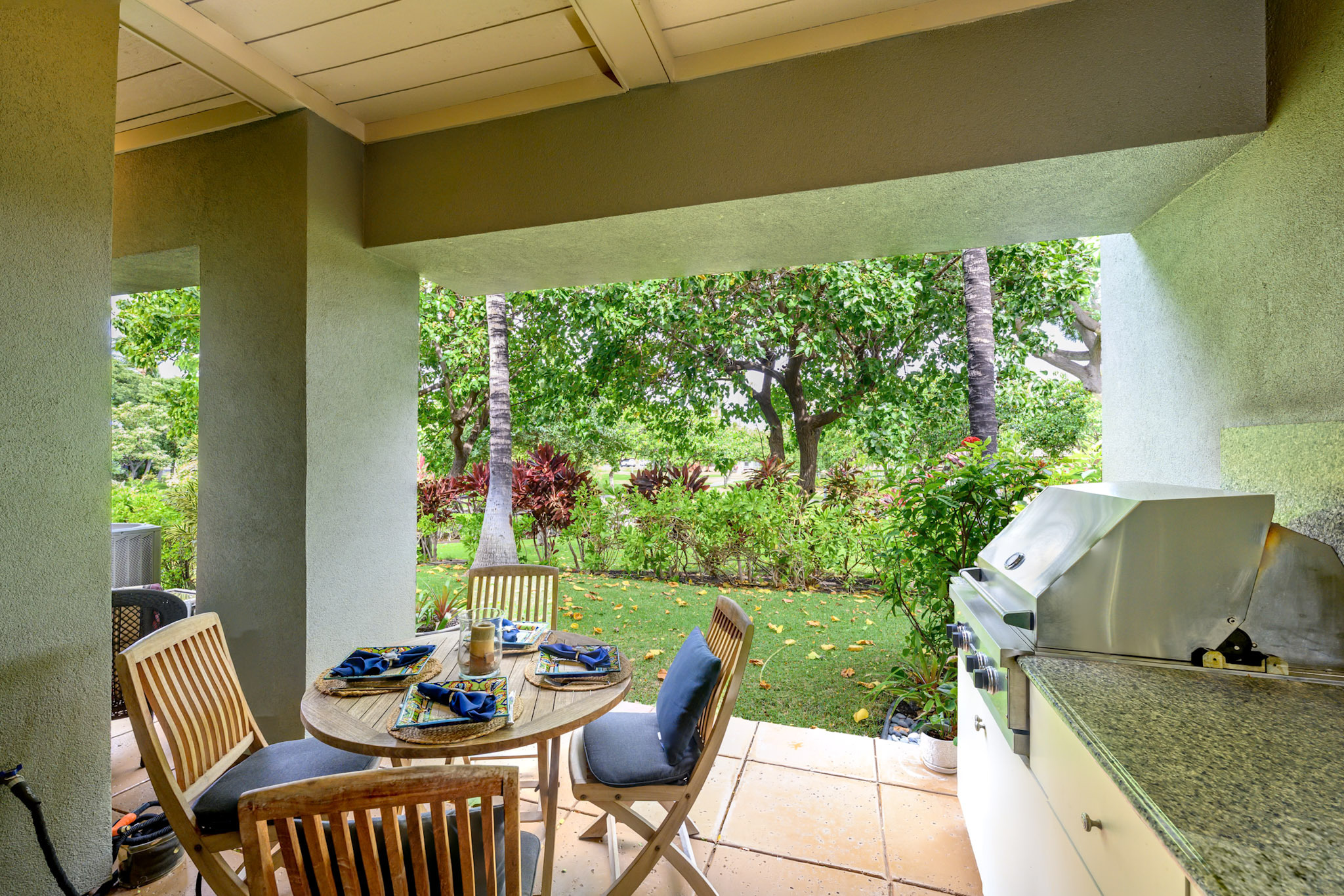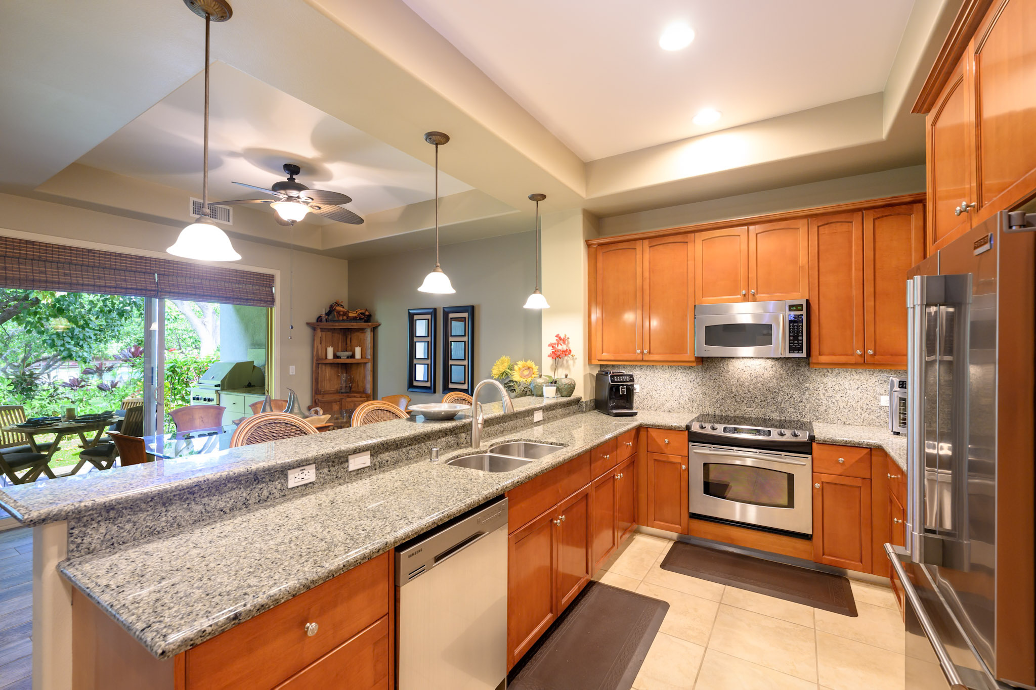Welcome to your beautiful new home at the Mauna Lani Resort! Fairways at Mauna Lani unit 1603 is exquisitely decorated and wonderfully equipped. The theme of this townhome is quiet relaxation. This unit has never been rented, and has been used for less than six months per year over the past 18 years. This 1,646 square foot, two bedroom 2 1/2 bath townhouse has shaded garden views near amid the trees of the park-like Fairways concourse. The pool and clubhouse are a short walk away. Enjoy your coffee while listening to the morning calls of the birds in this park-like setting. The main level features a large living room with dining room and a state-of-the-art chef’s kitchen with stainless steel appliances and granite countertops. Outdoors are a gas grill and lanai with separate eating and relaxing areas. There is a main floor powder room. Upstairs is the primary suite with a spacious king bedroom, an adjoining annex area ideal for a den or library, an ensuite bathroom retreat and a private lanai. The second bedroom comfortably fits a king bed and has its own bathroom. The unit comes completely furnished, including artwork. There are tastefully framed Hawaiiana prints, plus original artwork. The custom mango dining table and coffee table are must-see artisan works. Features and recent updates include: Fully tiled living areas Luxurious new carpeting in the bedrooms and stairways New dishwasher and professional refrigerator — all stainless-steel appliances New front load washer/dryer New ceiling fans A north-facing lanai that enables cooling breezes and avoids the afternoon sun, reducing the need for air conditioning All artwork, furniture, linens and kitchen provisions are included Fairways units include an attached garage for your vehicle and sports gear, guest parking and a great pool and fitness facility. Amenities include the Mauna Lani Beach club, Napua restaurant, two championship golf courses, and tennis and fitness
