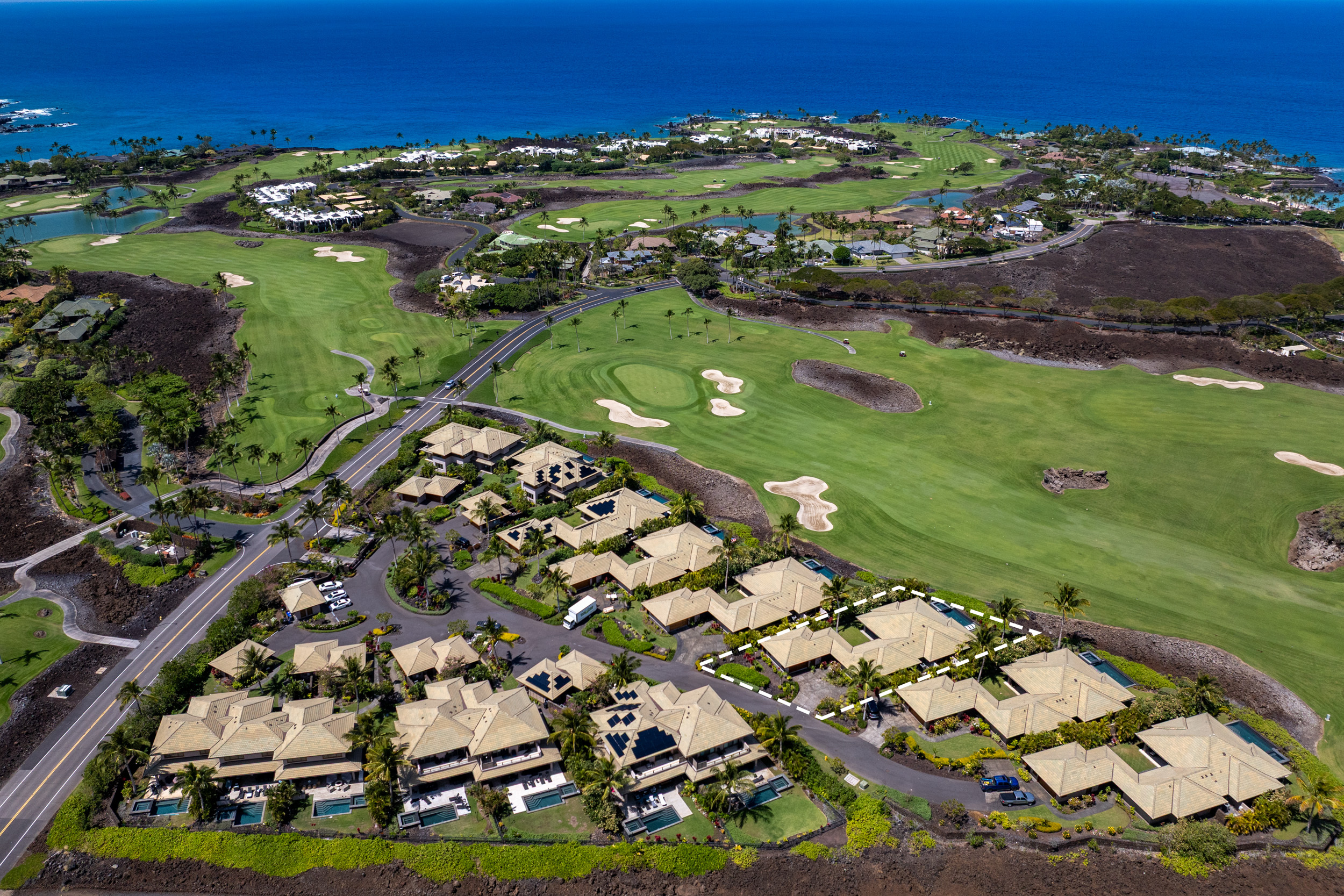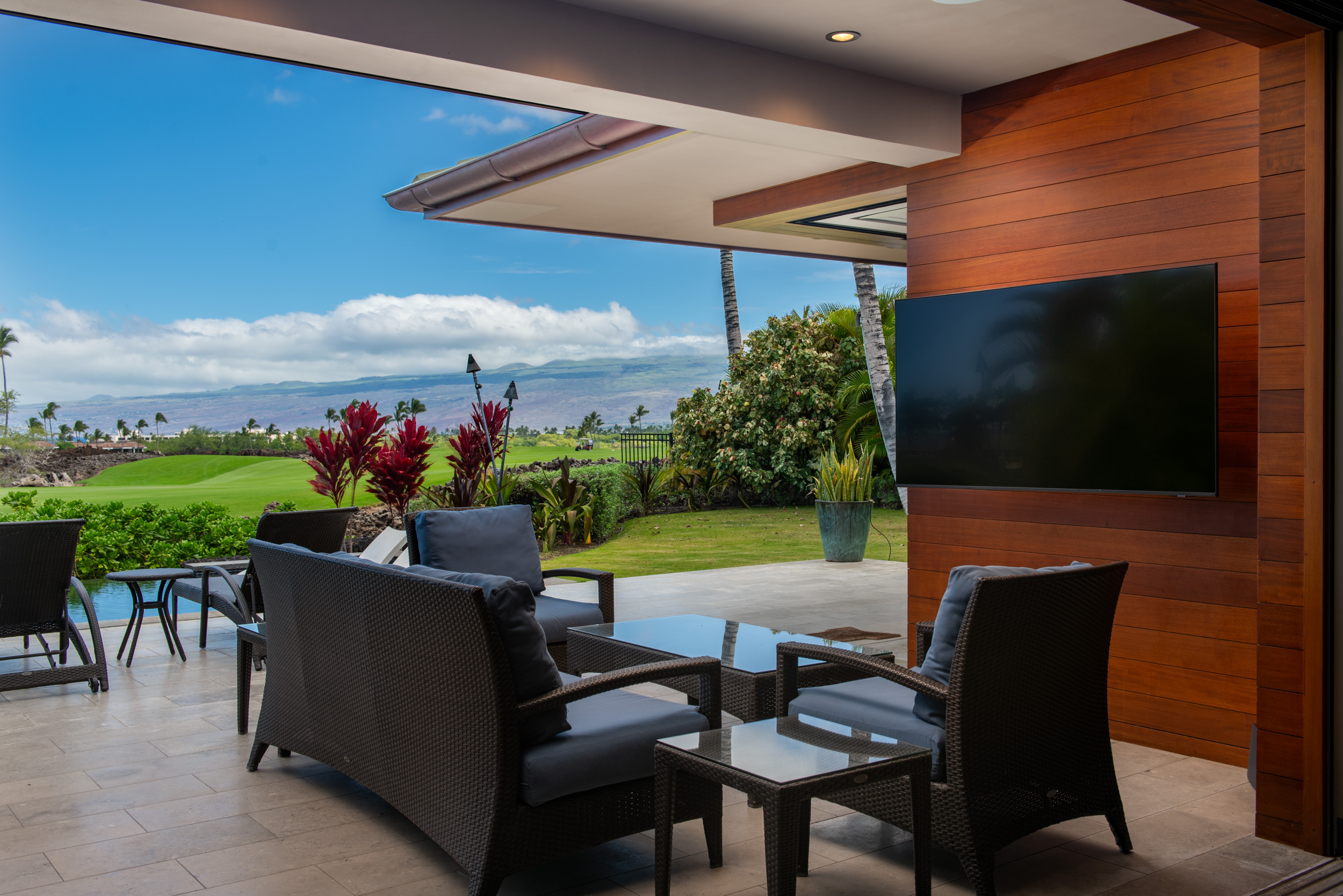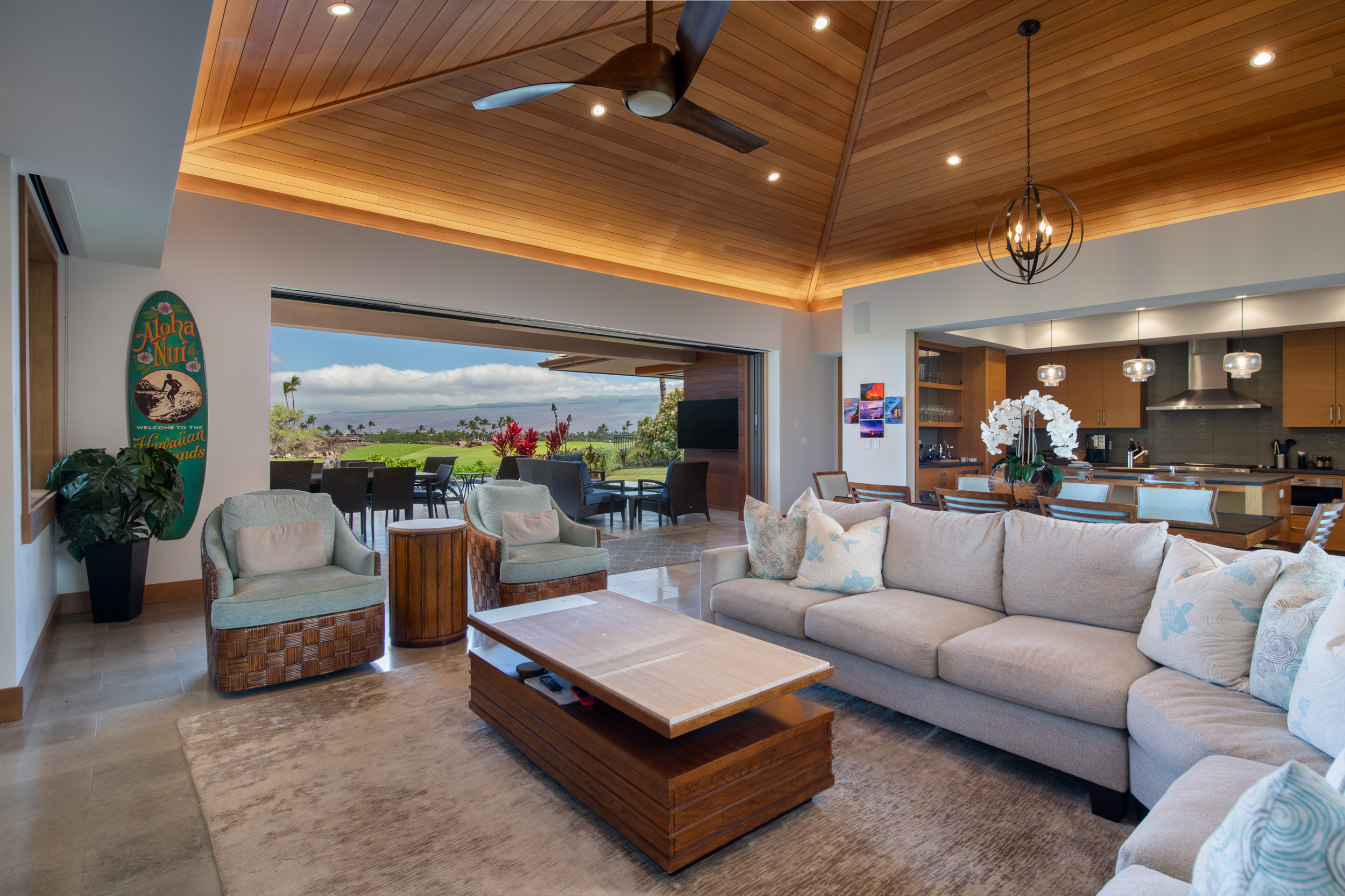 Introducing The Residences of Laule’a #8, a rare opportunity along the renowned Francis I’i Brown South Course in Mauna Lani. Hand-selected for its expansive golf course views and private orientation, this exceptional residence offers refined island living in one of the Kohala Coast’s most desirable communities. Thoughtfully enhanced during design, the home features an expanded resort-style pool with Baja shelf, a flexible den/office with adjacent full bath for guests, and double washer/dryer hook-ups–ideal for larger households or potential short-term rental use. While not currently licensed, the property qualifies for a Short-Term Vacation Rental permit under existing zoning and CC&Rs. Designed by acclaimed architect Wayne Morimoto of Kahiau Design, this single-level floor plan lives like a private home with no shared walls and seamless indoor-outdoor flow. A gated backyard enhances privacy while framing picturesque fairway views. Vaulted tongue-and-groove ceilings, hand-scraped European white oak floors, and refined stone tile create a modern yet distinctly Hawaiian aesthetic. The main home offers four spacious en-suite bedrooms, plus a detached ‘ohana suite–perfect for hosting family and friends. The chef’s kitchen is beautifully appointed with paneled Sub-Zero and Wolf appliances and custom cabinetry. Spa-inspired baths with on-demand hot water, including an outdoor shower off the primary suite, provide a tranquil retreat. Pocketing glass doors invite in trade-winds and stunning sunset views. An extraordinary offering that embodies the very best of Kohala Coast living.