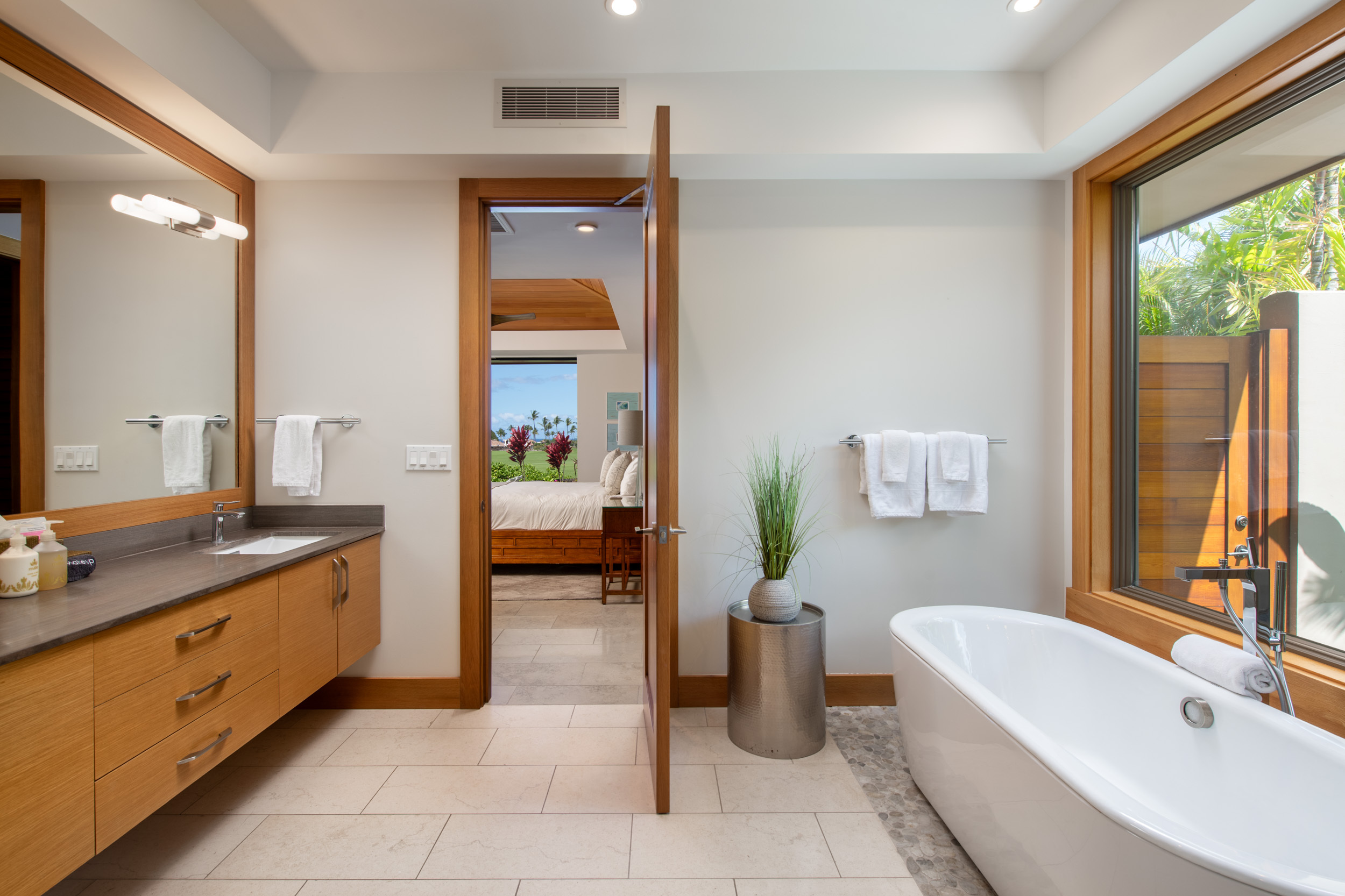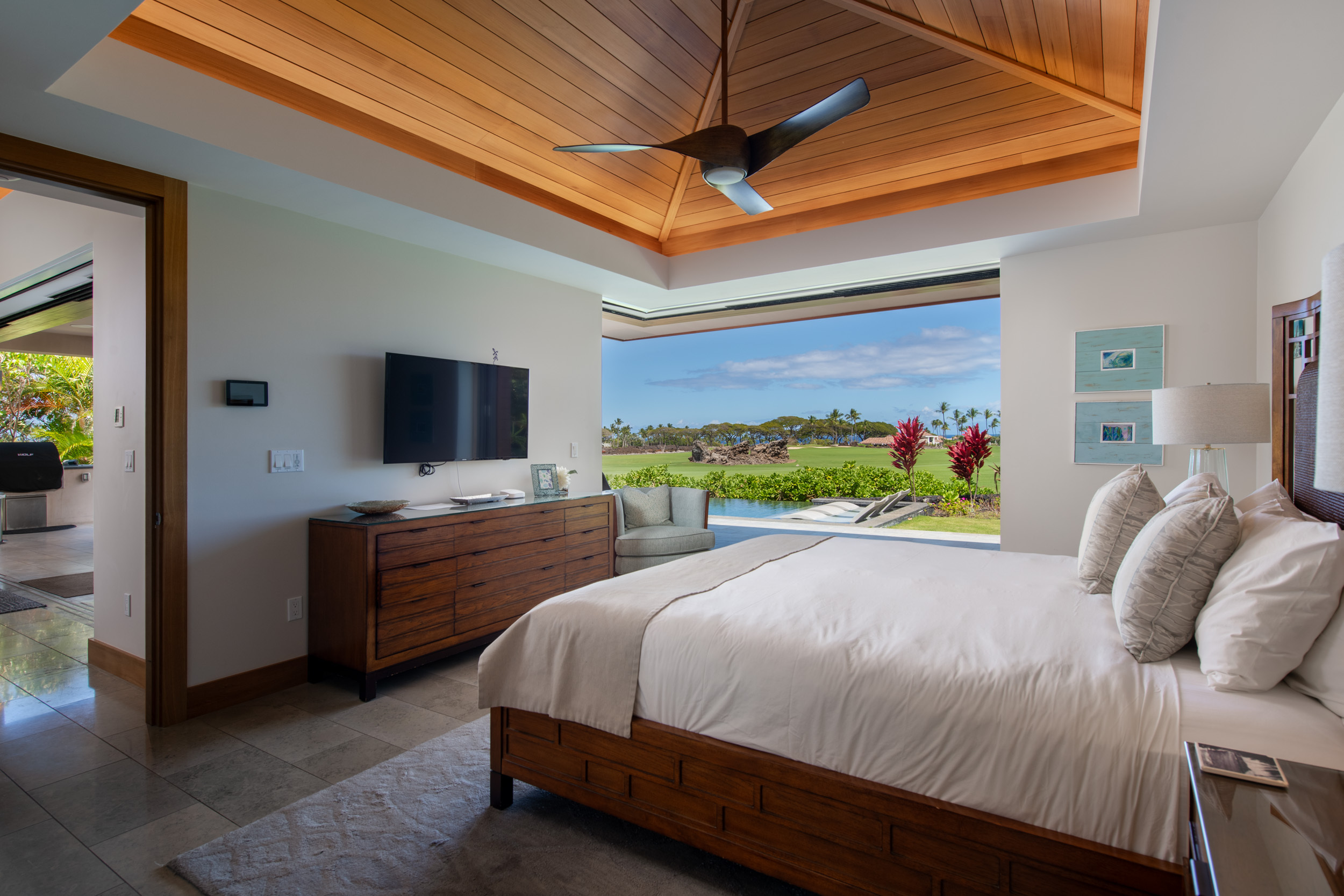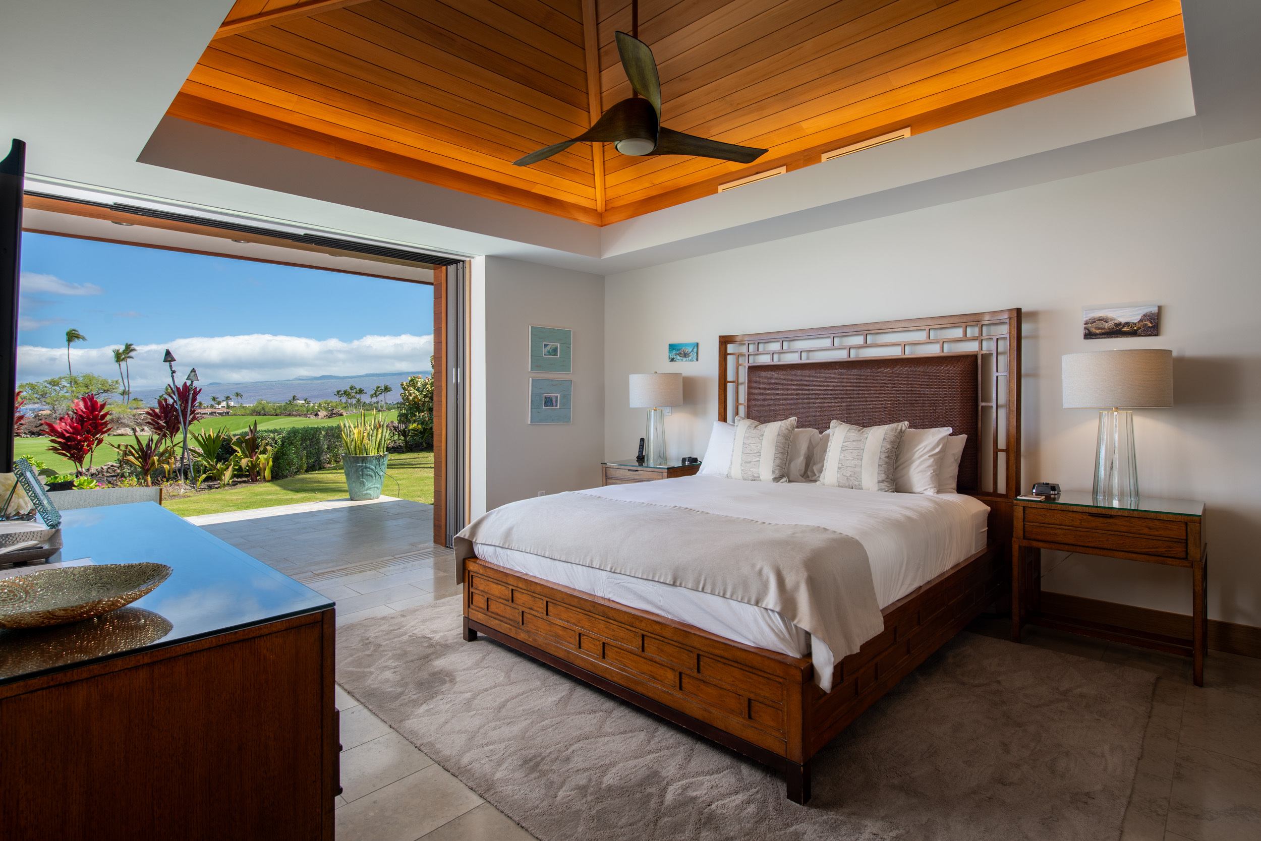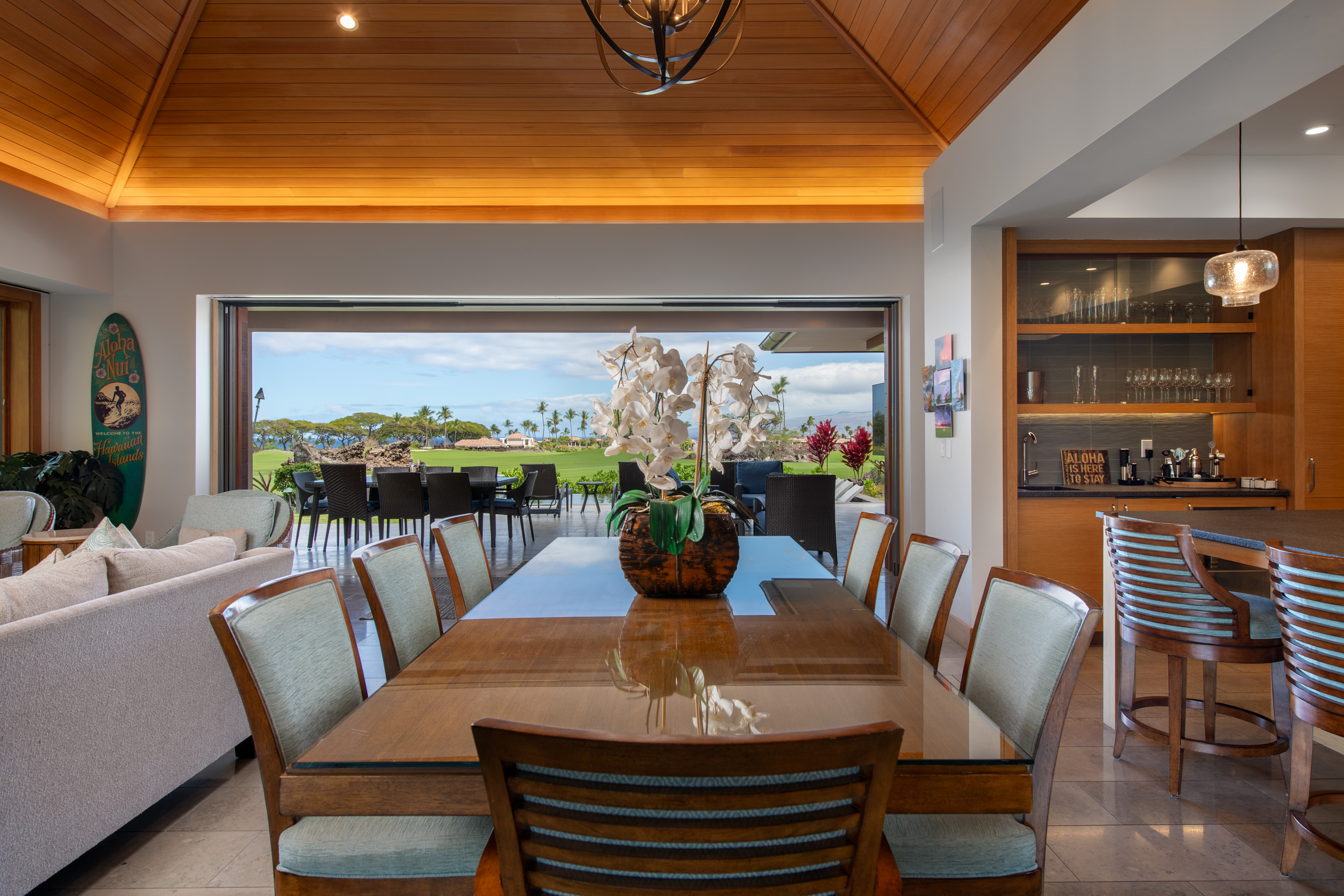 Introducing The Residences of Laule’a #8, a rare opportunity along the renowned Francis I’i Brown South Course in Mauna Lani. Hand-selected for its expansive golf course views and private orientation, this exceptional residence offers refined island living in one of the Kohala Coast’s most desirable communities. Thoughtfully enhanced during design, the home features an expanded resort-style pool with Baja shelf, a flexible den/office with adjacent full bath for guests, and double washer/dryer hook-ups–ideal for larger households or potential short-term rental use. While not currently licensed, the property qualifies for a Short-Term Vacation Rental permit under existing zoning and CC&Rs. Designed by acclaimed architect Wayne Morimoto of Kahiau Design, this single-level floor plan lives like a private home with no shared walls and seamless indoor-outdoor flow. A gated backyard enhances privacy while framing picturesque fairway views. Vaulted tongue-and-groove ceilings, hand-scraped European white oak floors, and refined stone tile create a modern yet distinctly Hawaiian aesthetic. The main home offers four spacious en-suite bedrooms, plus a detached ‘ohana suite–perfect for hosting family and friends. The chef’s kitchen is beautifully appointed with paneled Sub-Zero and Wolf appliances and custom cabinetry. Spa-inspired baths with on-demand hot water, including an outdoor shower off the primary suite, provide a tranquil retreat. Pocketing glass doors invite in trade-winds and stunning sunset views. An extraordinary offering that embodies the very best of Kohala Coast living.