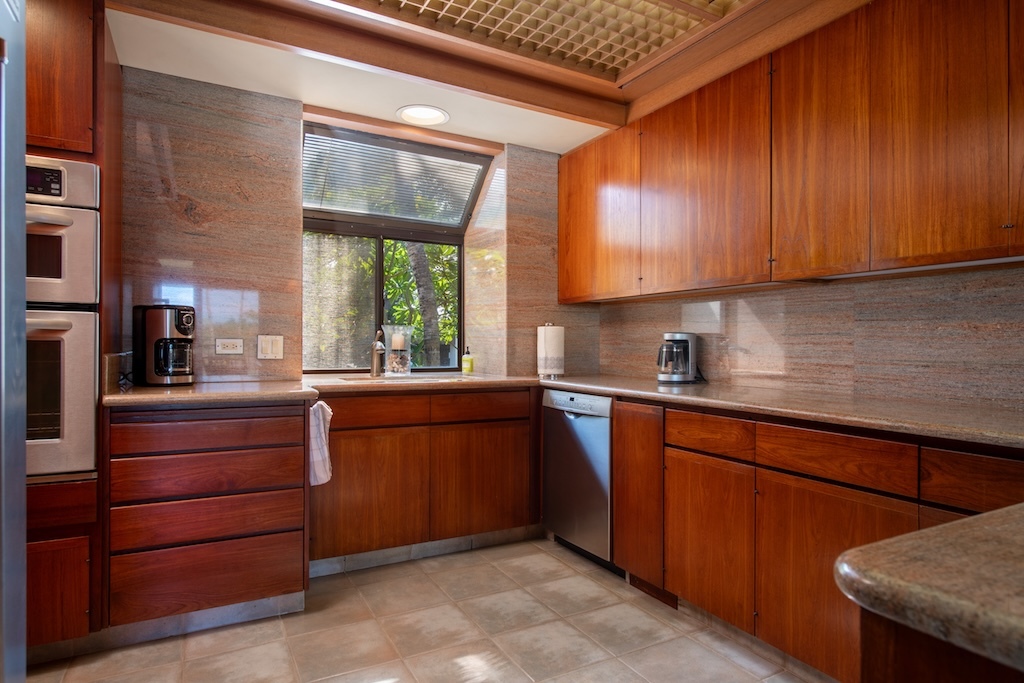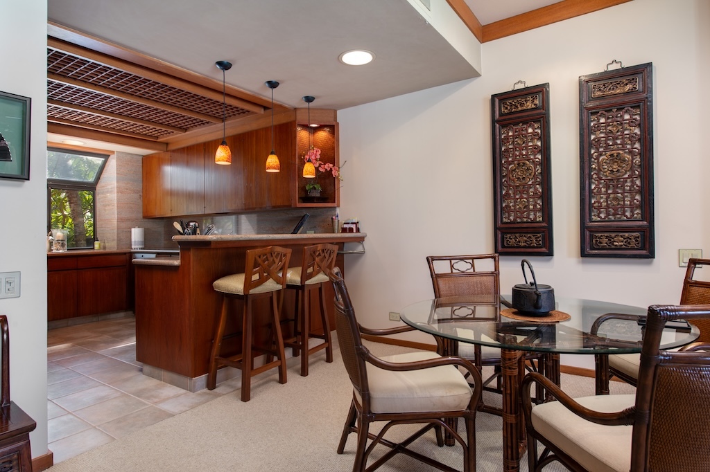 With 9’3” ceilings, solid mahogany shutters, and timeless Hawaiian architectural details, the villa captures tranquil views across the ancient Hawaiian fishponds to the Pacific Ocean and the island of Maui. The north-facing lanai offers comfortable, shaded outdoor living year-round, naturally cooled by ocean breezes. The property is sold fully furnished, including art and curated artifacts, providing a seamless, turn-key move-in opportunity.