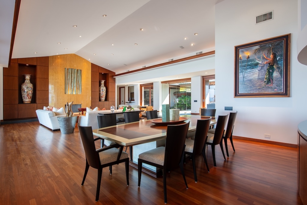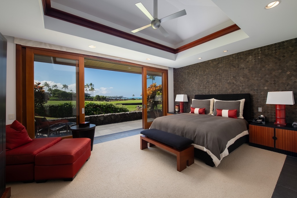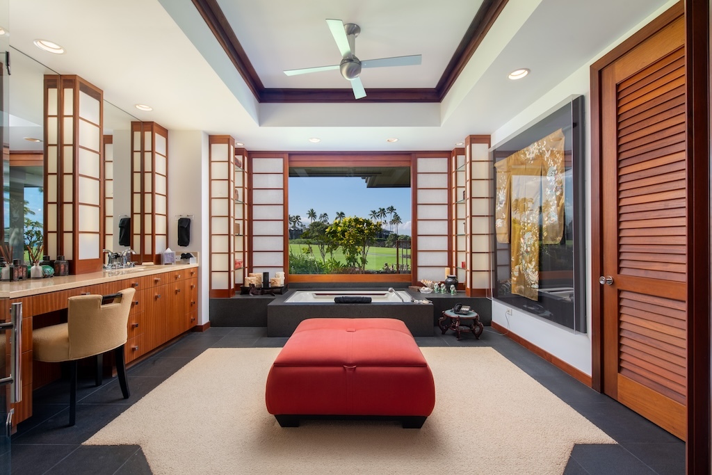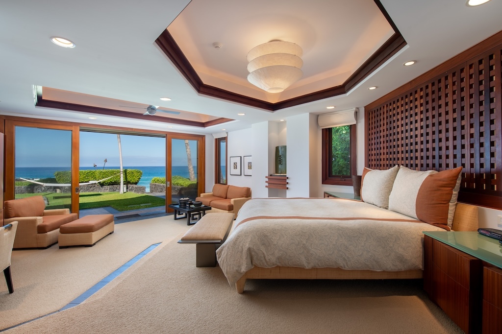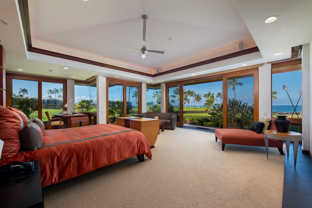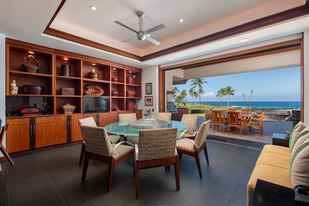 Gracefully positioned in one of the most coveted communities on the Kohala Coast of the Big lsland of Hawaii, this oceanfront 7,844 -square-foot residence on 1.38 acres at the Cape at Mauna Lani offers five bedrooms, seven and a half baths, a spacious media room and a private office, designed by renowned Lucky Bennett to capture sweeping ocean, fairway, mountain and sunset views. A formal entry with waterfalls and ponds creates a dramatic reveal of the great room and the Pacific beyond. Inside, soaring ceilings, Brazilian cherry and flamed granite floors and architectural symmetry define the expansive living space. A striking fireplace wall framed by custom wood paneling and curated niches anchors the room, while disappearing pocket doors open completely to the oceanfront lanai, infinity-edge pools and spa that appear to merge seamlessly with the ocean. The warm chef inspired kitchen features rich, custom cabinetry, generous workspace and a seamless connection to the dining area, outdoor gathering area and ocean beyond. The primary suite is situated on the south corner in a private wing with fairway and ocean frontage and his and her spa-inspired baths. Guest bedroom suites are thoughtfully separated for privacy. The dedicated media room, overlooking the ponds and waterfalls provides an immersive retreat for film and entertainment, while the private office offers a quiet, light-filled workspace with inspiring coastal vistas. Manicured lawns, charming sculptures, lava rock walls, and curated tropical landscaping frame the infinity pool and spa. The property has rare dual frontage–dramatic ocean cliffs and emerald fairways on the other. This is a legacy residence, an architectural statement, dramatic and timeless.