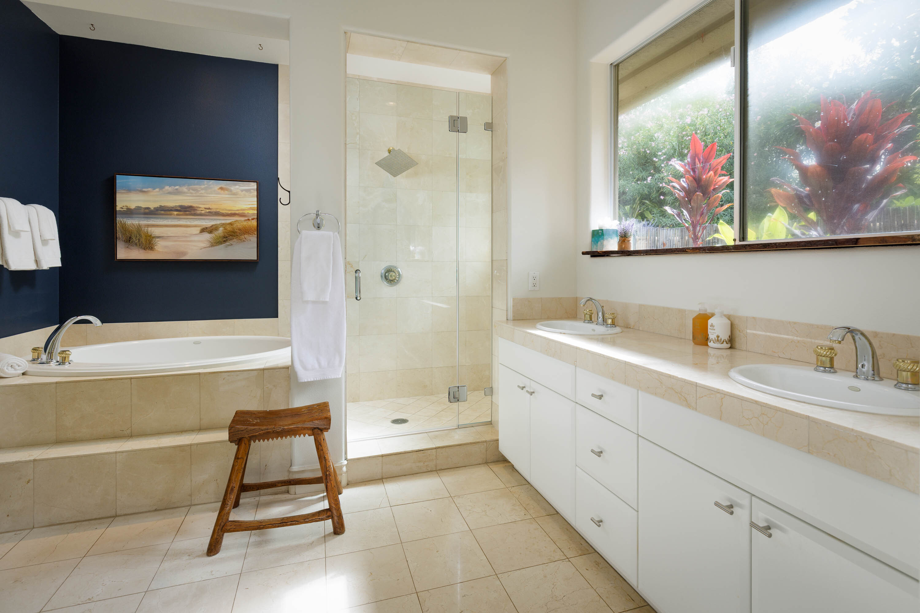 The owners put their own touch on this home creating a beautiful sense of peace both inside and out. Tucked into a beautifully landscaped tropical oasis, this single-level Hawaii retreat blends relaxed island living with refined comfort. Surrounded by mature, pleasing landscaping with a touch of blue horizon ocean view and mountain backdrop, the home offers exceptional privacy while embracing the natural beauty of its setting.