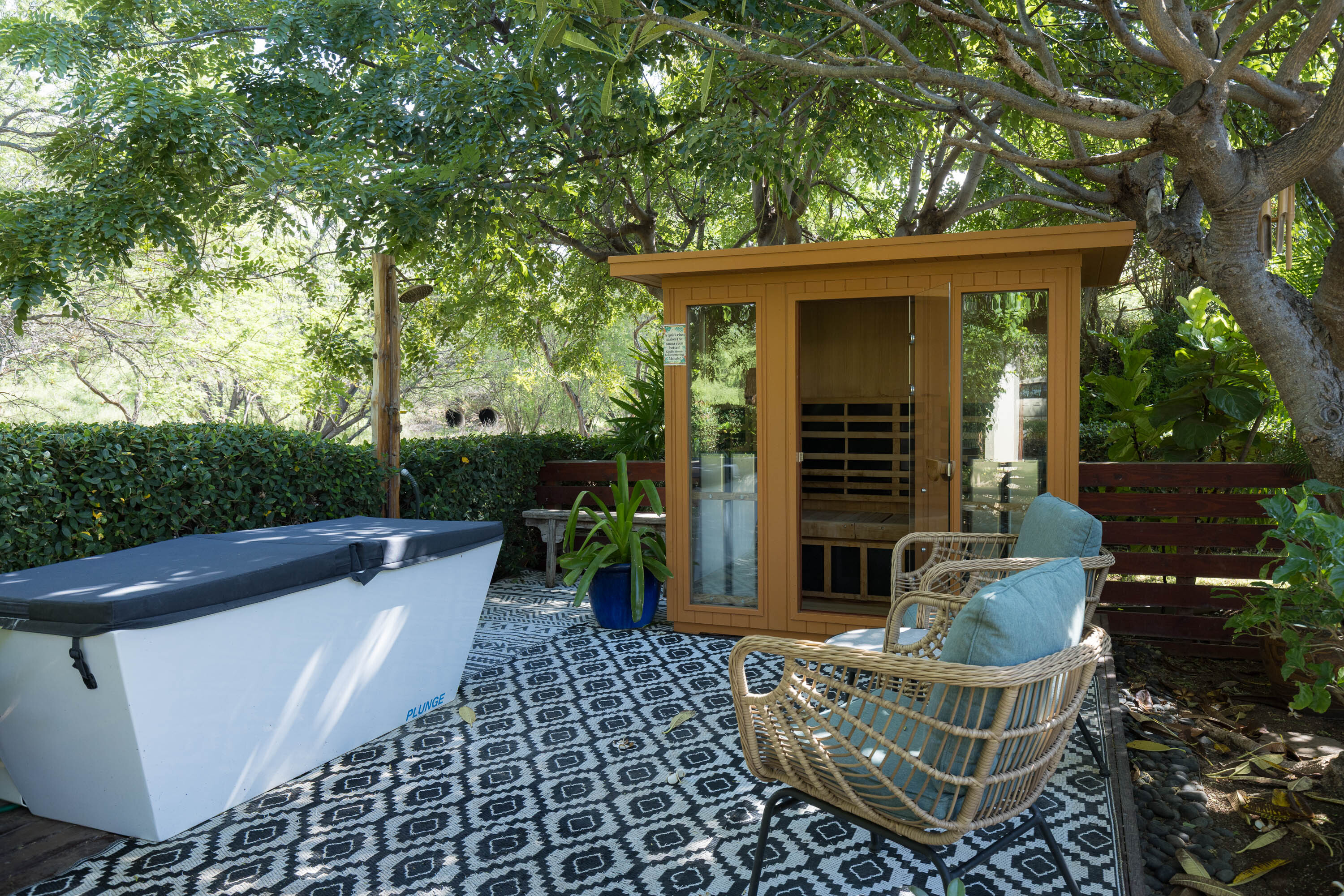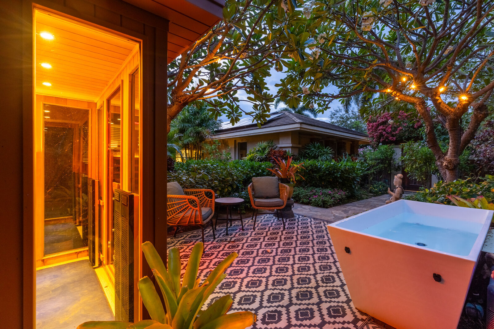 The expansive outdoor area is truly the heart of the home. A spacious lanai for Hawaiian style outdoor dining and relaxing looks out to a lush, beautifully crafted yard & pool area. Multiple lounging areas, are ideal for enjoying the views and privacy or entertaining guests in style. The family garden is fenced off and leads to a grassy dog run , a very pet friendly home! Improvements continue with an upgraded pool and spa, irrigation, sauna and and cold plunge tub & outdoor showers.