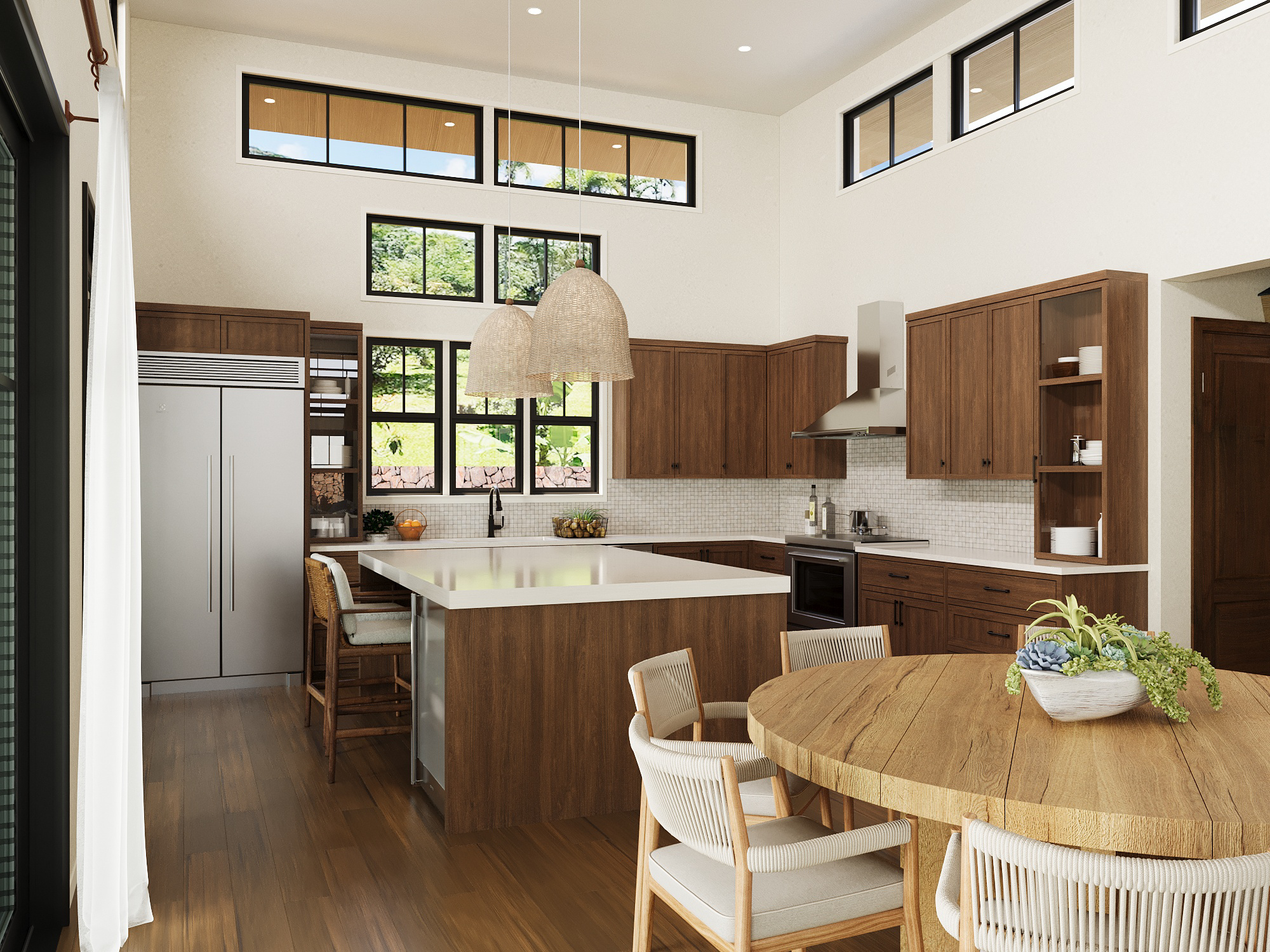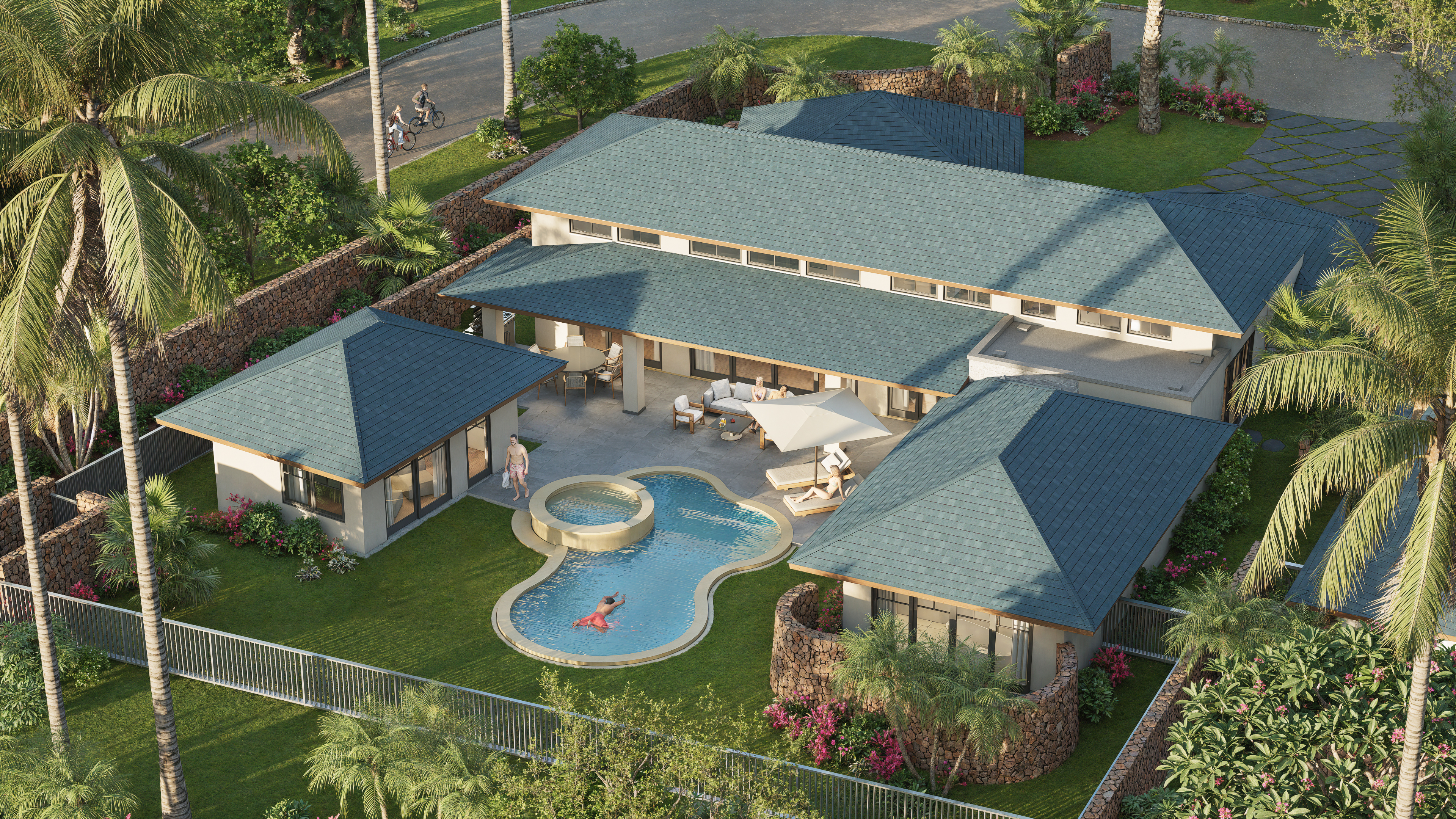 This beautifully designed 4-bedroom, 3-bath resort residence is scheduled for completion in Spring 2026 and offers an exceptional blend of luxury, privacy, and island living. The home features a private swimming pool with a waterfall-edge spa, creating a tranquil outdoor retreat ideal for entertaining or relaxation. The main residence includes three bedrooms and an open-concept great room with a gourmet kitchen, thoughtfully appointed with premium appliances including a 48" Wolf refrigerator and freezer, Wolf 36" induction range, Cove dishwasher, Wolf wine refrigerator, Wolf under-counter beverage center, and LG Signature Series washer and dryer. A detached guest suite hale provides added privacy and flexibility for guests or extended family.