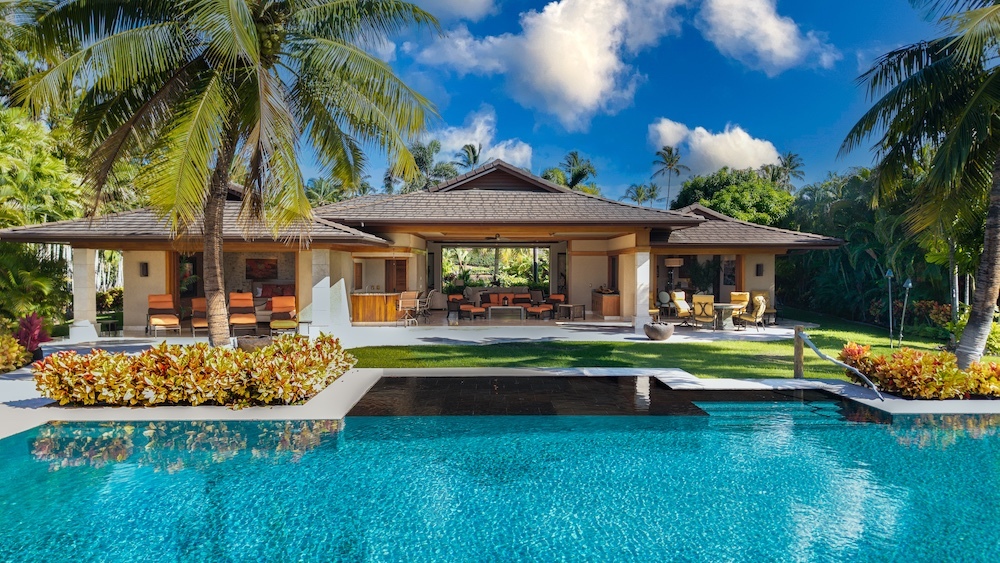 The property features extensive hardwood finishes, detached guest hales, a private office, and beautifully designed gardens. Within walking distance are five star dining, resort amenities, and white sand access to the sea. A rare opportunity to own a home that blends seclusion, craftsmanship, and effortless connection to one of Hawaii’s most exclusive coastal settings.