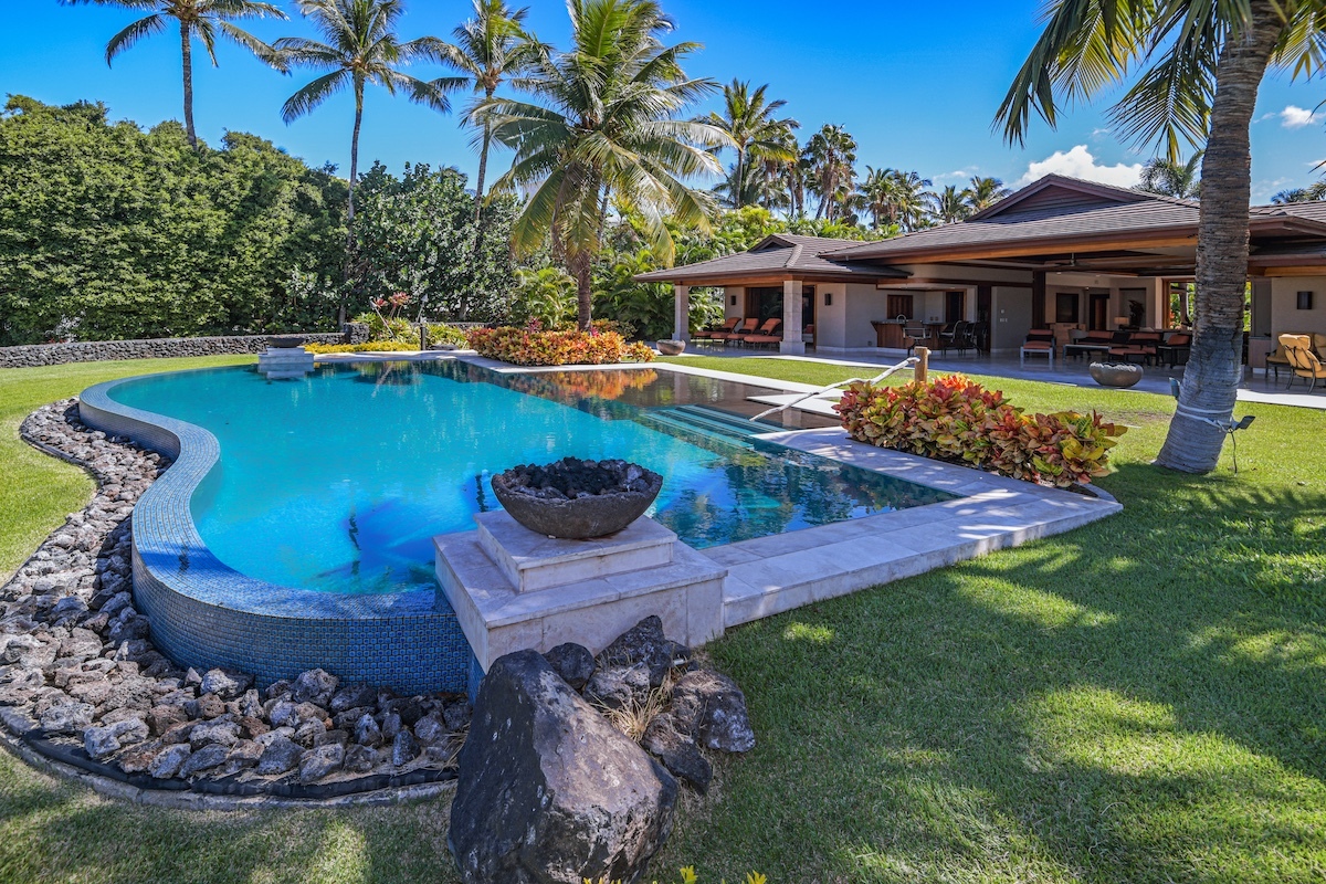 Located within the gated Pauoa Beach community at Mauna Lani, this four bedroom, four and a half bath residence combines exceptional quality with privacy and proximity to the coast. Positioned just behind the shoreline, the home enjoys open ocean views across the landscaped greens of the Pauoa Beach Club, giving it the character and feel of an oceanfront estate.