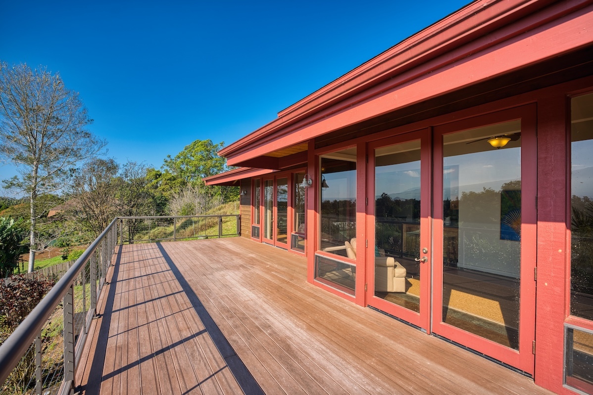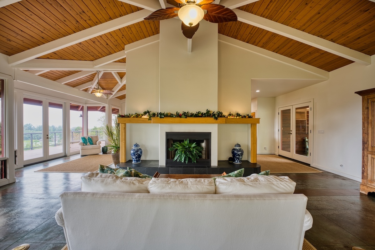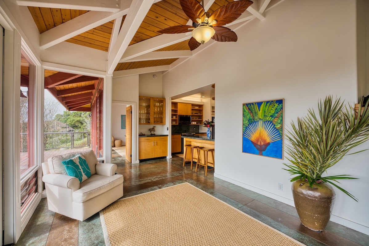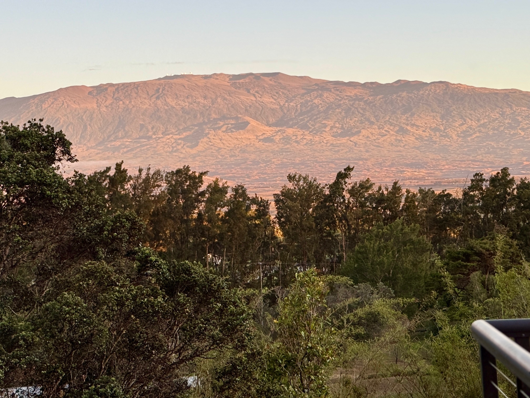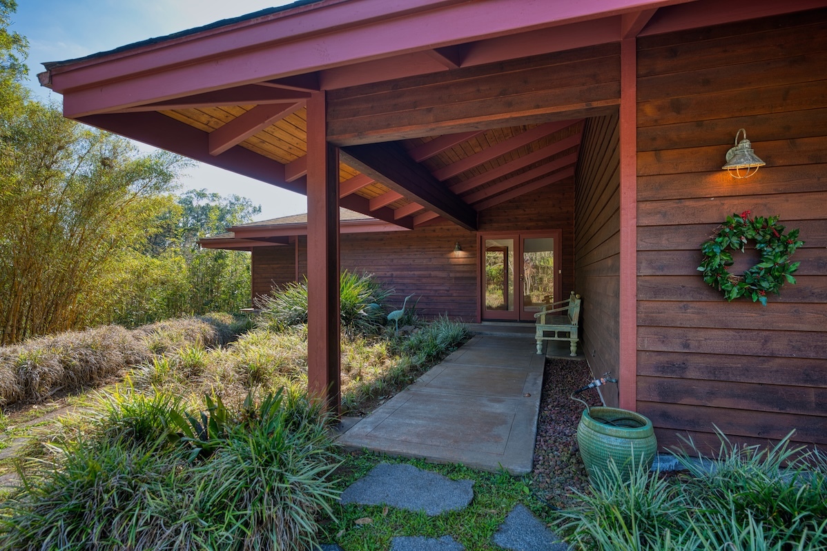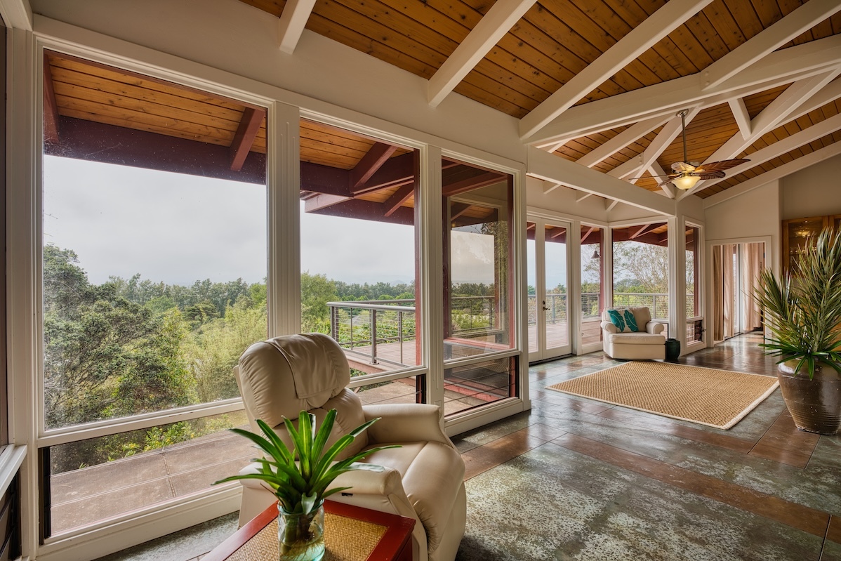 The expansive windows flawlessly merge indoor and outdoor living ensuring forever unobstructed Mauna Kea and Mauna Loa vistas, farmland and surrounding gardens.
