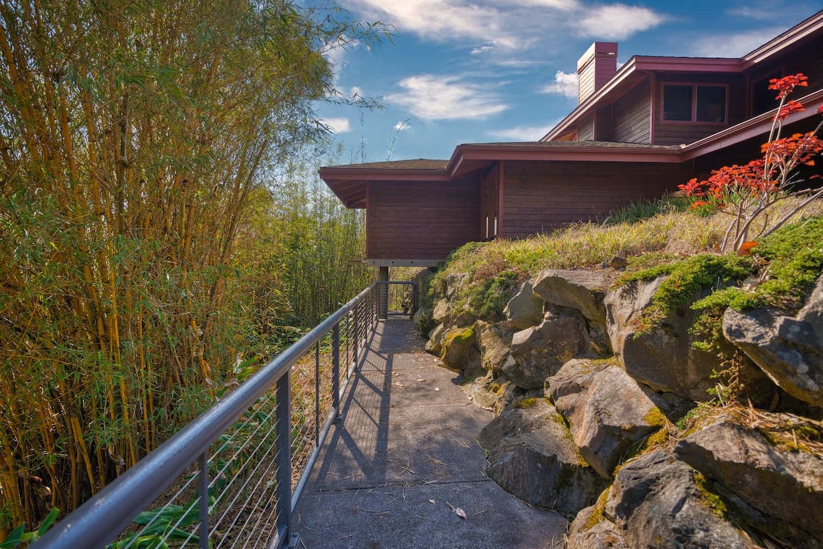 Frank Lloyd Wright-esque home — Story told the home was developed as a tribute to “falling waters” with cantilevered construction above the seasonal stream.