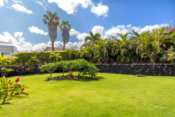 This home sits on a larger beautifully landscaped lot with mature tropical plants and fruit trees producing lime, avocado, mango, papaya, and banana, making for a tranquil very private backyard oasis complete with hot tub.