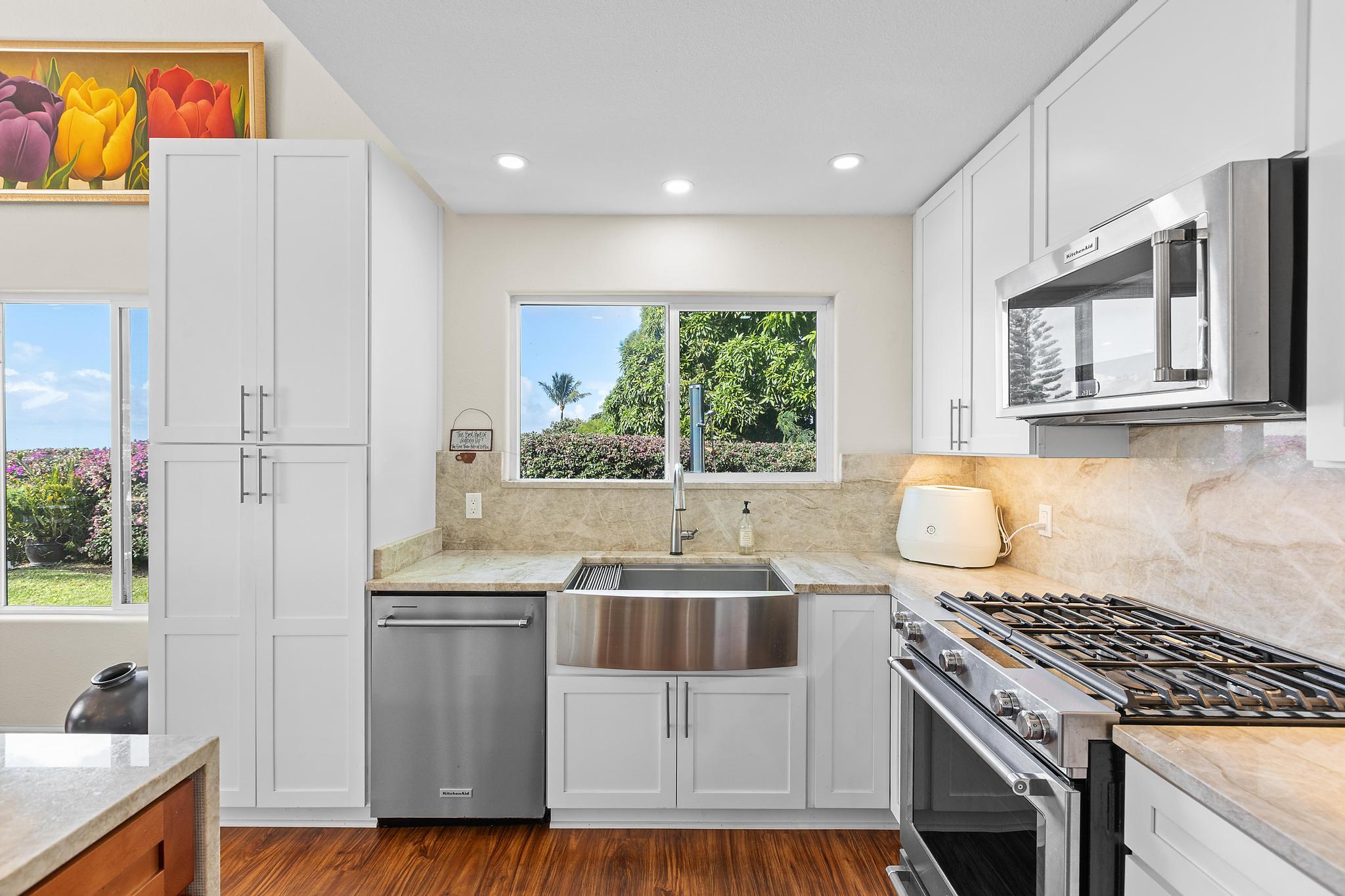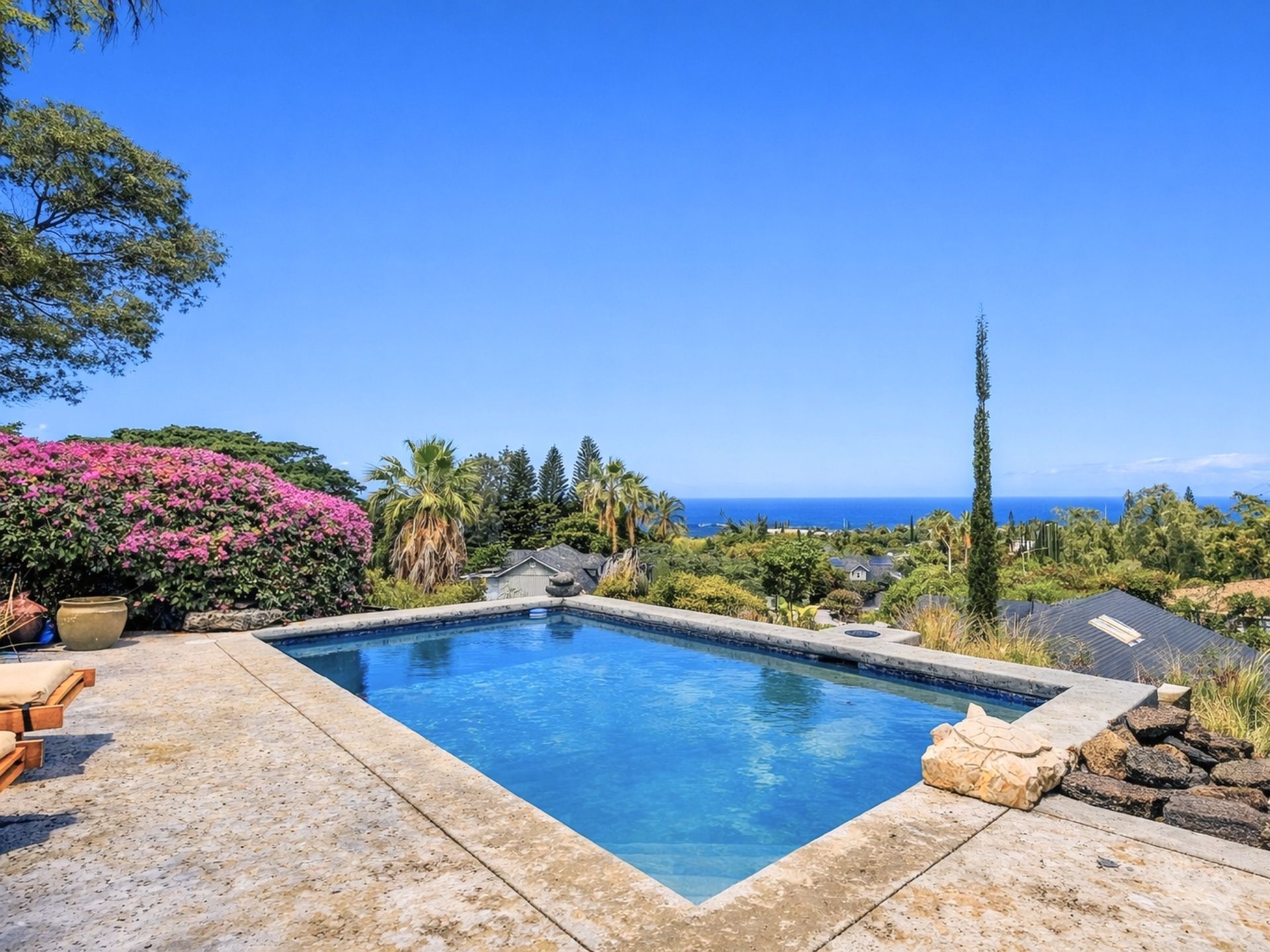 Welcome to your private escape in Waikoloa Village. Thoughtfully designed throughout, this single-story home features a chef’s kitchen with gas cooking, an oversized living area, upgraded bathrooms, and beautiful koa luxury vinyl plank flooring throughout. The primary bedroom is spacious enough to accommodate a California king and is highlighted by a spa-like ensuite. Two additional bedrooms down the hall have also been recently refinished. The home is further complemented by a dedicated laundry room, walk-in pantry, and a flexible bonus room well suited for an office, fitness space, or guest room. Outdoors, an oversized gazebo, mature avocado, mango, and citrus trees, and a small pool positioned to capture sunset views stretching across the Kohala Coast to Maui create the island retreat of your dreams. Central air conditioning and a water filtration system contribute to the overall comfort of the home. A 48-panel leased photovoltaic system with net metering supports energy efficiency and includes a 220-volt EV charger. Conveniently located near Waikoloa Village amenities, world-class beaches, and Kohala Coast resorts, this is a home with so much to like, you may never want to leave.