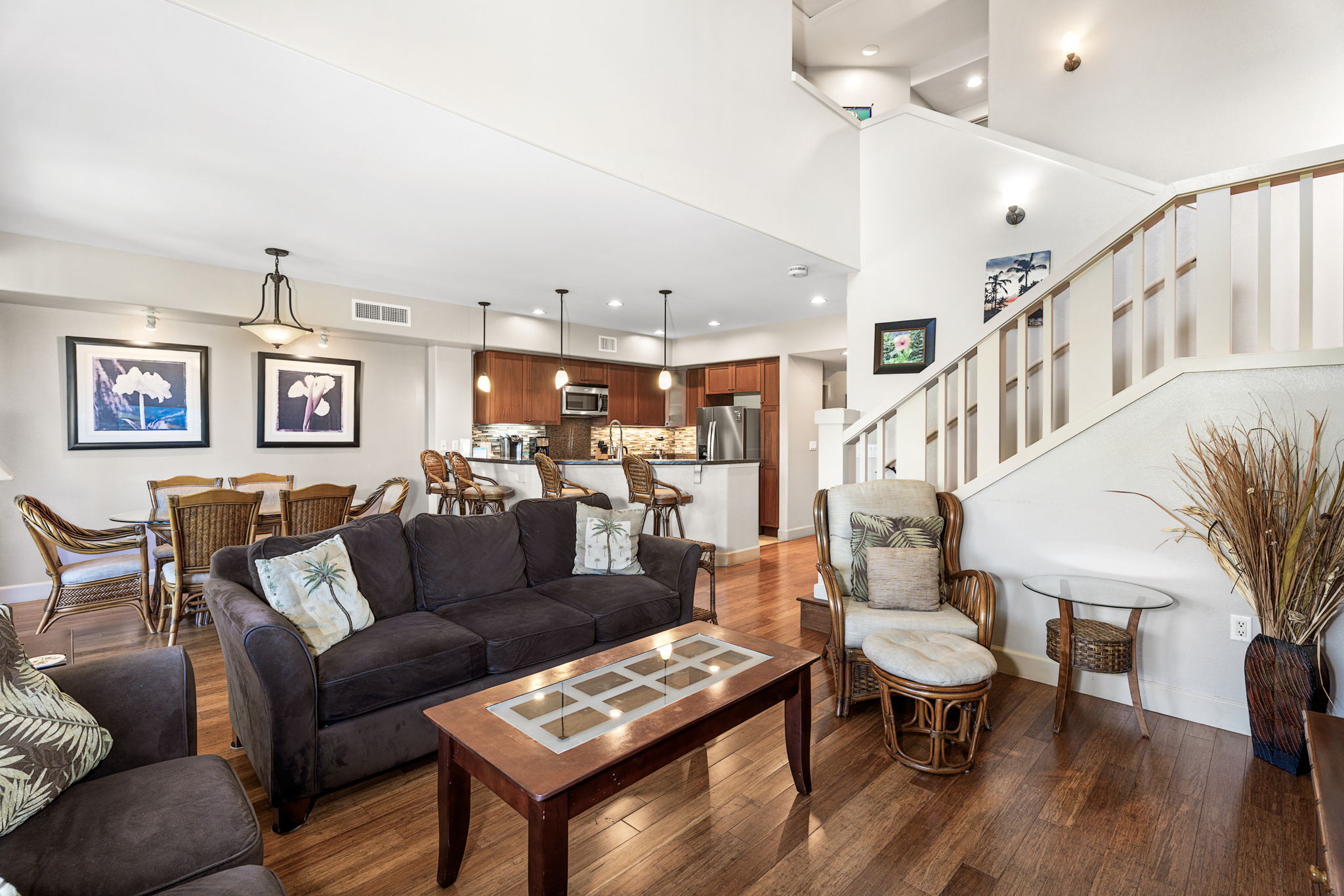Discover luxury living at its finest in this immaculate, fully furnished 3-bedroom, 3-bath villa at Hali’i Kai, located within the prestigious Waikoloa Beach Resort. As the largest floor plan available, unit 22G offers breathtaking mountain and garden views, with the majestic Mauna Kea stealing the spotlight upon entry. Perfect as a vacation rental or a private retreat. Nestled in a gated community, residents enjoy exclusive access to the oceanfront Hali’i Kai Ocean Club, with unrivaled Kohala Coast sunset views, a multi-tiered swimming pool, state-of-the-art fitness facilities, and a bar and grill. Featuring hardwood flooring, a large open kitchen with dining area, 1 bedroom downstairs, 2 bedrooms and 2 bathrooms upstairs and 2 spacious lanais plus a garage this elegant villa embodies the luxurious Hawaiian lifestyle you’ve always dreamed of. Don’t wait to make it yours!