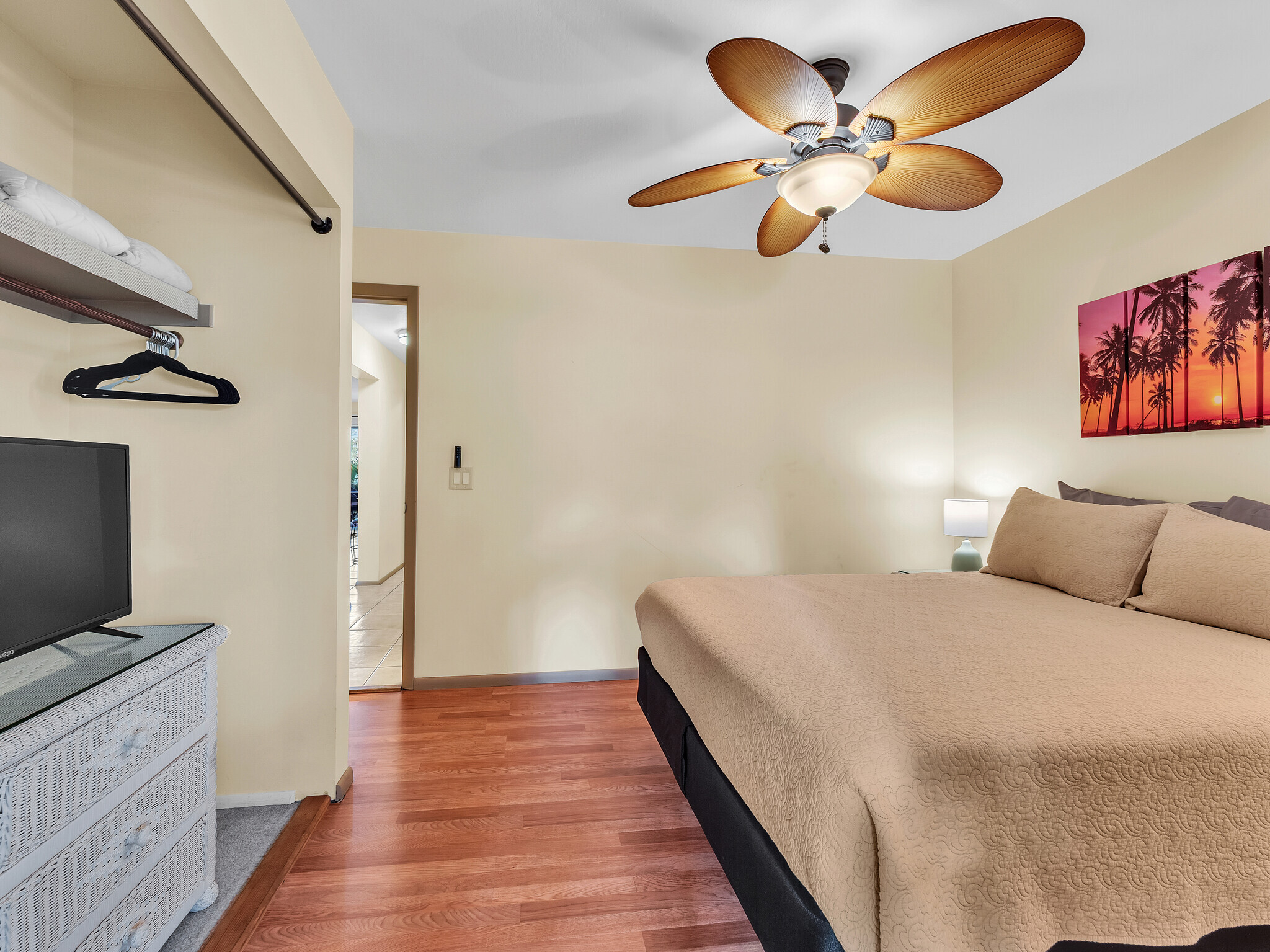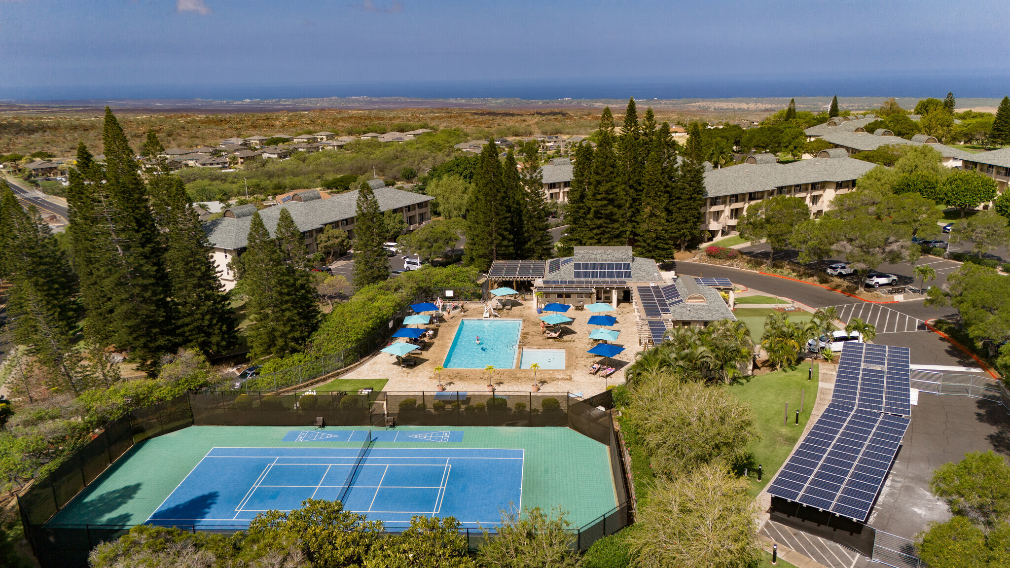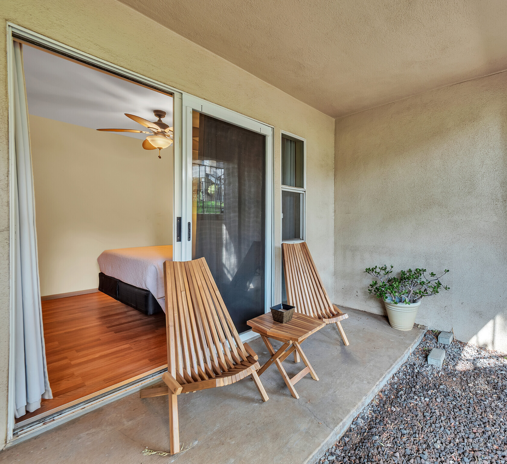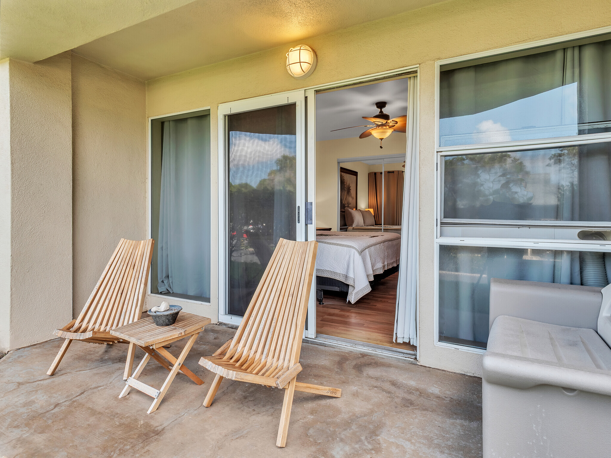 Welcome to the highly sought-after STVR-approved resort community of Paniolo Greens at Waikoloa in Waikoloa Village. Opportunities to own in this popular complex are rare, making this a great chance to secure a turnkey vacation rental in one of Waikoloa Village’s most amenity-rich communities. This spacious 2-bedroom, 2-bath ground-floor condo is being sold fully furnished, ready for immediate vacation rental income or personal island getaways. Tastefully styled with Hawaiian tropical décor, the home offers a relaxed and welcoming retreat. A standout feature is the four private lanais, creating multiple outdoor spaces to enjoy morning coffee, evening breezes, and Waikoloa’s year-round climate. Located in Building J, the unit sits directly across from the pool and amenity center, one of the most convenient locations in the complex. The primary suite includes a king bed, Smart TV, private lanai, and ensuite bathroom. The guest bedroom features a queen bed, Smart TV, also its own private lanai, with an adjacent bathroom ideal for visiting family or guests. The fully equipped kitchen with white shaker cabinets offers stainless cookware, a bar set, coffee maker, and numerous other small appliances. The condo is also stocked for island adventures with beach chairs, umbrella, cooler, boogie boards, a beach wagon, and umbrella stroller. Paniolo Greens at Waikoloa features resort-style amenities including a pool with sundeck, children’s wading pool, hot tub, fitness center, tennis and pickleball courts, billiards, foosball, and BBQ areas. Ownership also includes membership in the Waikoloa Village Association, providing access to the community pool, tennis and pickleball courts, and discounted golf at the Robert Trent Jones Jr. designed Village Course at Waikoloa. Whether you're seeking a turnkey vacation rental investment or a private island retreat, this condo offers comfort, convenience, and strong STVR potential in the heart of Waikoloa Village.