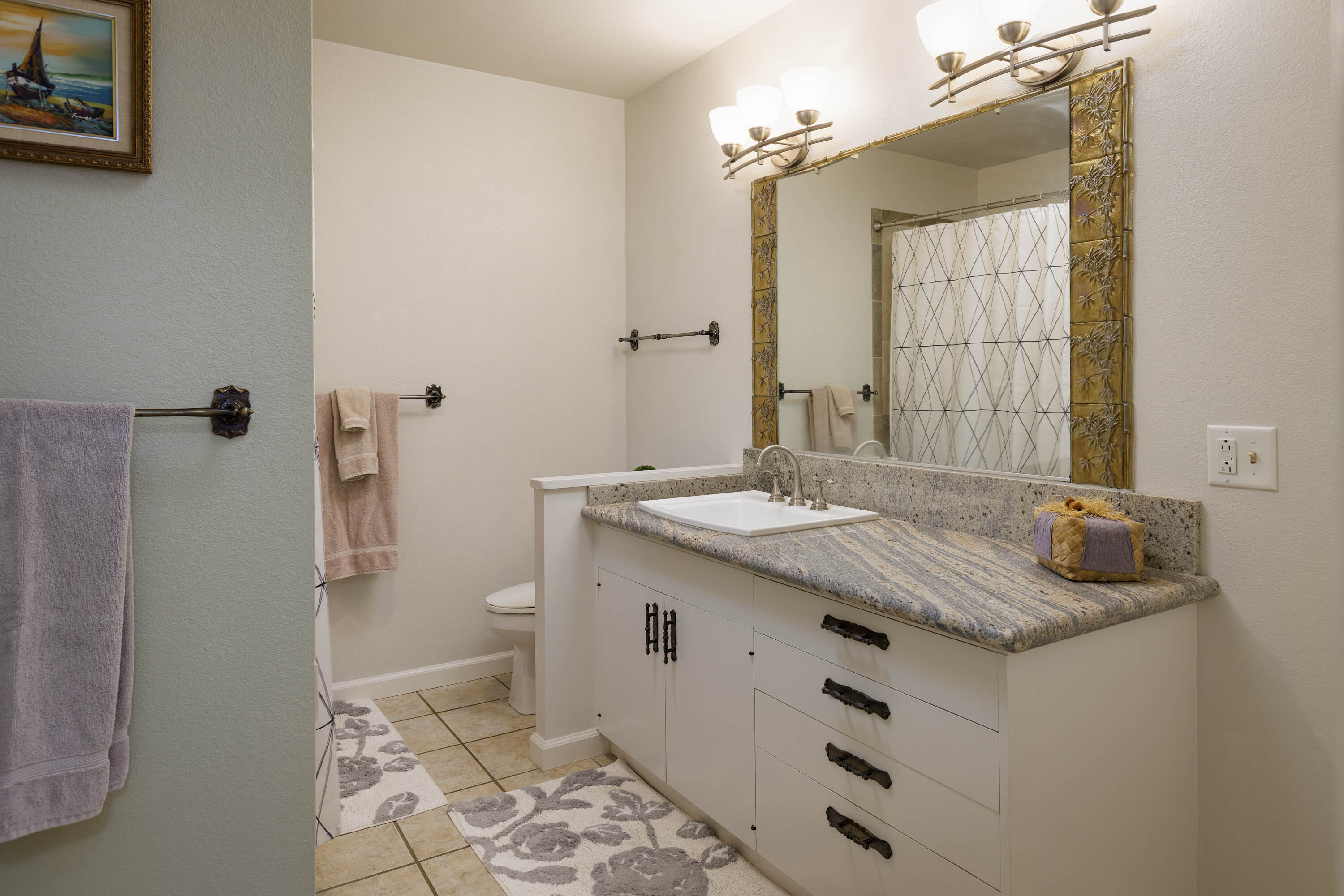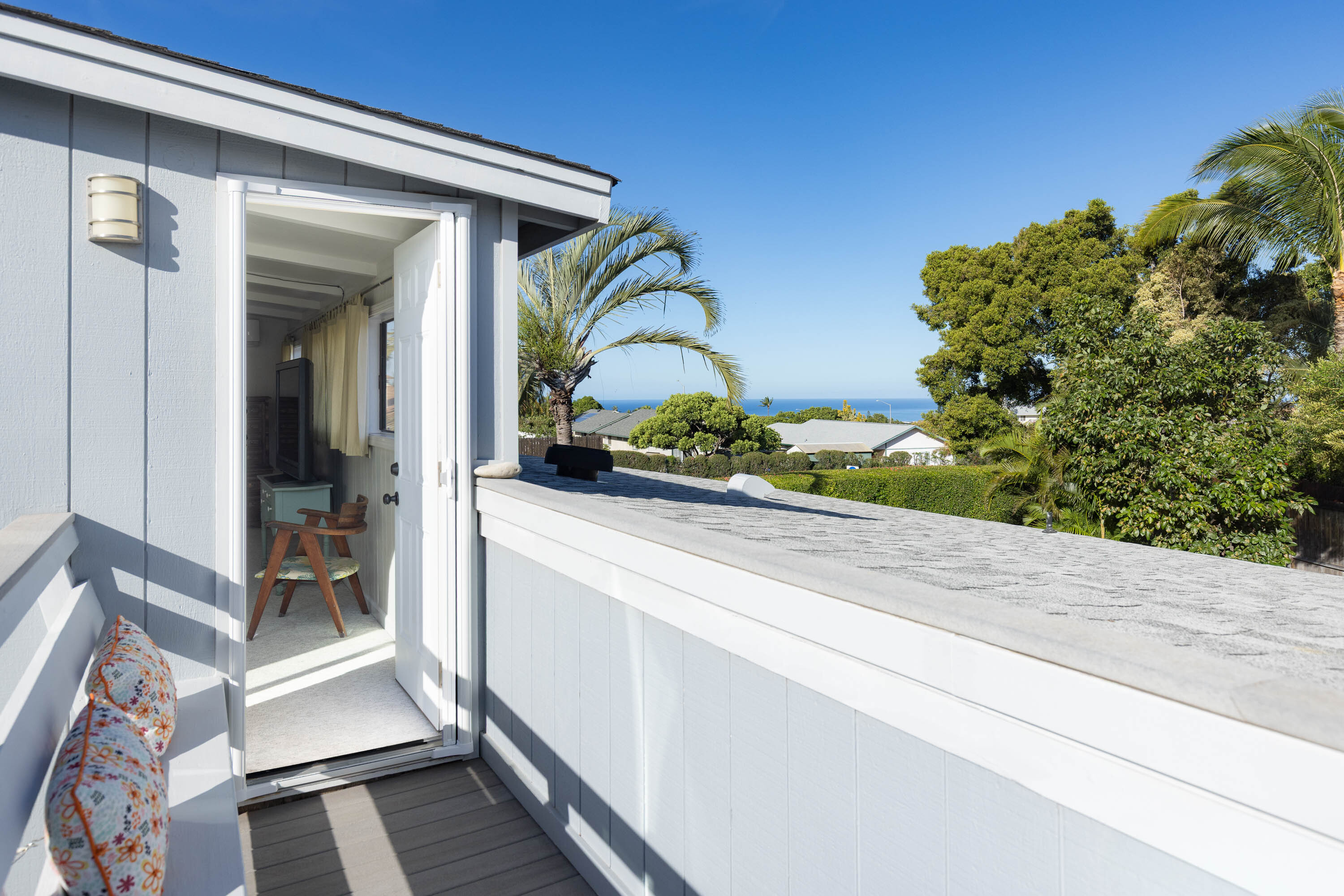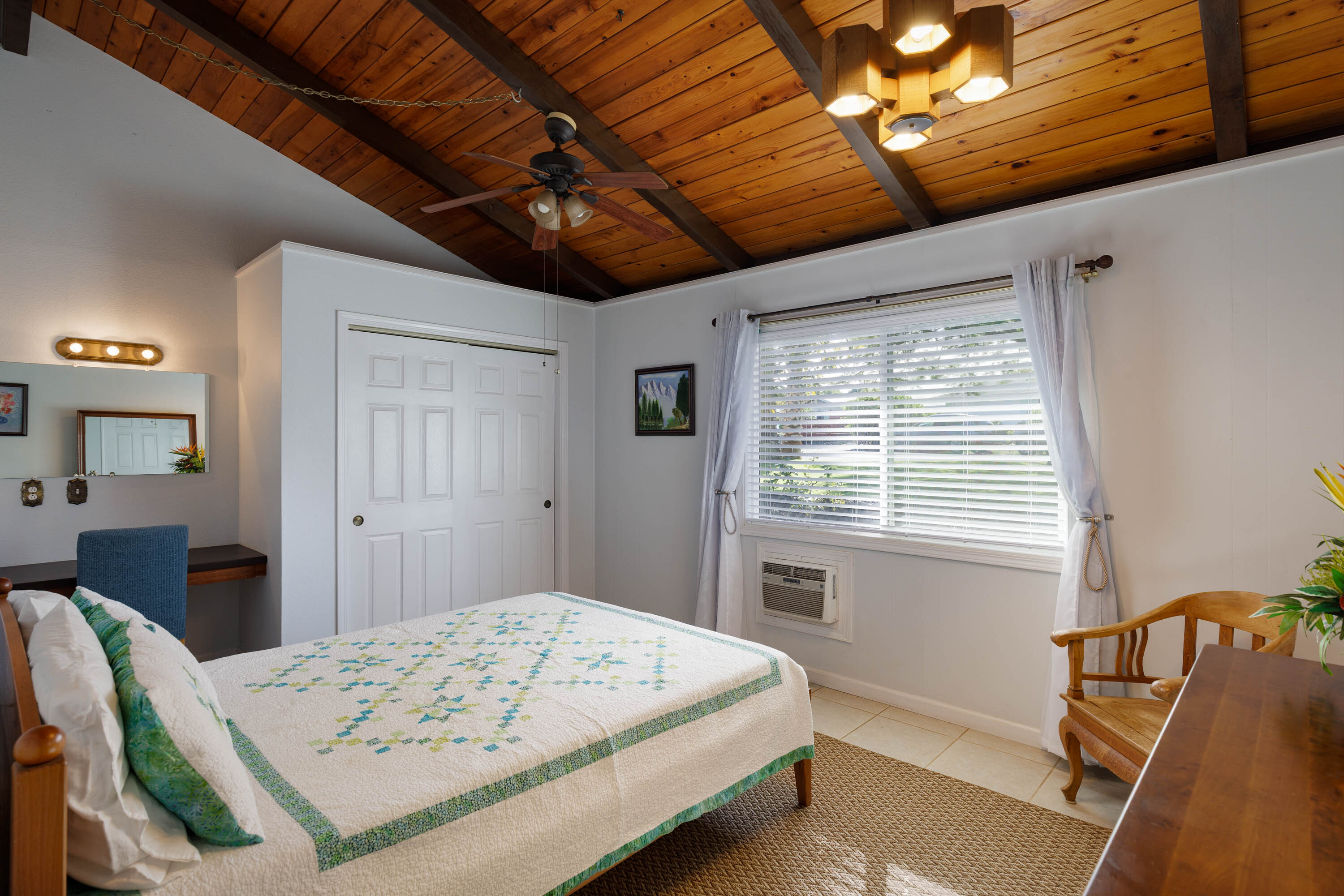Upstairs, an extra room, currently a craft room, offers flexible use as a home office, studio, classroom, or guest space. An additional upstairs suite with its own small lanai creates a private retreat.