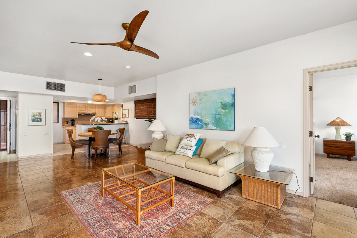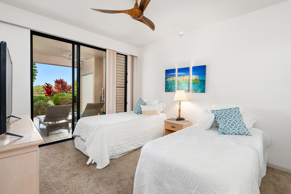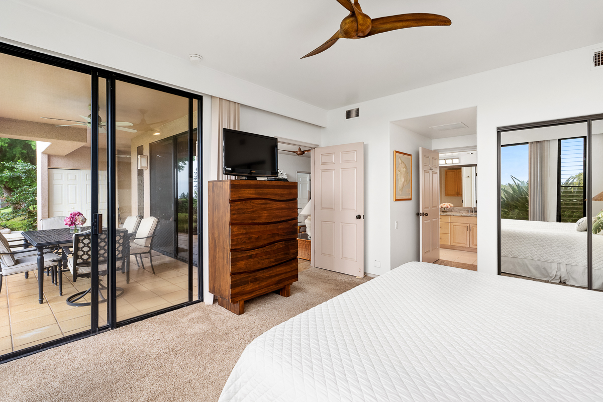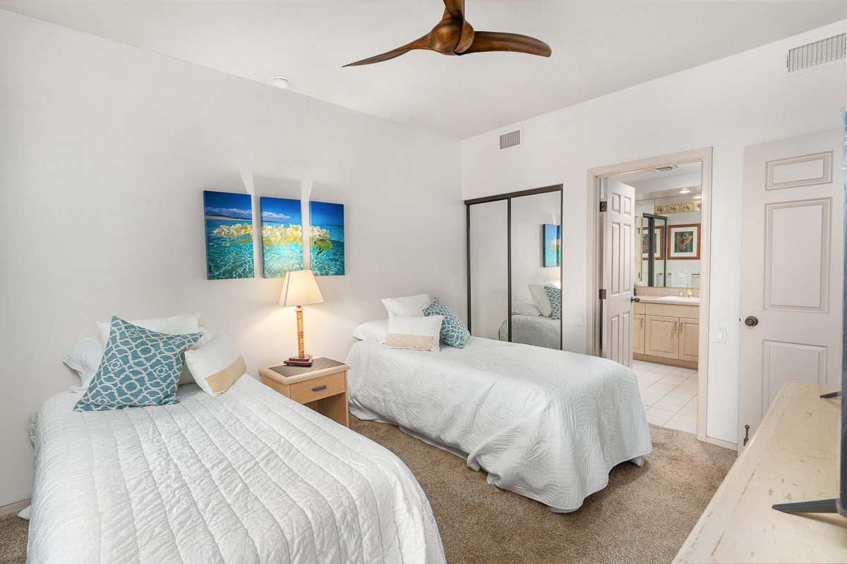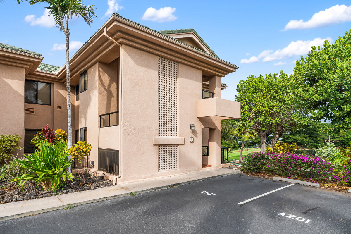 Fairways at Waikoloa is a low-density, low-turnover community, with building A especially sought after for its premier setting overlooking the golf course, course pond, and ocean horizon views. This thoughtfully designed residence offers a comfortable balance of privacy and gathering space, featuring dual ensuite bedrooms separated for flexibility, an additional half bath, and a generous wrap-around covered lanai that defines the outdoor living experience. With 1,227 square feet of interior living space, this two-bedroom, two-and-a-half-bath home is well suited for hosting family and friends while maintaining a relaxed, open flow. The Fairways community pool, along with the Waikoloa Village pool, tennis courts, and 18-hole golf course, are all just moments away, offering easy access to everyday resort-style amenities. The large wrap-around lanai overlooks the 3rd hole of the Waikoloa Village Association golf course, the course pond, and the distant ocean horizon. Daily life here includes the gentle rhythm of passing golfers and frequent sightings of local wildlife, including nene and turkeys. Designed for seamless indoor-outdoor living, the lanai features a wet bar and three oversized sliding glass doors that flood the living spaces with natural light and create an effortless connection between indoors and out. This residence has been successfully operated as a short-term rental, holds an active short-term rental permit, and is offered furnished, allowing for immediate enjoyment of the Waikoloa lifestyle from day one.