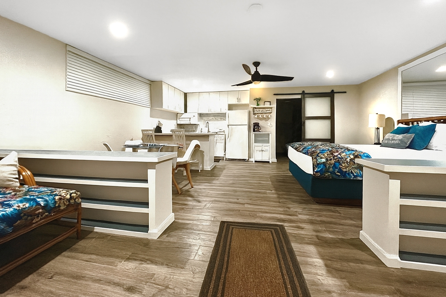 Remodeled in 2022, this ground floor turnkey end unit offers unobstructed ocean and golf course views along the 5th fairway, creating an ideal blend of island living and strong investment potential. Your front door and lanai face the ocean, providing cooling breezes throughout the day and unforgettable Hawaiian sunsets each evening. Located directly across from the Waikoloa Village Association amenities that include pool, tennis/pickle ball, golf club, and Johnny's restaurant. The setting is perfect for vacation renters or for those seeking a tranquil second home. An additional enclosed lanai of approximately 155 square feet, expands the living space and enhances the effortless indoor-outdoor lifestyle. Just minutes away where you’ll find some of the island’s top beaches, world class golf courses, and a growing selection of conveniences including a new shopping center, gourmet markets, cafés, and local restaurants making this one of Waikoloa Village’s most desirable locations.