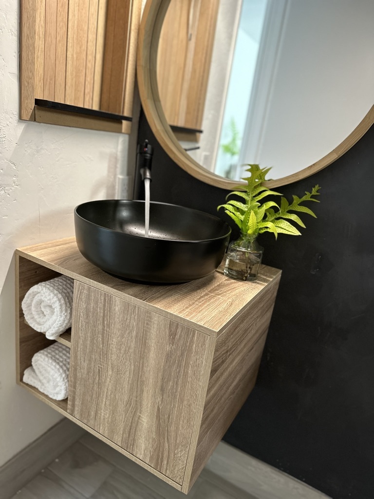 All new plumbing in bathroom and kitchen by a licensed plumber. Brand new tile throughout bathroom, modern floating vanity, new bathroom fixtures.