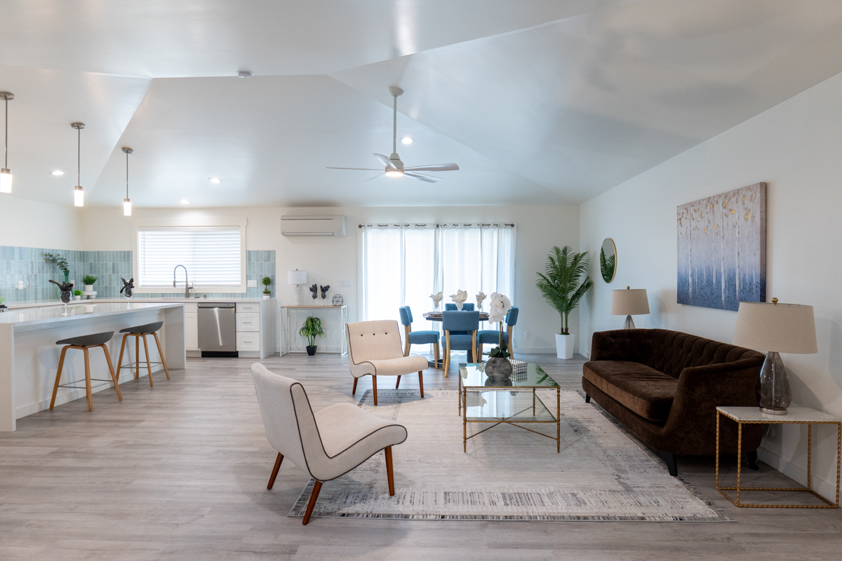 Nestled in the Waikoloa Village community, this home offers comfort with lots of natural light and space. The open-concept, vaulted ceiling "great room” features a modern kitchen and a large island with a quartz waterfall countertop that flows into the dining and living area.