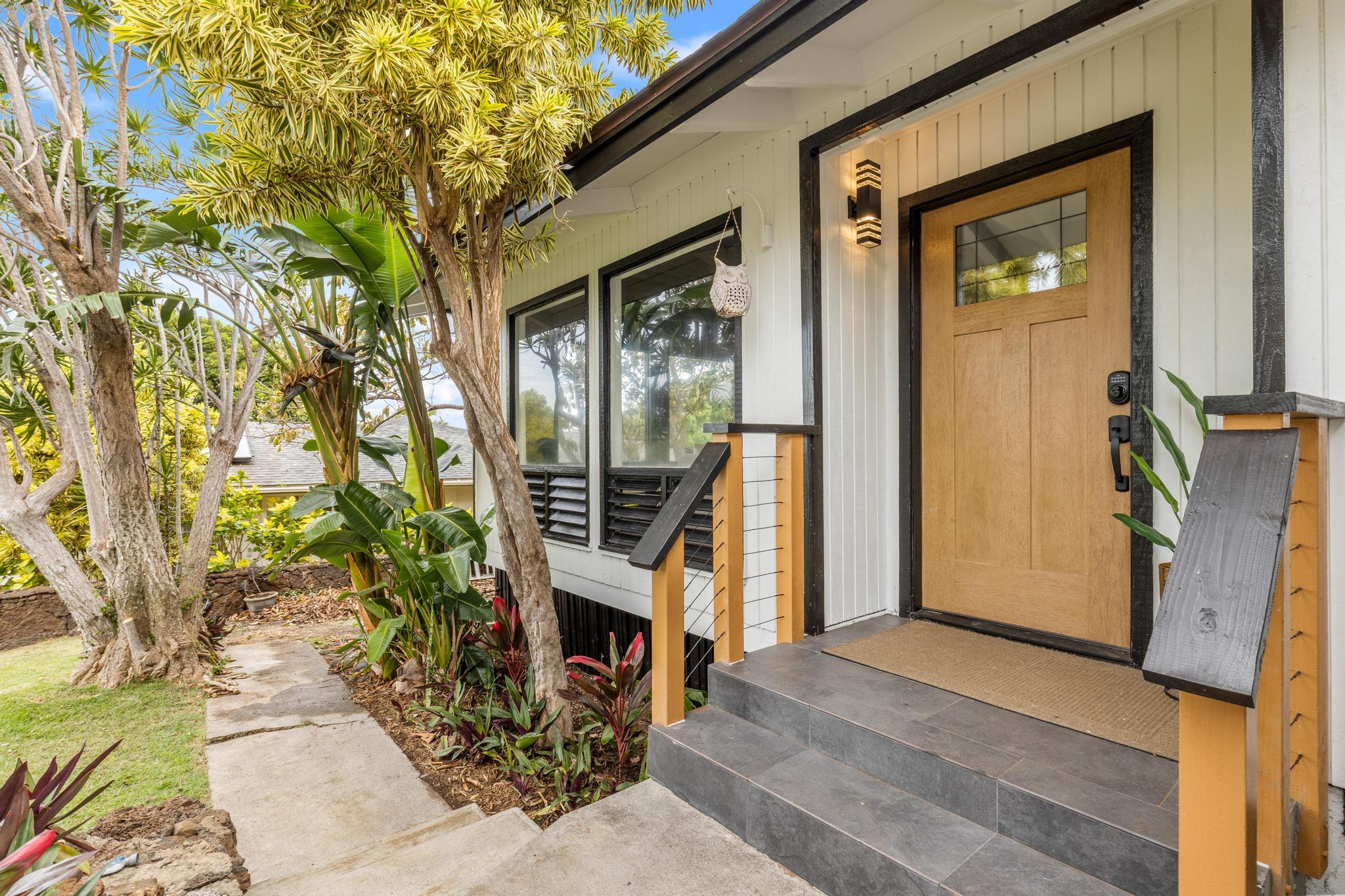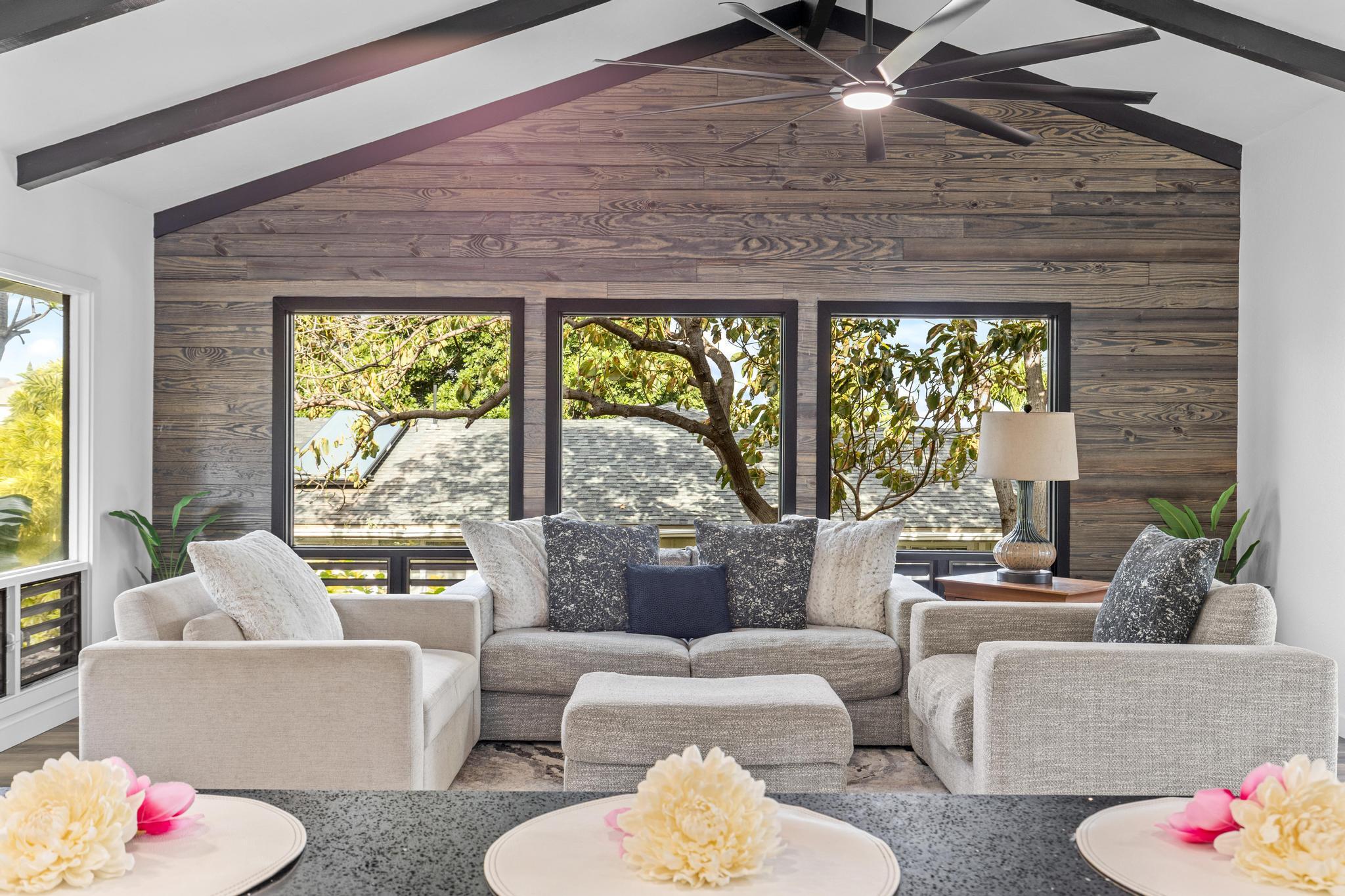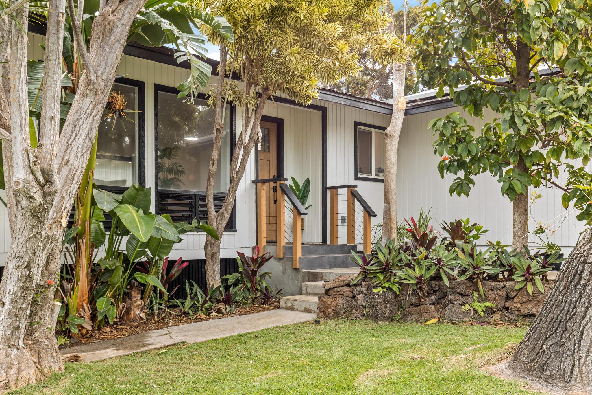 Beautifully redesigned for modern island living and effortless entertaining, this newly updated 3-bedroom, 2-bath home is an absolute must see. From the moment you arrive, you’ll feel the quality, care, and thoughtful design that set this property apart. The heart of the home showcases an open-concept layout, flowing seamlessly from the kitchen into the living room–perfect for entertaining and everyday living. The living room features a vaulted ceiling that enhances natural light and openness, complemented by a striking custom accent wall. A beautiful kitchen island anchors the space, ideal for gathering, meal prep, and hosting. Throughout the home, enjoy all-new quartz countertops, new flooring, fresh interior and exterior paint, creating a clean, modern, and elevated feel. The primary suite is a true retreat, offering a walk-in closet and an en-suite bathroom with a dual vanity. Two additional bedrooms provide flexibility for guests, family, or a home office. An inside laundry room adds everyday convenience. Step outside to a relaxing, newly built back lanai, with Kohala Mountain views, perfect for morning coffee, afternoon unwinding, or entertaining under the stars. The front and backyard areas are truly exceptional, featuring mature, producing trees including: - 3 varieties of avocado and bananas - Sweet, juicy mangos - Yellow and white pineapple - Seedless tangerine, guava, mountain apple, papaya, coconut, and fig - Fresh herbs including lemongrass, oregano, mint, and ginger (in pots) And the cherry on top–a one-of-a-kind treehouse with ocean views, offering a fun and cool spot to hang out. Located in the beautiful and thriving community of Waikoloa Village, and nearby to the Waikoloa Village Golf Course designed by Robert Trent Jones II, a new Aquatic Center, Waikoloa Stables, and tennis/pickleball courts. There are three county parks; a public K-8 primary and middle school; and two shopping centers.