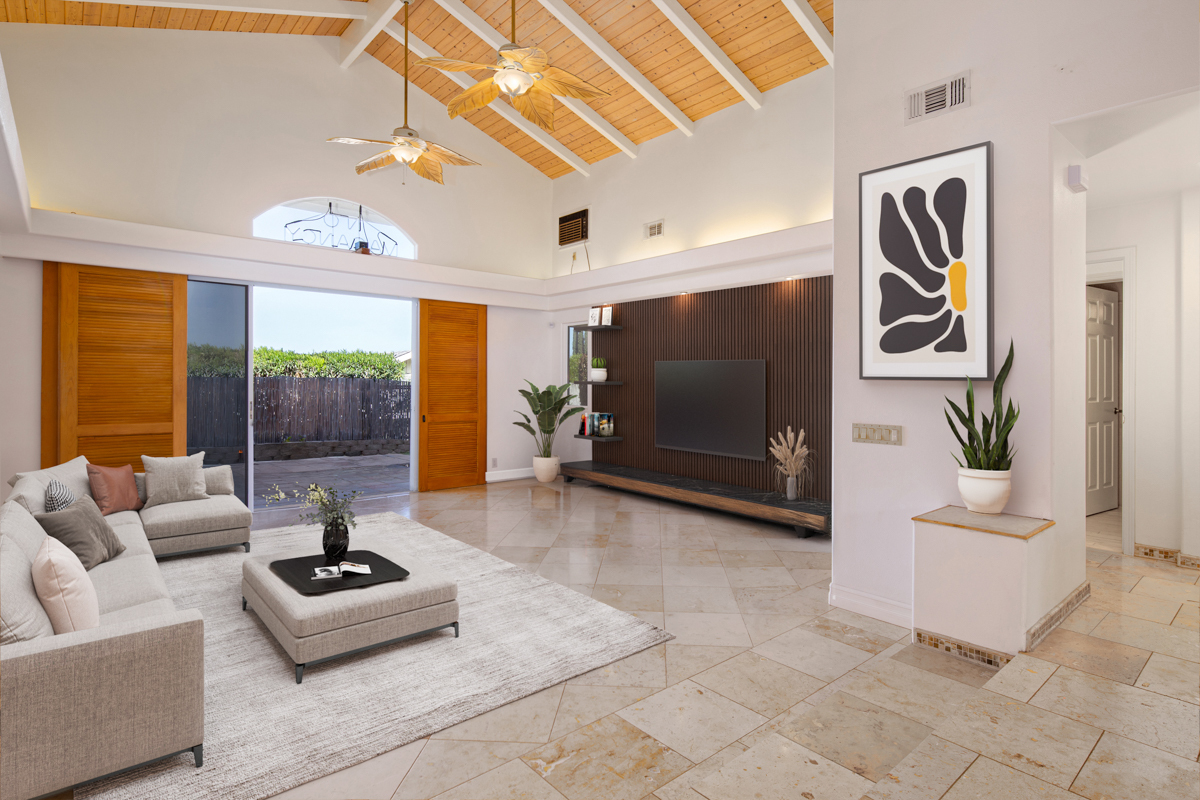 Welcome home to this unique and private 3 bedroom, 3 bath home that offers 2,112 sqft of living space. Step outside and relax in the tiki Hut/Bar hangout! Enjoy sunbathing or taking a splash in the pool on those hot & sunny days. It's just perfect for entertaining and BBQ with your friends & family. Peek-a-boo ocean and sunset view. You can have fun harvesting fresh mangos from your very own high-producing (twice a year) mango tree also to includes lemon, lime and tangelo trees. Situated on an oversized lot approximately 16,804 sqft. This is a one of a kind home that boasts a spacious floor plan great for both relaxed living and lively social gatherings. Whether your hosting a backyard or inside party this home brings on the best fun, style and charm all together! Special Features: ~ KitchenAid gas stove, Bosch dishwasher, newer LG refrigerator, stand alone microwave ~ Tavertine & bamboo flooring throughout ~ Master bedroom is located on the opposite end from the other 2 guest bedrooms ~ All 3 bedroom have it's own bathroom for privacy and convenience. Master Bathroom features a deep spa tub. ~ Women's dream, walk-in cedar closet with another storage cedar closet located outside the master bedroom ~ Murphy Bed in bedroom #2 with a brand new Queen size mattress (included in the sale) ~ Solar panels 25 are leased through SunRun (2022) with 2 backup Tesla batteries ~ Fully paid for 2 Solar hot water panels (2023) ~ Central AC added (2018) ~ New roof (2021) ~ Solar water heater (2024) ~ Out door shower ~ The fully fenced-in backyard, is fantastic feature for families, kids or pets! ~ Total of 3 storage sheds 2 can be used as work or storage sheds, the 3rd shed can be used as a small office or a kids play house ~ No J-9: Home has recently been professionally cleaned ~ No K-1 or K-2,. K-1 Staking has been completed ~ Septic System has been cleaned out and inspected in April 2025
