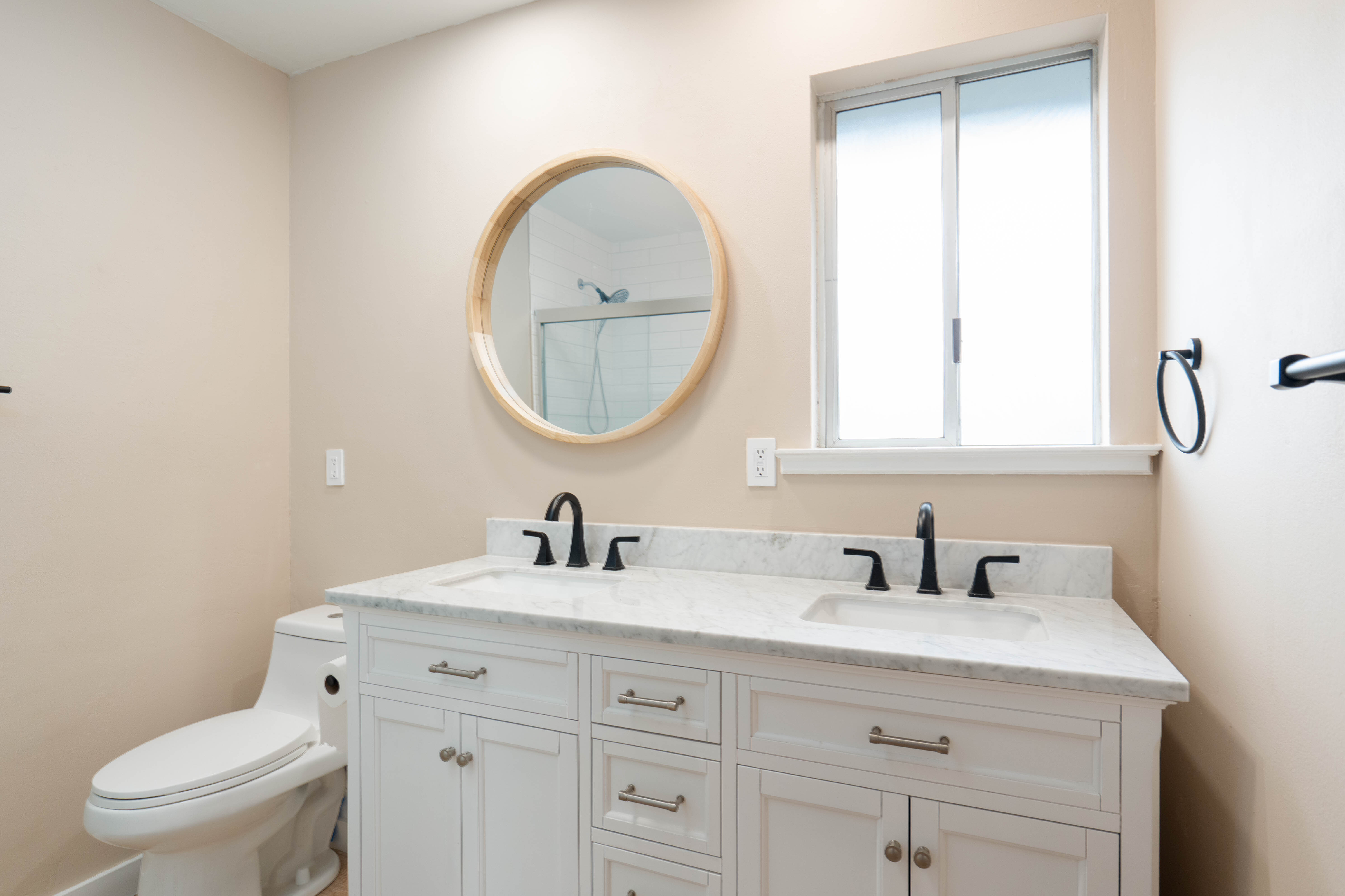Nestled in the heart of Waikoloa Village, this updated 3-bedroom, 2-bathroom gem offers a blend of modern comfort and island charm. The home boasts new vinyl LVP flooring throughout, providing a sleek and durable foundation for everyday living. The kitchen is a dream, featuring Arcade Green soft-close shaker cabinets, quartz countertops, and updated appliances, including a dishwasher, range, refrigerator, and stove. Enjoy the convenience of recessed lighting in the bathroom, kitchen, and living areas, creating a warm and inviting atmosphere.