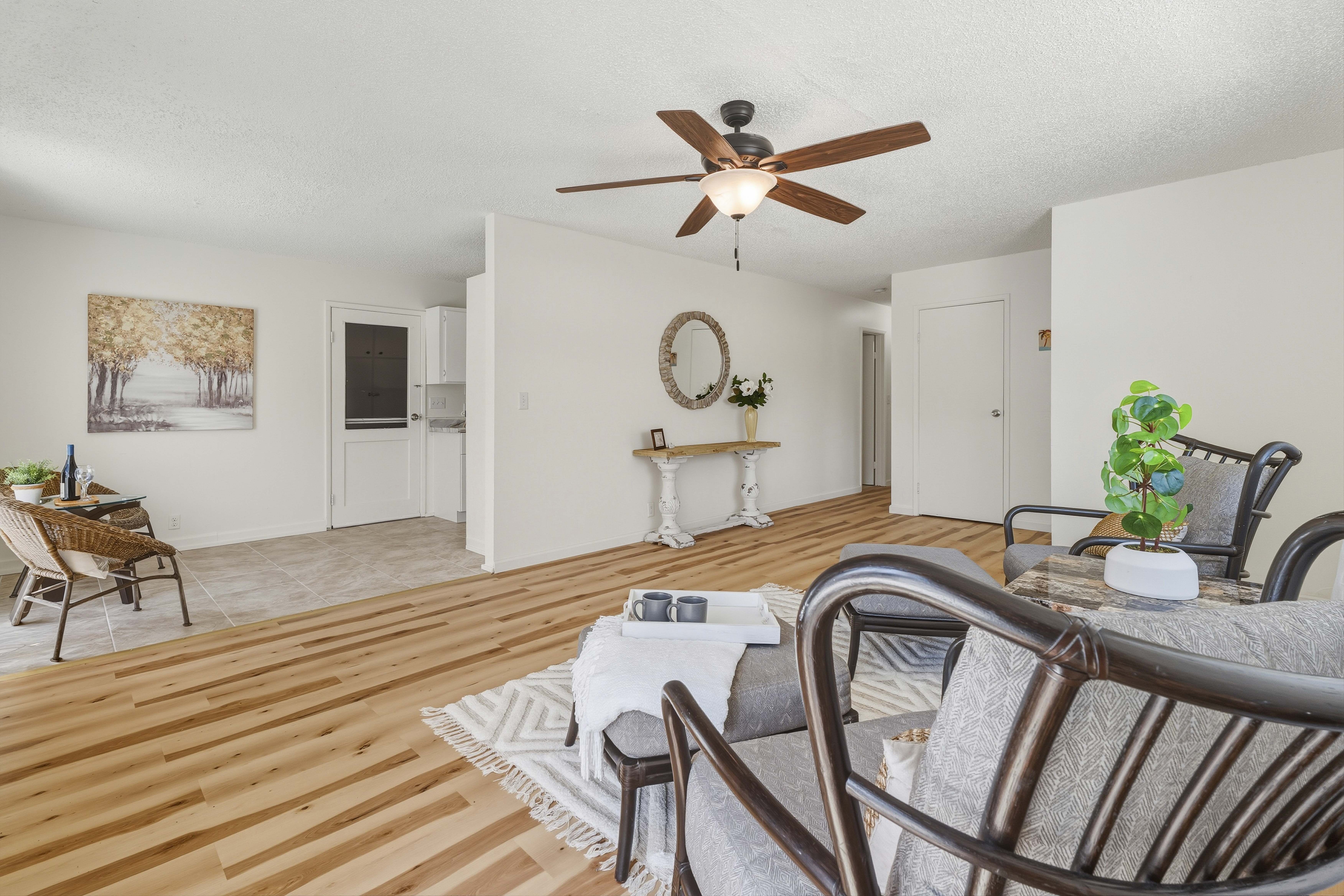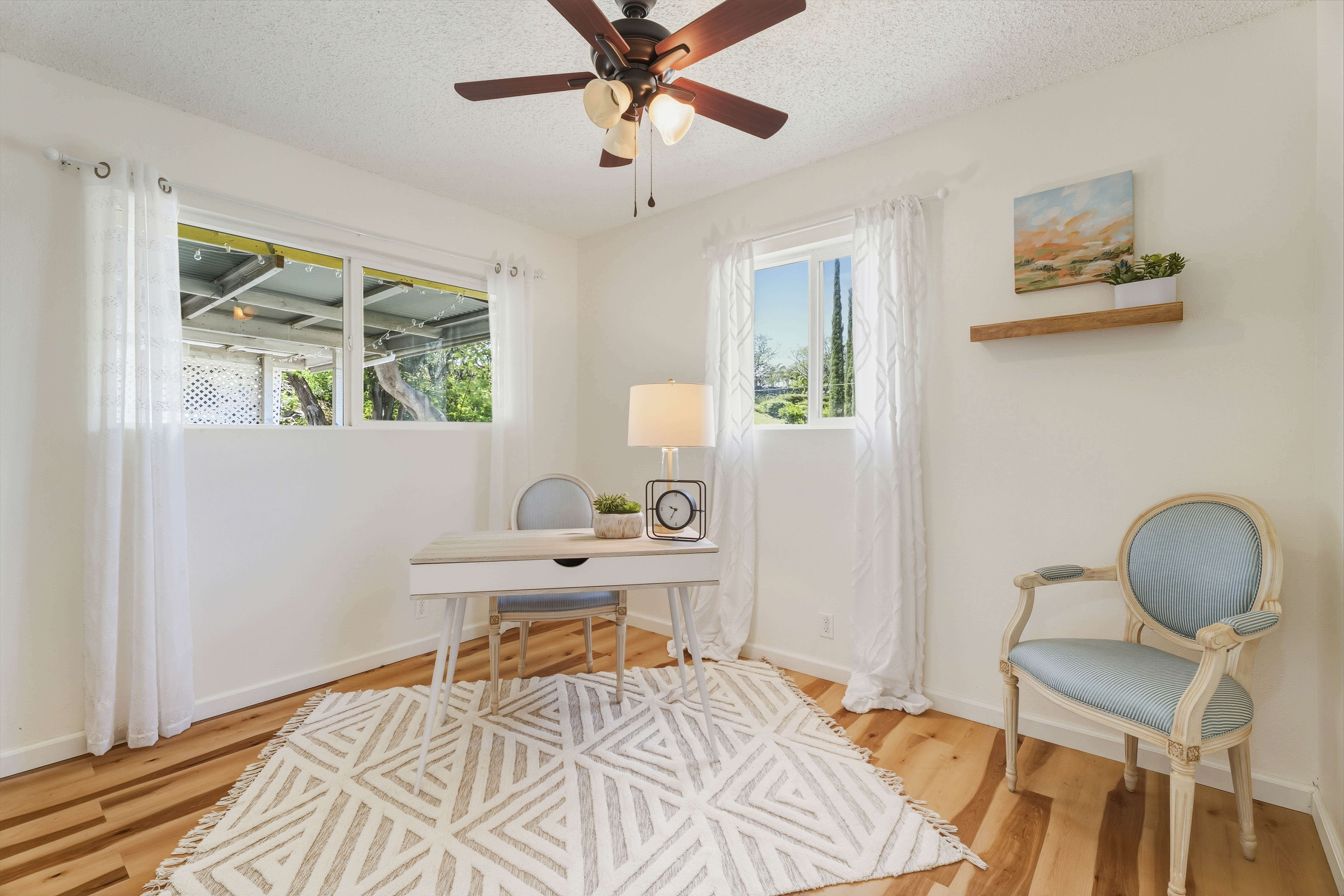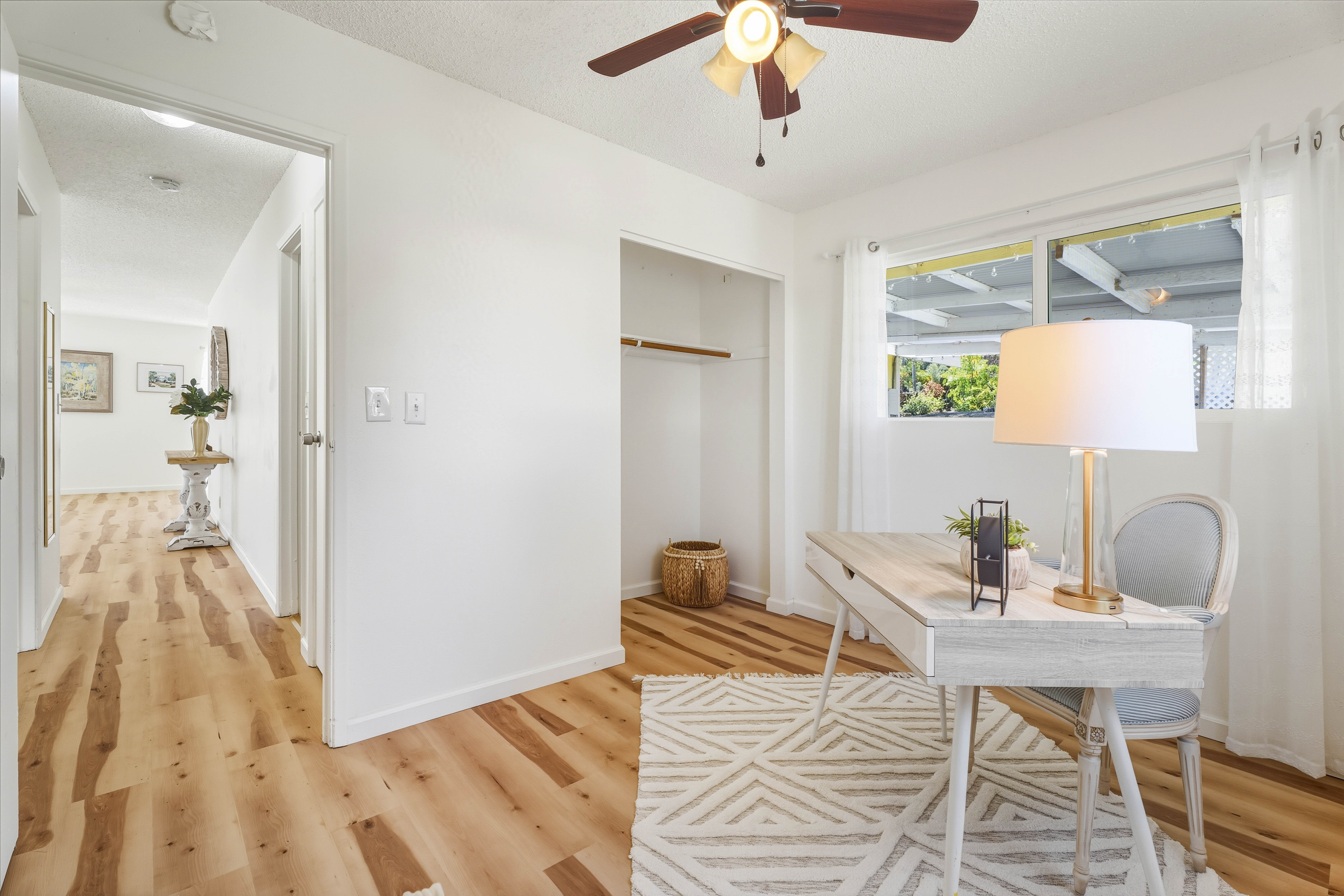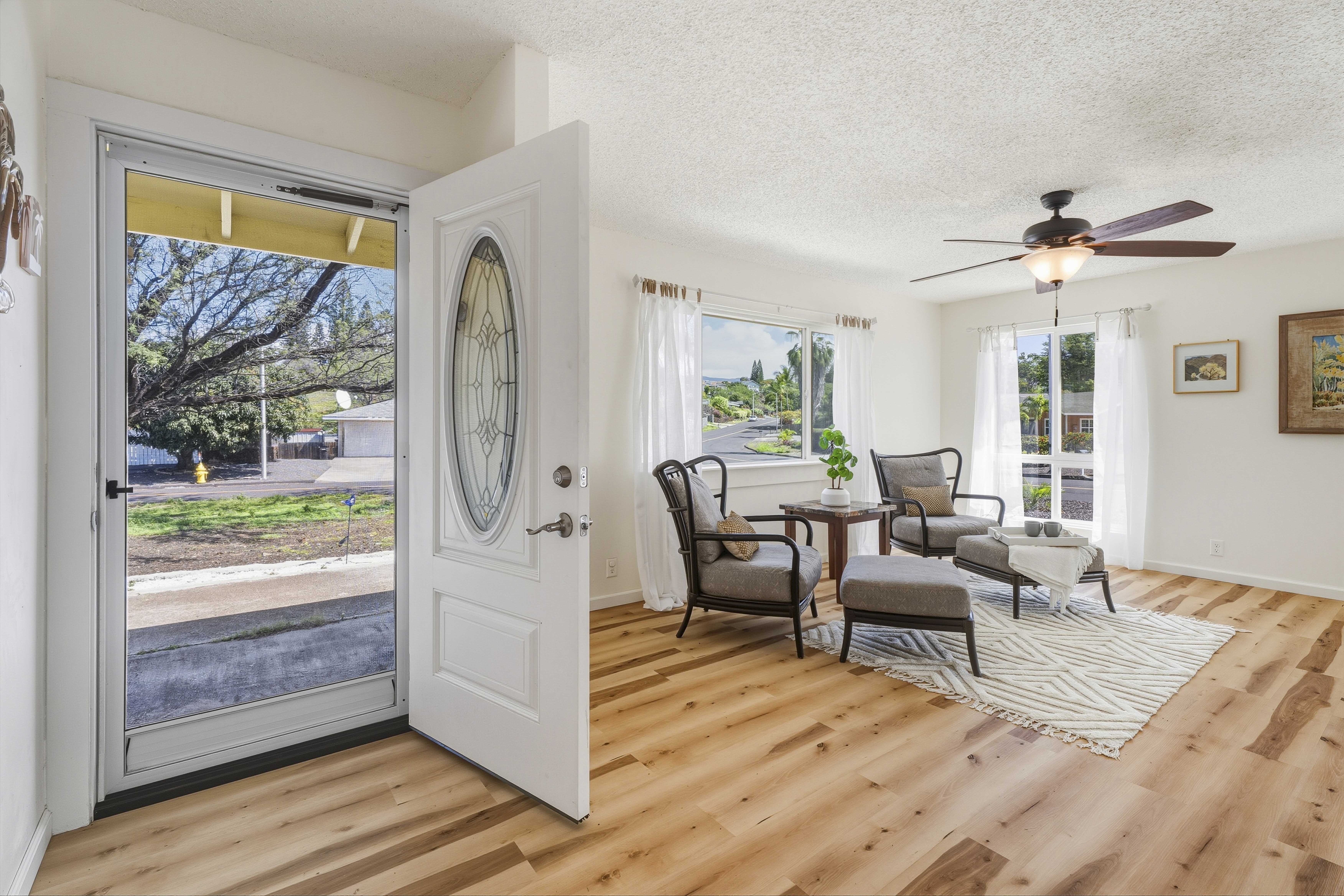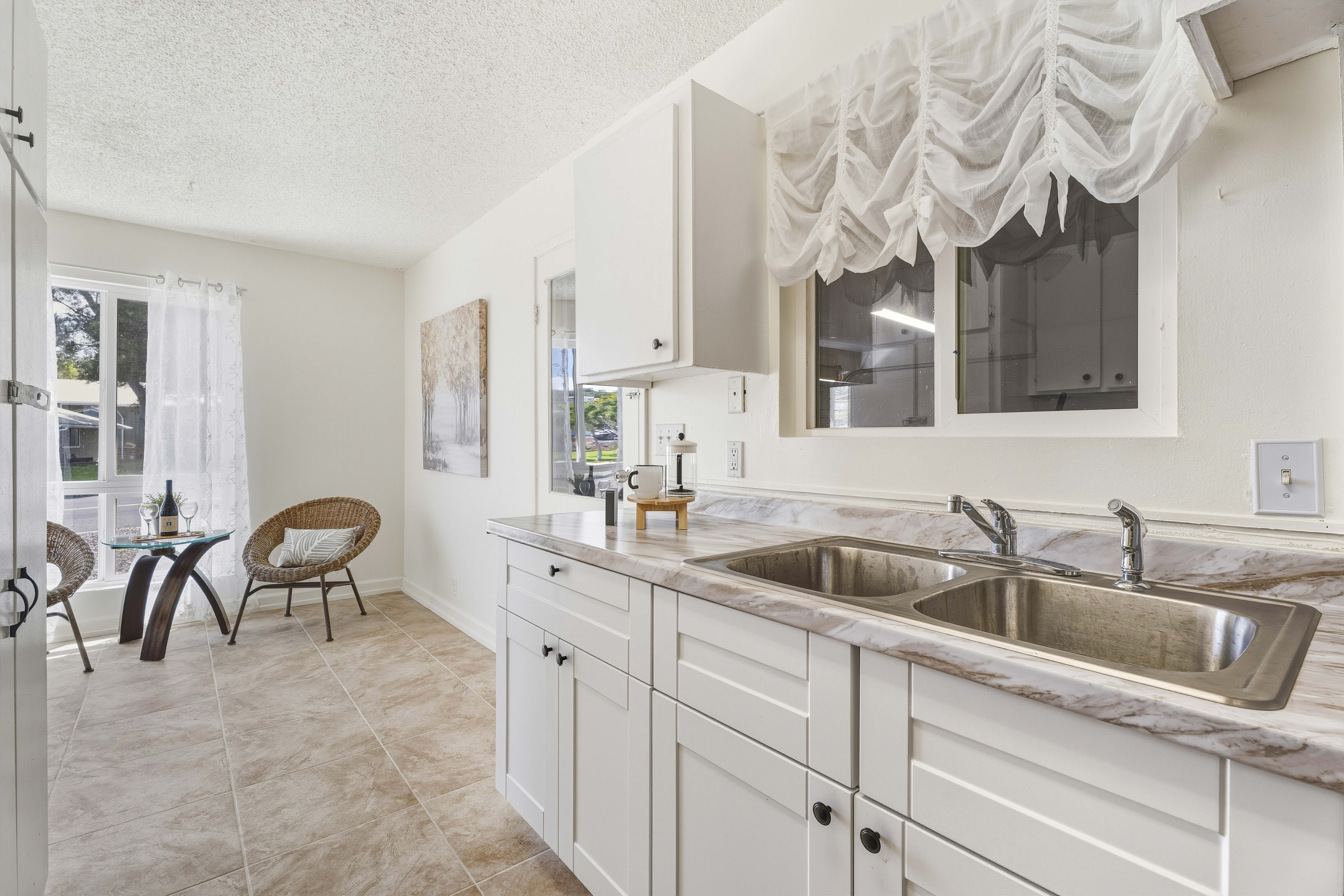 Welcome to your private island retreat in Waikoloa Village–a beautifully upgraded home that blends modern comfort with relaxed Big Island living. Perfectly positioned on a spacious corner lot, this charming and whimsical 2-bedroom, 1-bath residence offers both seclusion and exceptional potential for expansion. Step inside to discover a thoughtfully renovated interior featuring new flooring throughout the home, fresh paint, and updated finishes that create a bright, cohesive, and inviting space. The cozy galley kitchen shines with new lower cabinetry, stylish laminate countertops, and updated ceramic tile accents, while the refreshed bathroom complements the home’s modern upgrades. The living area is enhanced by double-pane windows, filling the space with natural light while improving energy efficiency. Outside, enjoy the best of indoor-outdoor island living. A covered back lanai provides the perfect setting for entertaining or unwinding, while concrete walkways wrap the home for added convenience. The oversized lot offers endless possibilities–whether you envision lush landscaping, an extension, or additional outdoor living spaces. A large garage with ample storage completes the package. This home also includes 14 leased PV solar panels with a backup battery system (installed in 2019 through Sunrun), helping you enjoy sustainable living and energy savings. As part of the Waikoloa Village Association, residents benefit from access to a community pool, tennis courts, and discounted golf at the renowned Waikoloa Village Golf Course. With close proximity to the Kohala Coast’s world-class beaches, resorts, and dining, you’ll experience the very best of island life–all from the sunny side of the Big Island. Ideal as a starter home, vacation getaway, or investment opportunity.