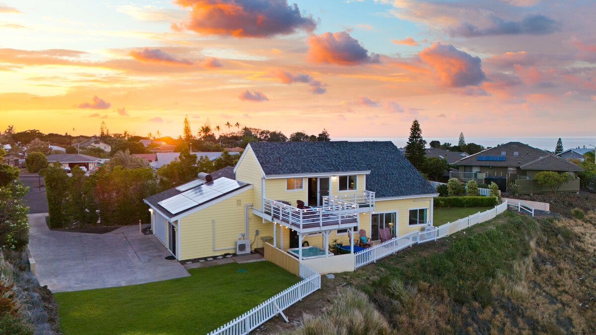 Discover the perfect blend of style, comfort, and coastal charm in this 4-bedroom, 2-bathroom home. Boasting breathtaking views of the Kohala Mountains, Mauna Kea, Maui, and the Pacific Ocean, the private upstairs primary suite is a true sanctuary featuring a large tub for relaxing, and a walk in closet, complete with its own lanai for soaking in the majestic views.
