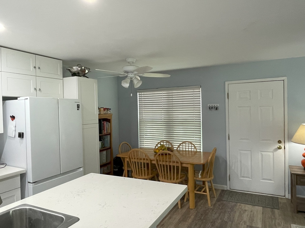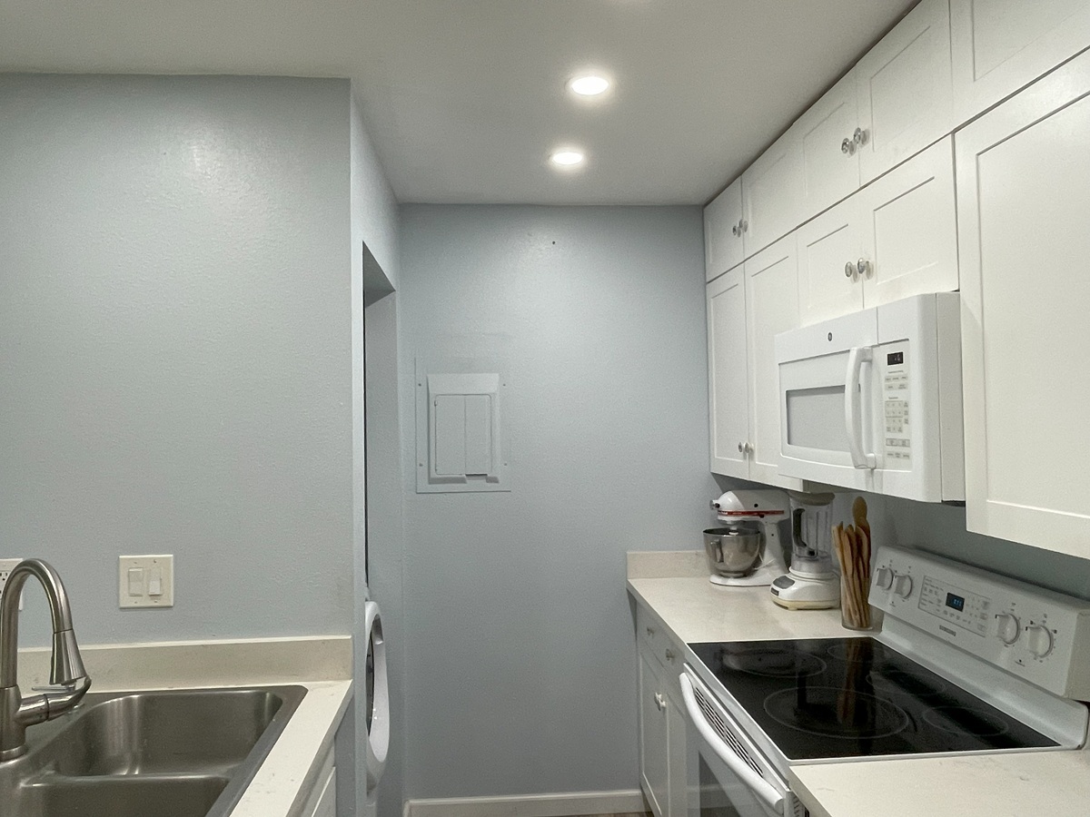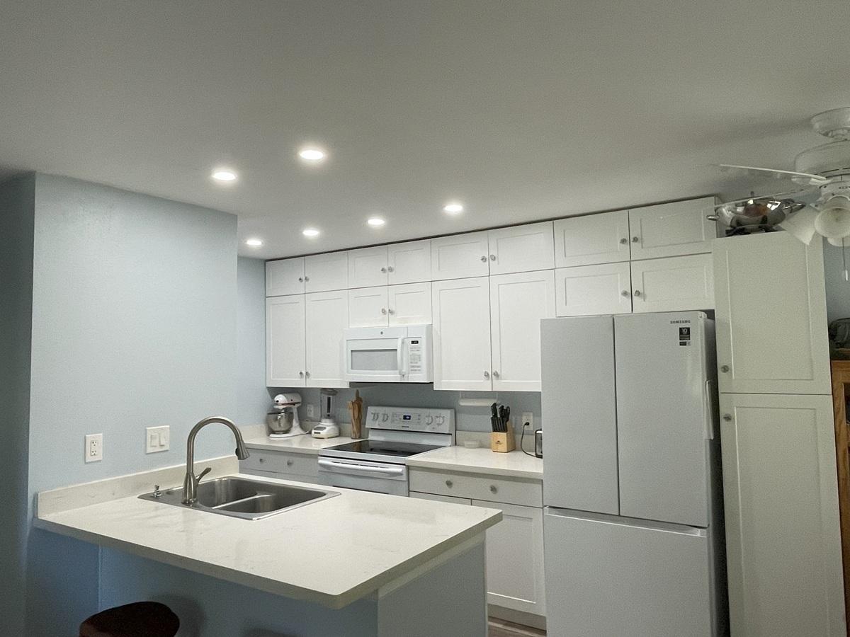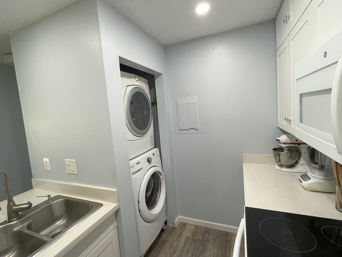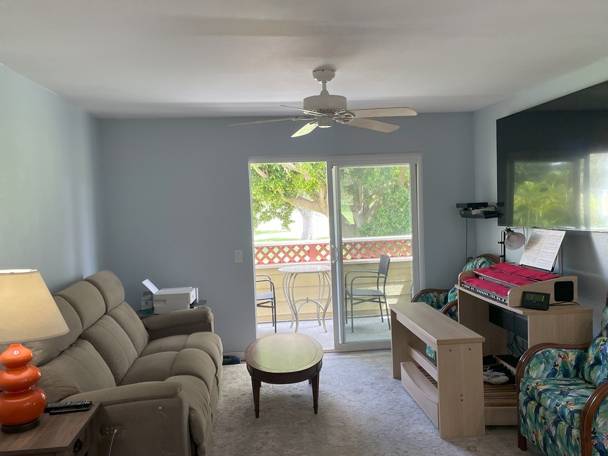 Step inside to a bright, open-concept layout flooded with natural light from new energy-efficient, double-hung windows and slider. The double hung windows allows you to be able clean the outside of the windows from inside the condo. There is more, including a stackable washer/dryer, new cabinetry, both bathrooms have been upgraded. The living room flows seamlessly to a 60sq ft covered lanai overlooking the golf course Recent upgrades include fresh luxury vinyl plank flooring throughout the main living areas, adjustable LED lighting in kitchen and a modernized master bathroom with a walk-in shower. The roof was replaced within the last couple of years, and the complex is in the process of being painted now. The old color was yellow, the new color is blue/gray. There is a photo of the main office with the new color.