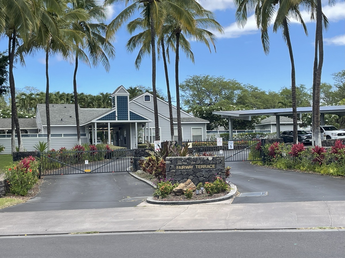 Located in the gated serenity of Fairway Terrace at Waikoloa Village. Fully updated 2-bedroom, 2-bathroom condo (793 sq ft) offers the ultimate blend of island luxury and low-maintenance living. Perched on the upper level with direct views of the lush renowned Robert Trent Jones Jr.-designed Village Golf Course. This is an end-unit with an extra end window allowing refreshing trade winds to keep it cool year-round.