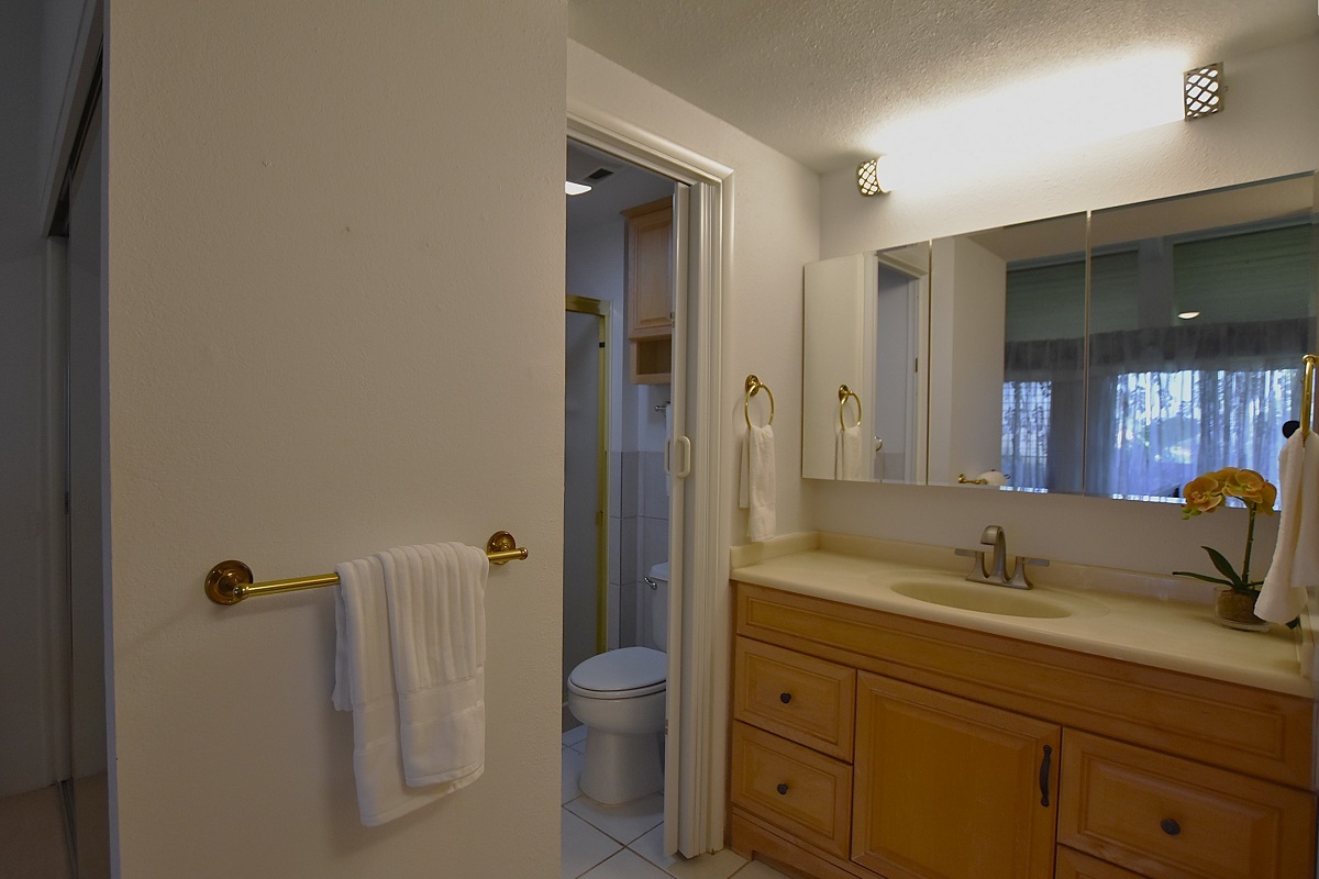The living room flows nicely to the lanai which can also be accessed from the primary suite and provides a serene view of one of the two beautiful pool areas, the golf course and ocean. Plus, the wet bar is a great benefit when entertaining or relaxing.