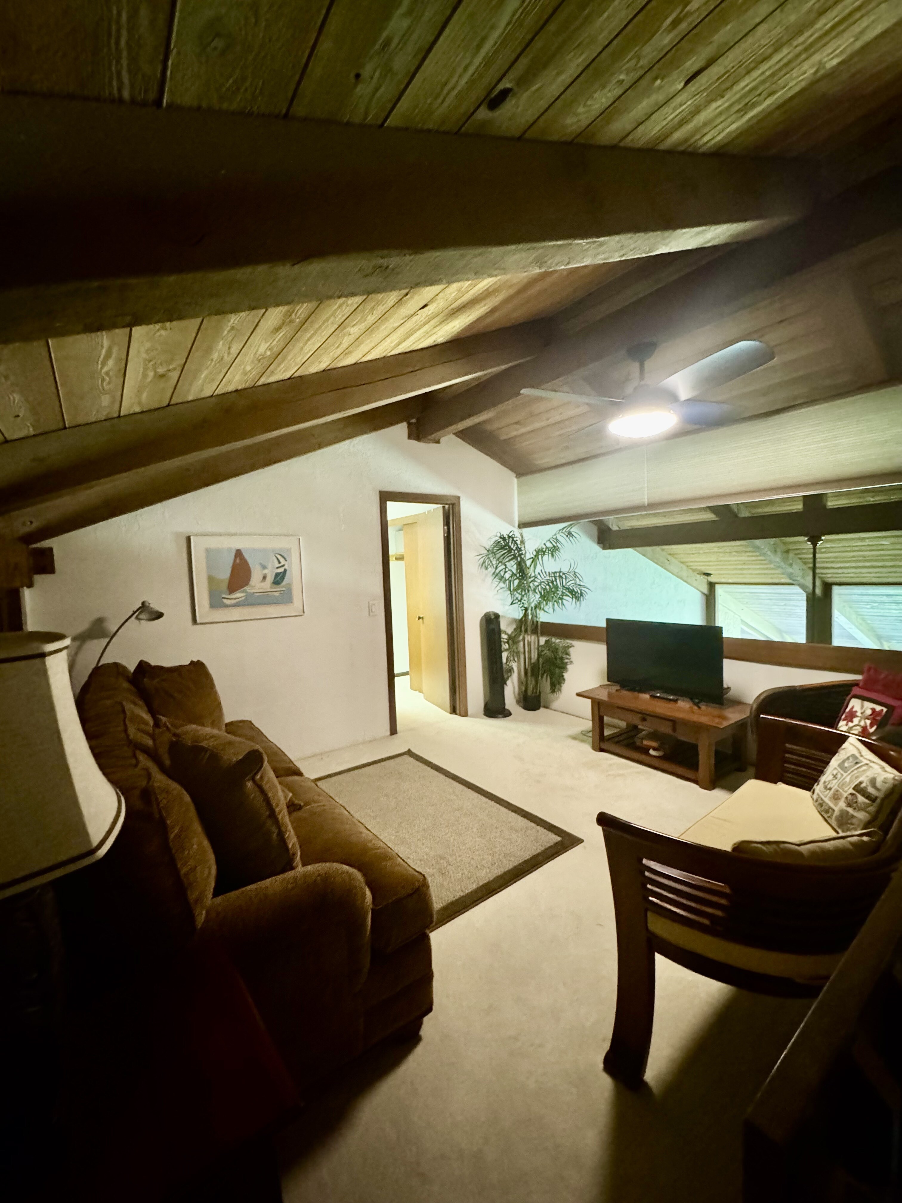 Welcome to aloha paradise! This charming, 3BR, 3 bath, 2 story unit will take your breath away, and make you feel like you never want to leave. With a panoramic ocean view, overlooking the 9th fairway of a Robert Trent Jones designed golf course, every sunset is a picture worth framing, as you enjoy the spacious lanai with its built in wet bar. With vaulted ceilings, spacious primary and guest bedrooms downstairs, and a completely independent 3rd bedroom / loft with it’s own full bath, this unit is a perfect island home. Interior upgrades include wood grain laminate flooring, mahogany furniture throughout, upgraded ceiling fan and light combos everywhere, and three portable AC units, strategically placed to keep cool in the warmer months. This unit is so turnkey, you’ll only need to bring your clothes! Don’t miss this one…it won’t last!