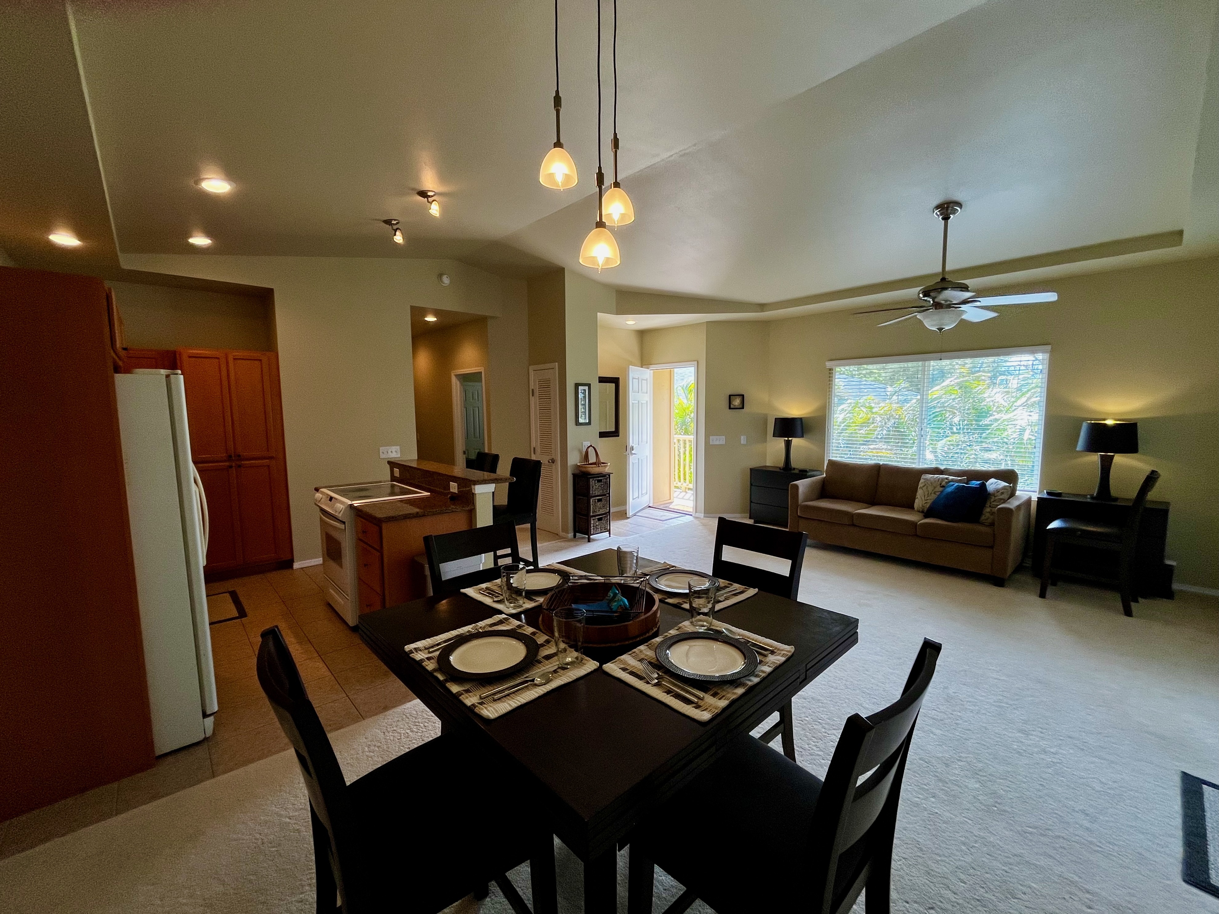 This is the only condo offered for sale in Paniolo Garden's low density 17 unit complex, a short drive, walk or bike ride from the Waikoloa Highlands Shopping Center and Waikoloa Plaza. Two assigned and deeded parking stalls offer immeasurable convenience, just steps from the unit.