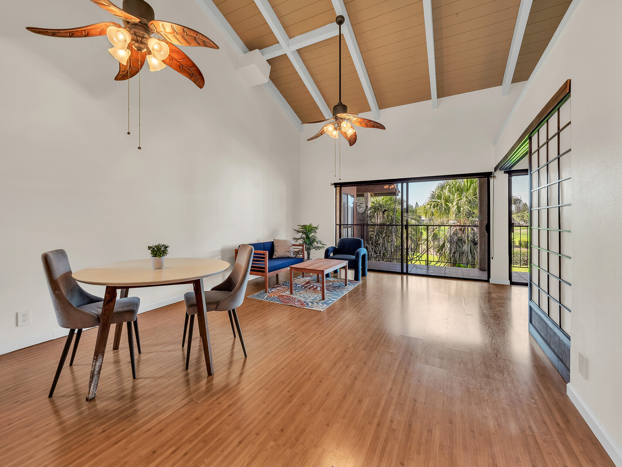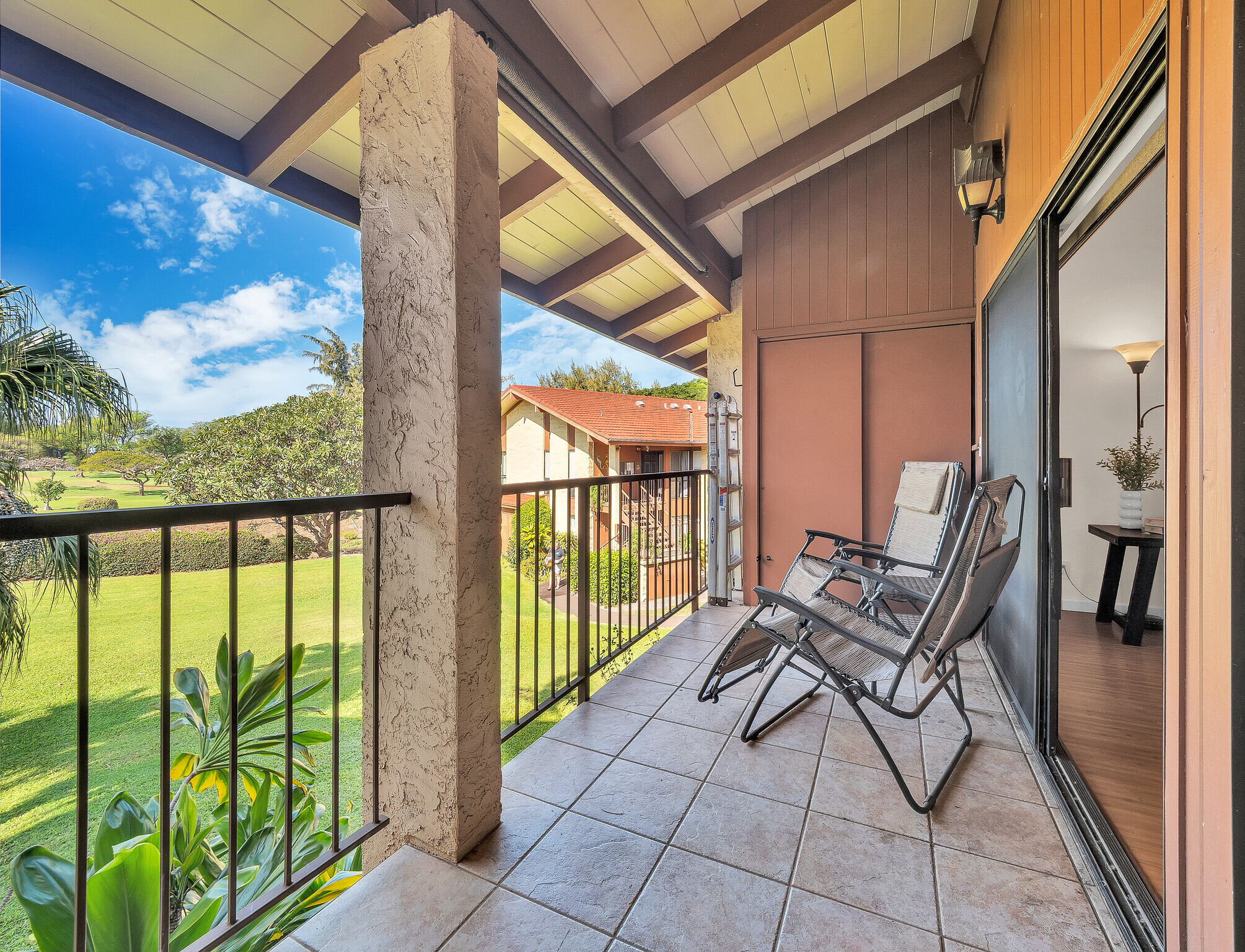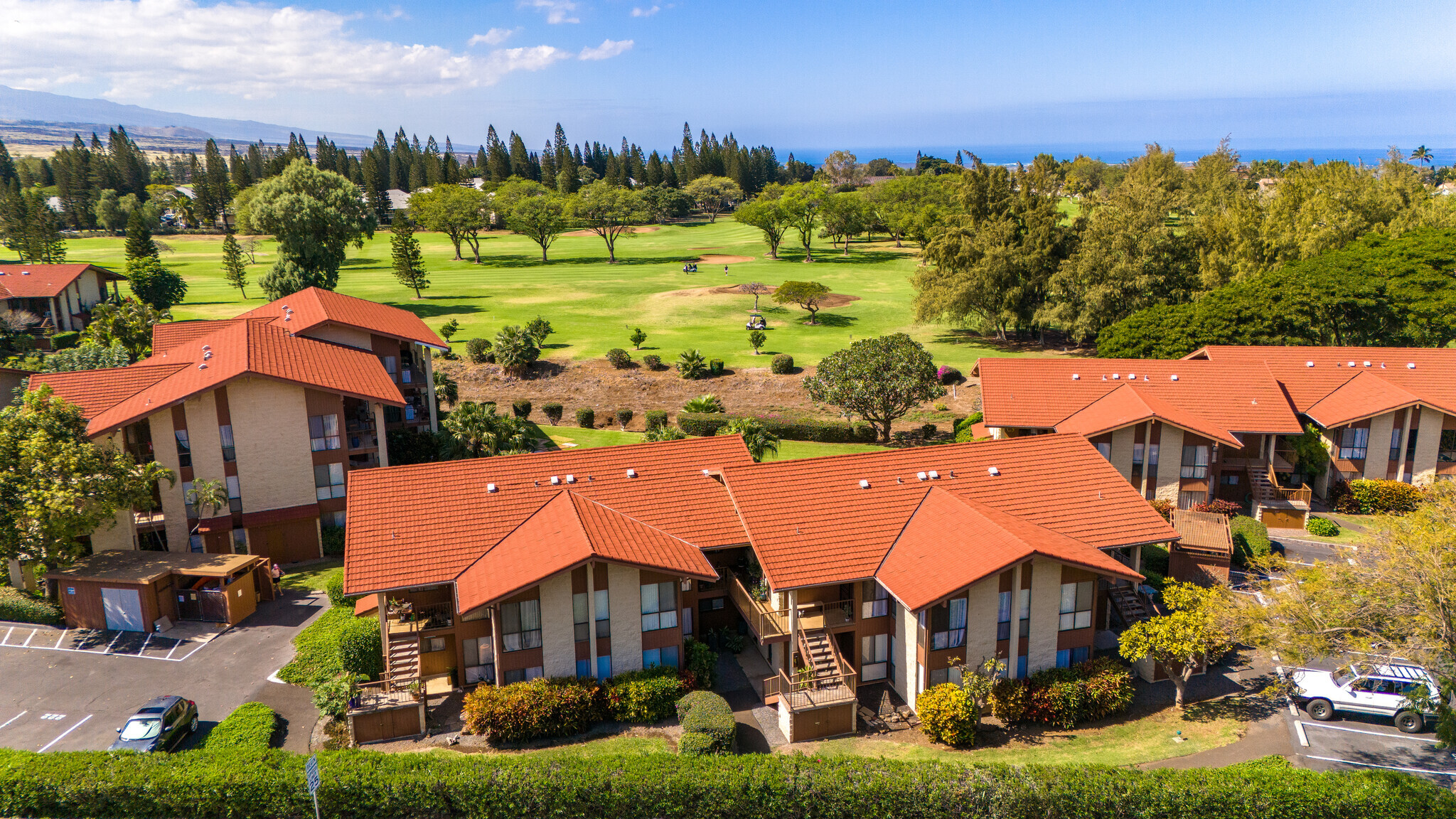Paniolo Club unit #224 is a freshly painted, second-floor, 2-bedroom, 2-bath unit offering beautiful golf course views, an open layout, and high vaulted ceilings. It’s one of the few two-bedroom, two-bath condos currently available in Waikoloa Village, making it a great opportunity whether you’re looking for a primary residence, second home, or investment property, with the option to convert to a short-term vacation rental. The spacious lanai overlooks the golf course and provides wonderful additional living space to relax and unwind. Inside, the unit has been freshly painted and features brand-new appliances, including a washer and dryer, along with durable vinyl flooring throughout. The location is both central and convenient, within walking distance to Johnny’s Restaurant, the Waikoloa Village Shopping Center, and other nearby amenities. The unit includes an assigned parking stall, plus ample guest parking for visitors. Owners also enjoy access to community amenities including a pool, tennis and pickleball courts, and discounted rates at the Waikoloa Village Golf Course.