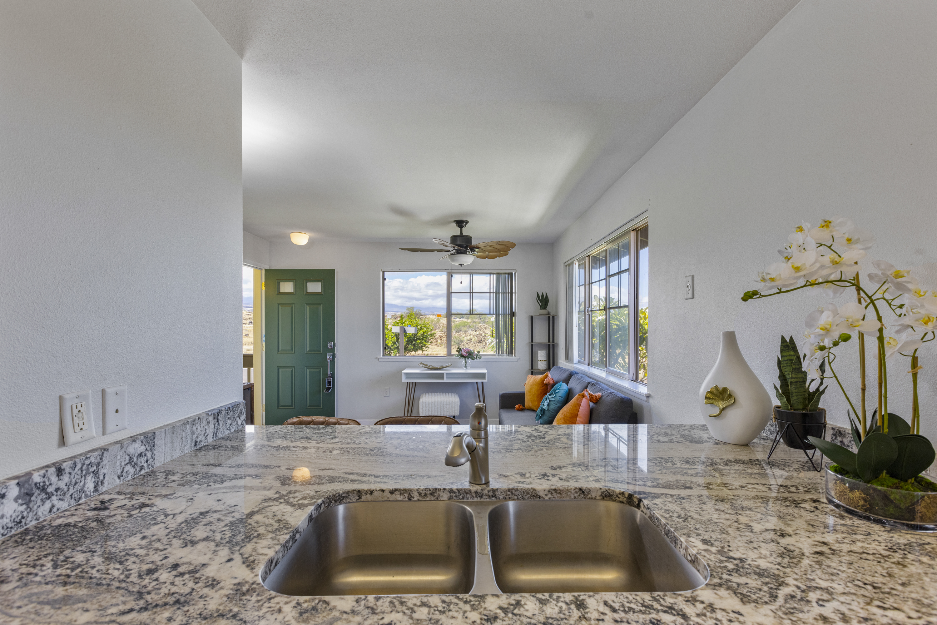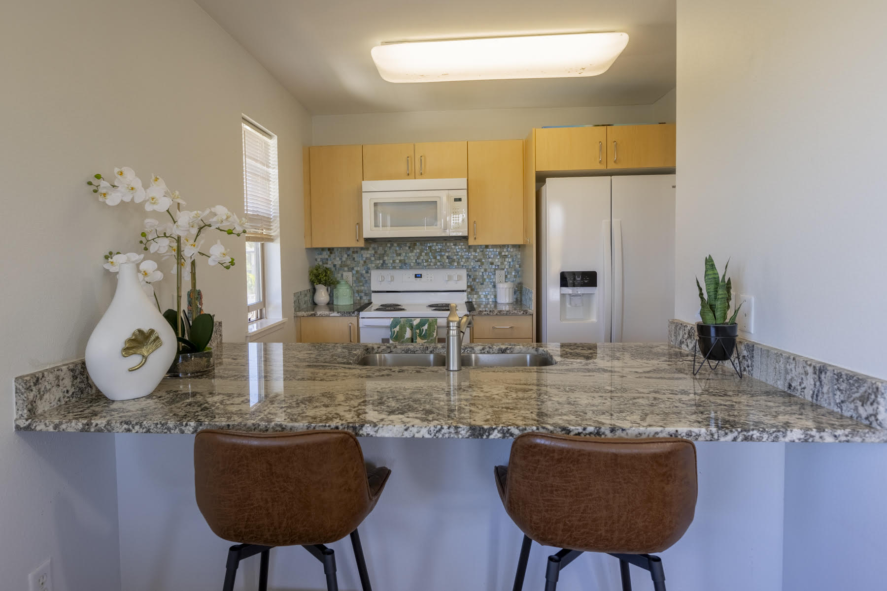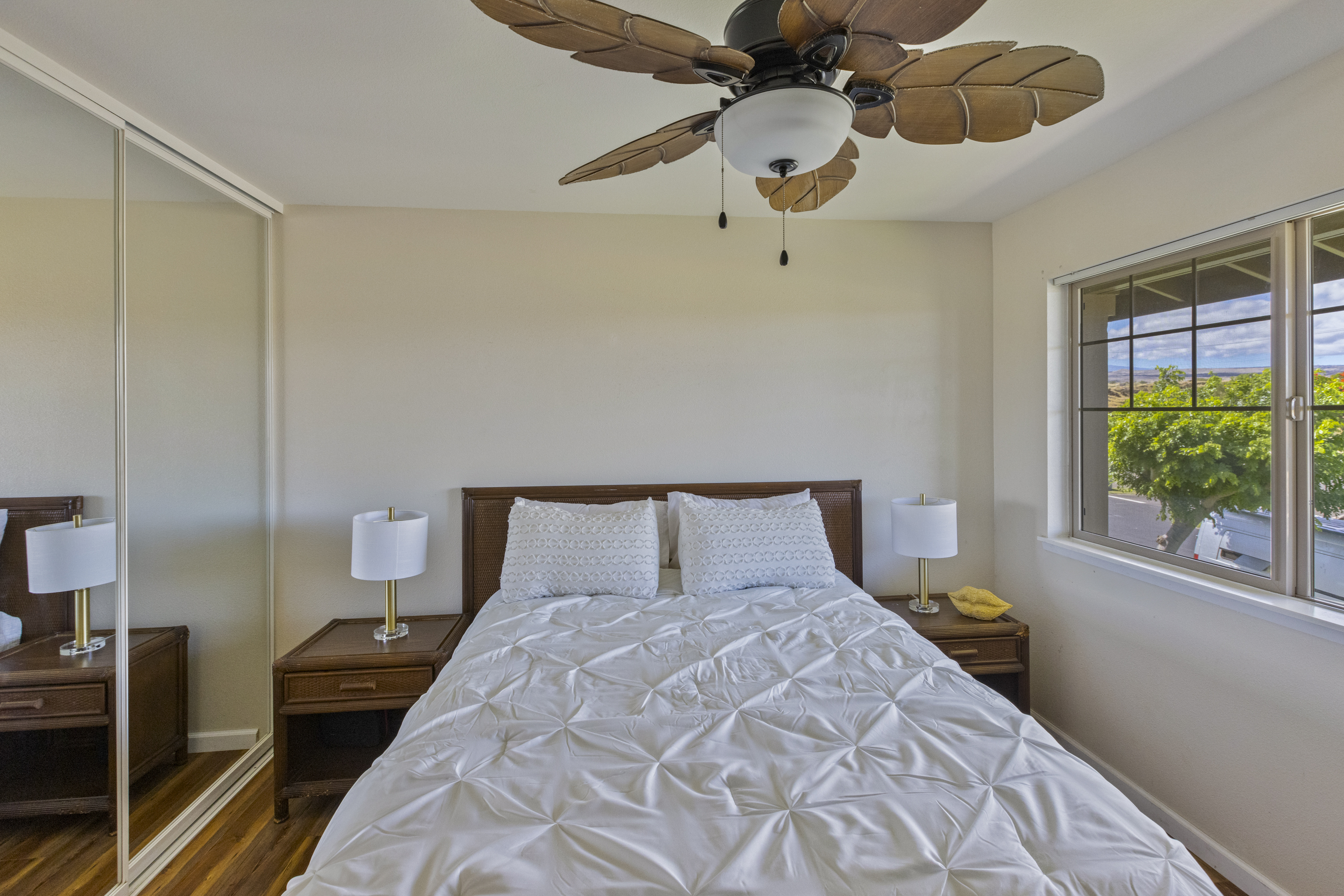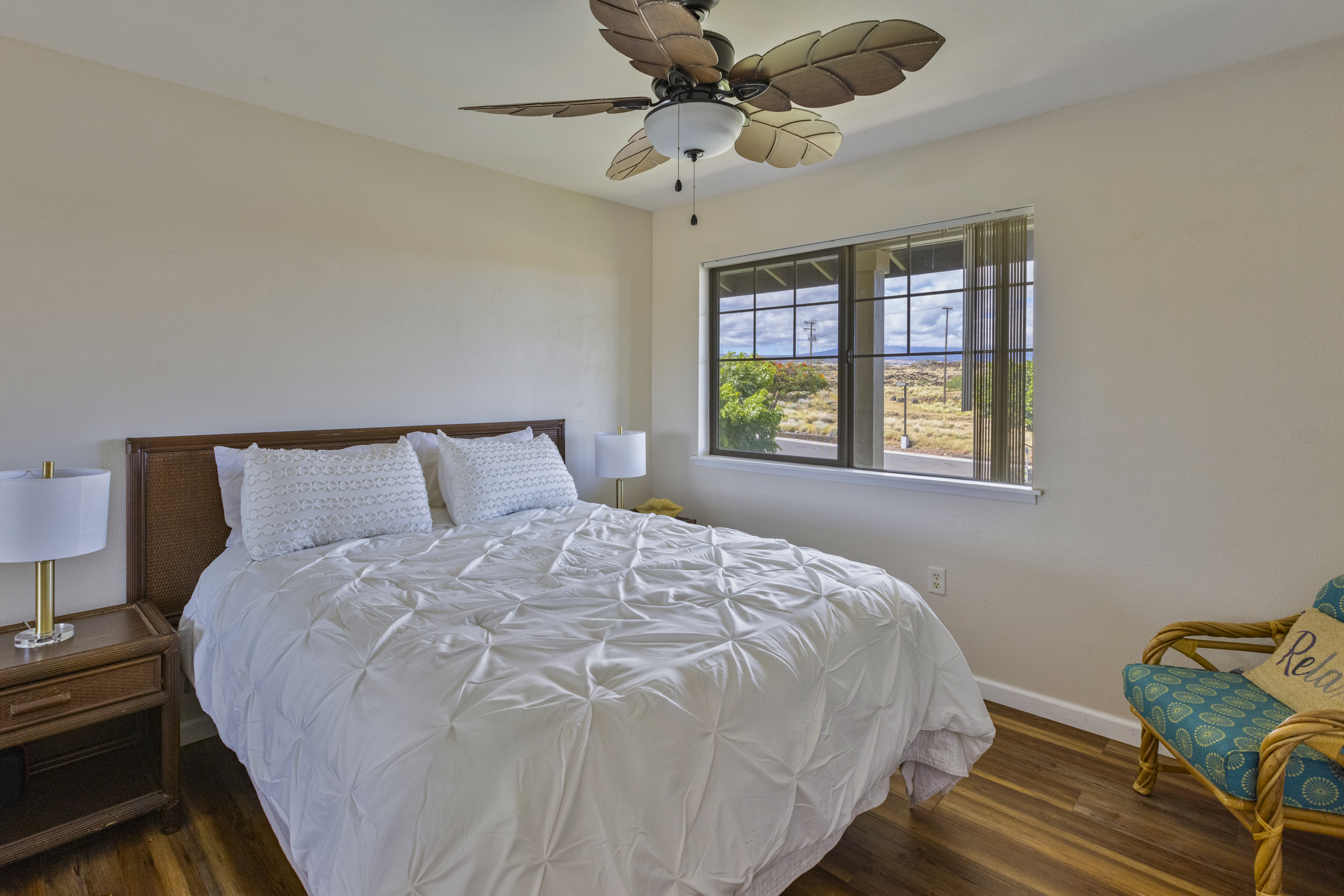 Experience the ultimate in island living with this upgraded top-floor corner one-bedroom, one-bath unit at Makana Kai at Wehilani, Phase I. This stunning condo has a bright and breezy living room with several windows that provide plenty of natural light. Come home, relax and enjoy the views. Its prime location in Waikoloa Village offers the convenience of proximity to shopping, restaurants, schools, the community pool, and the Village Golf Course. Additionally, its close proximity to world-class beaches and resorts on the Kohala Coast makes it an ideal choice for those seeking both comfort and luxury. The unit includes two deeded parking stalls and is part of a vibrant community with numerous amenities. Don't miss this rare opportunity to own in a prime location.