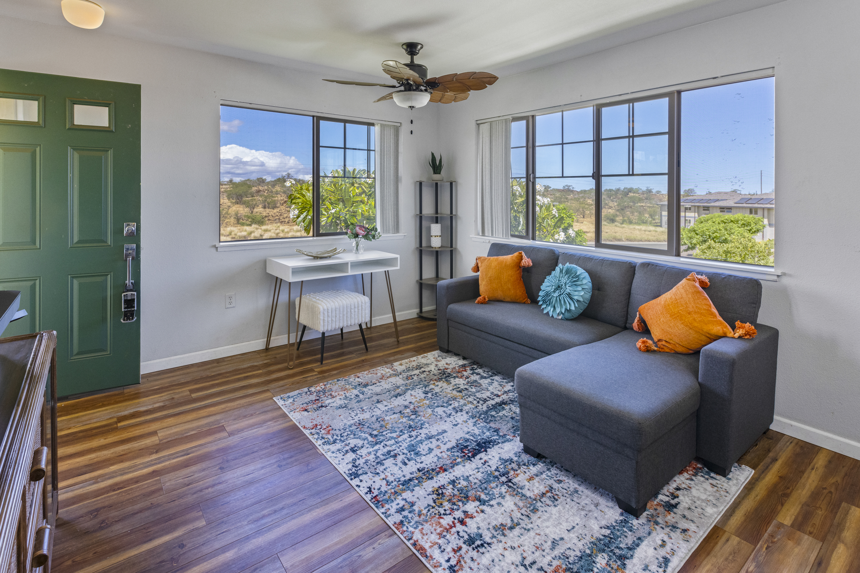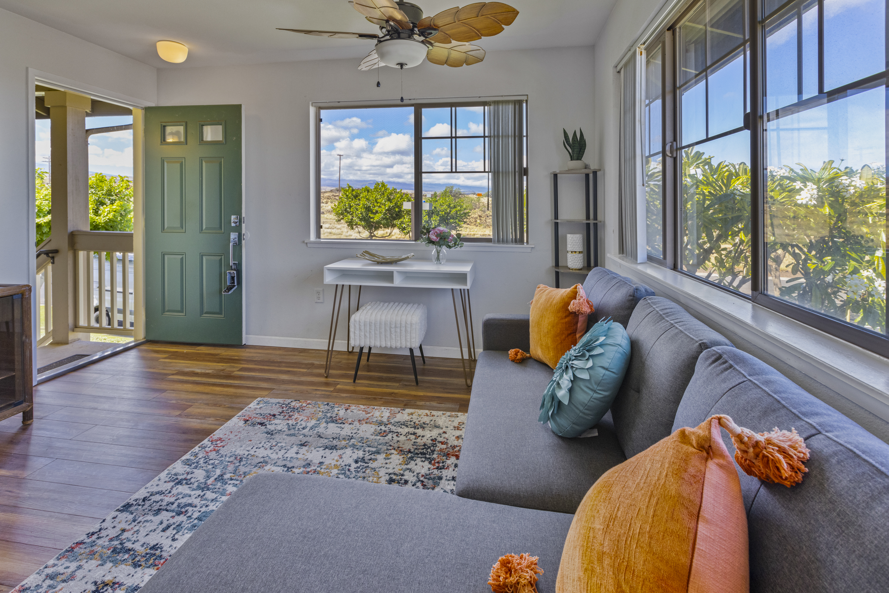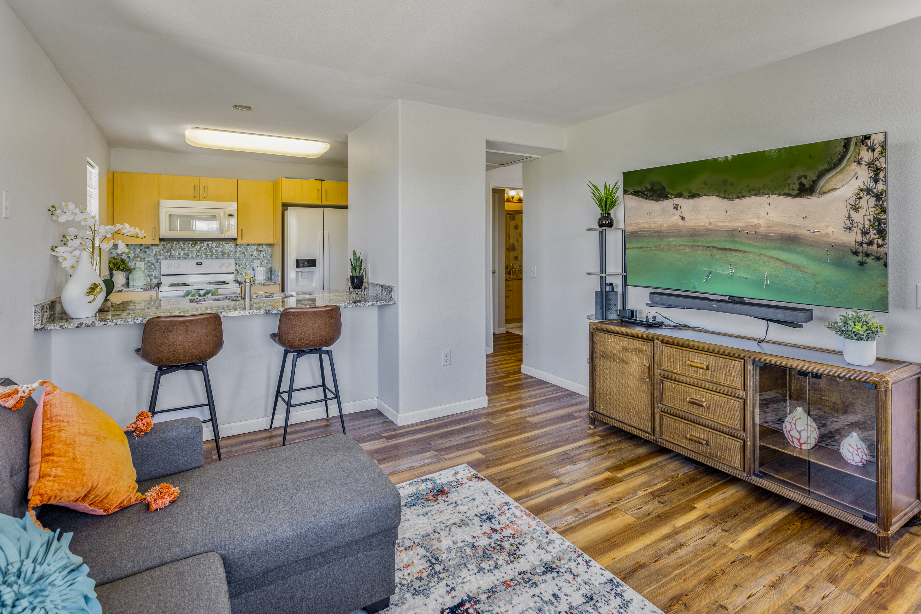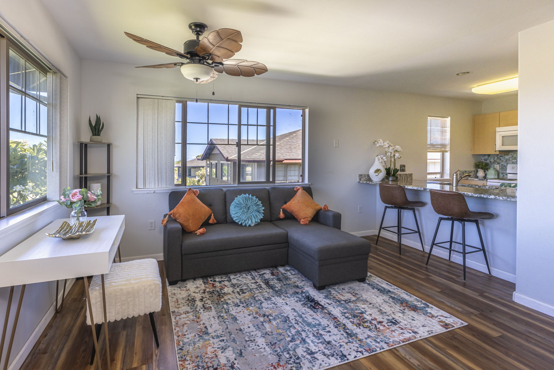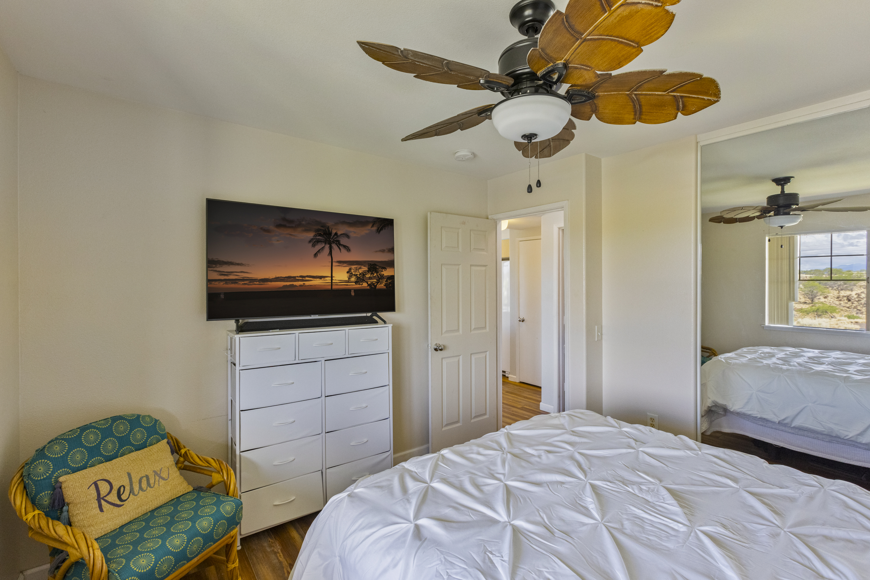 Experience the ultimate in island living with this upgraded top-floor corner one-bedroom, one-bath unit at Makana Kai at Wehilani, Phase I. This stunning condo has a bright and breezy living room with several windows that provide plenty of natural light. Come home, relax and enjoy the views. Its prime location in Waikoloa Village offers the convenience of proximity to shopping, restaurants, schools, the community pool, and the Village Golf Course. Additionally, its close proximity to world-class beaches and resorts on the Kohala Coast makes it an ideal choice for those seeking both comfort and luxury. The unit includes two deeded parking stalls and is part of a vibrant community with numerous amenities. Don't miss this rare opportunity to own in a prime location.