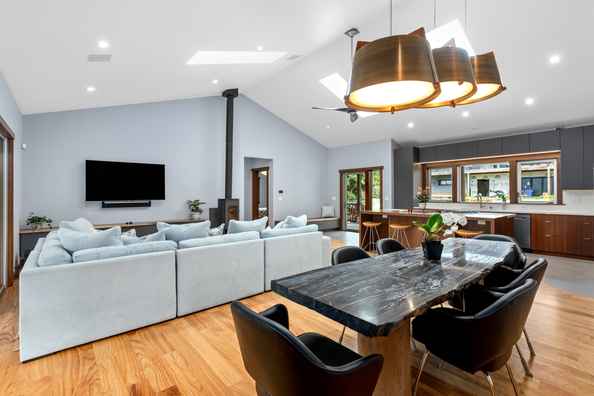 Some of the design features include engineered silver oak flooring which can be refinished, quartzite counters, solid sapele doors and trim, toon mahogany slabs, high end aluminum doors and windows, brizo plumbing fixtures and western red cedar used for the exterior trim and decks. Enjoy the comfort of split ac units, providing ac, heat and dehumidifying, plus a high quality wood burning stove in the living room.